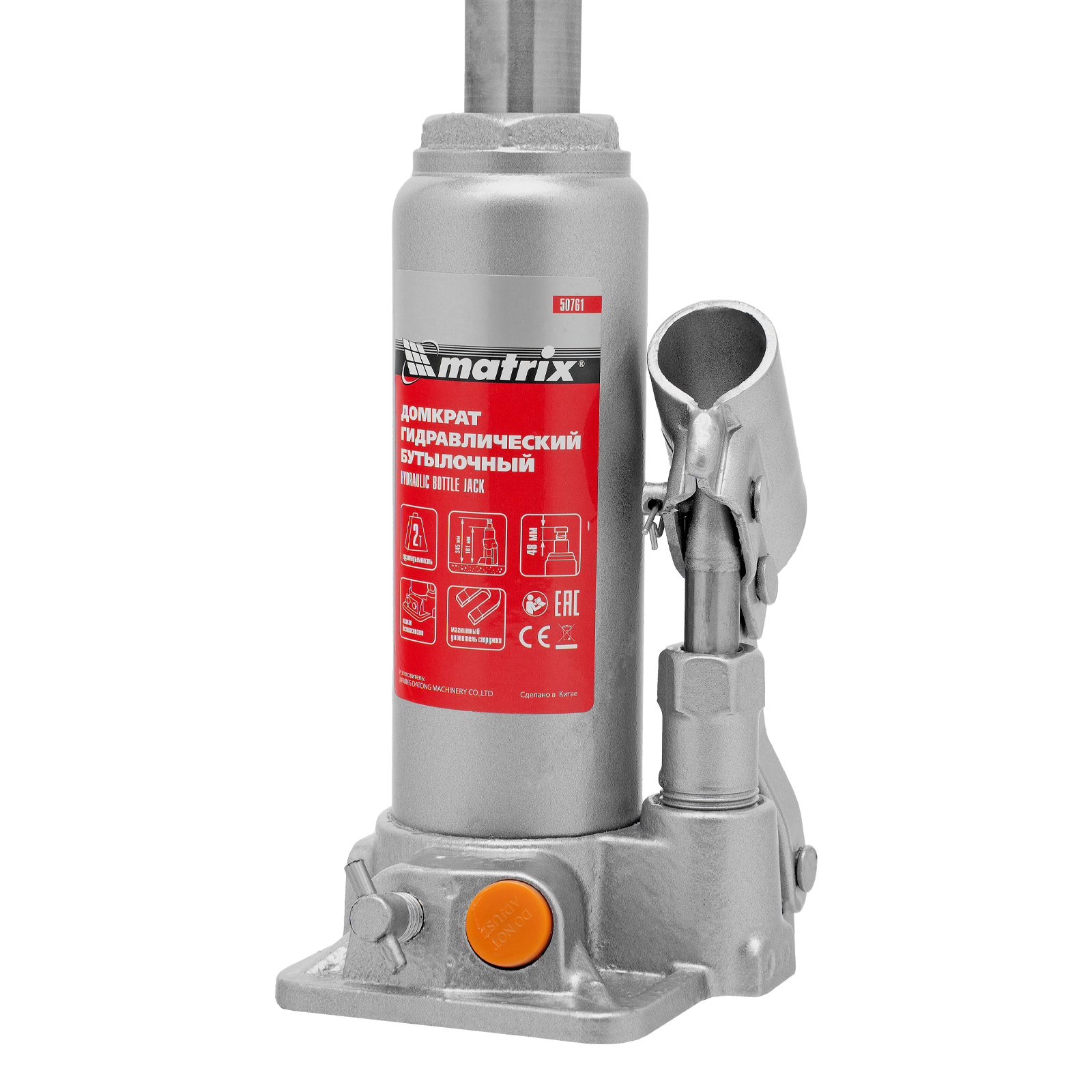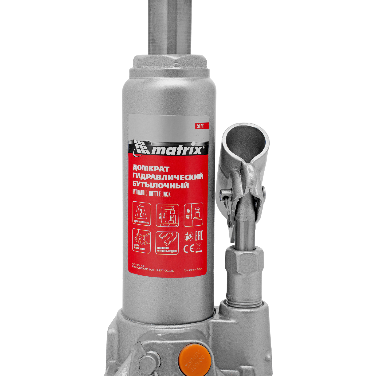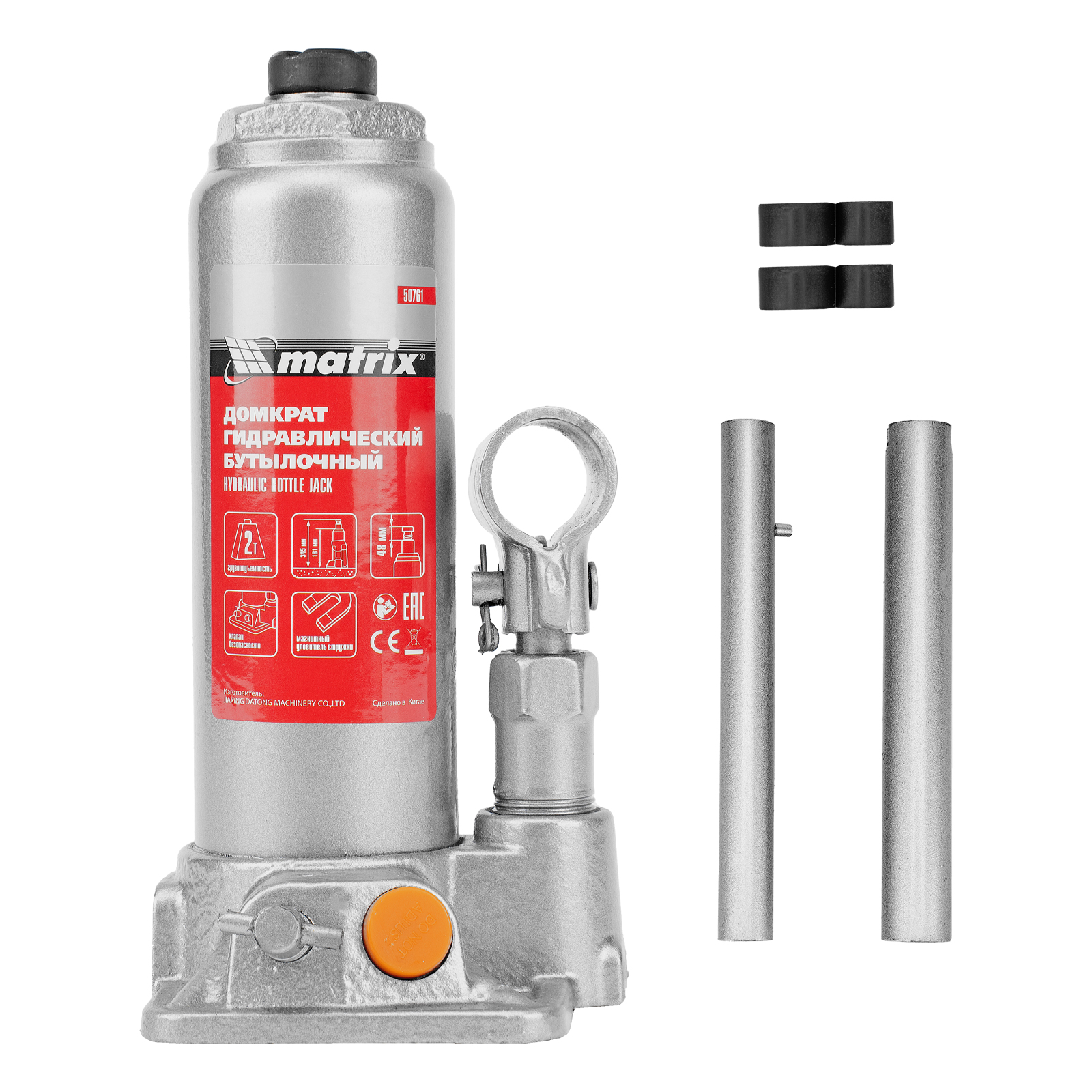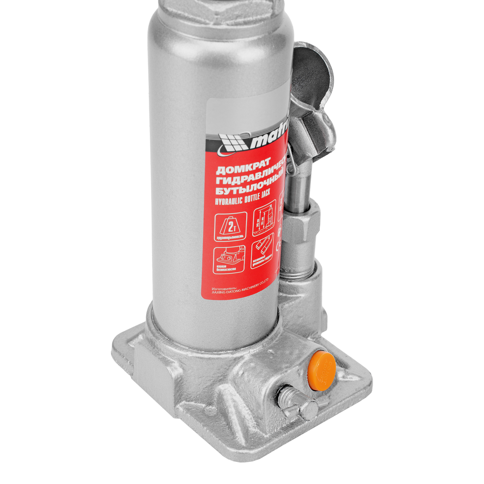 - Защита от перегрузки — домкрат оснащен клапаном безопасности, который не допускает поднятия груза массой более 2000 кг.