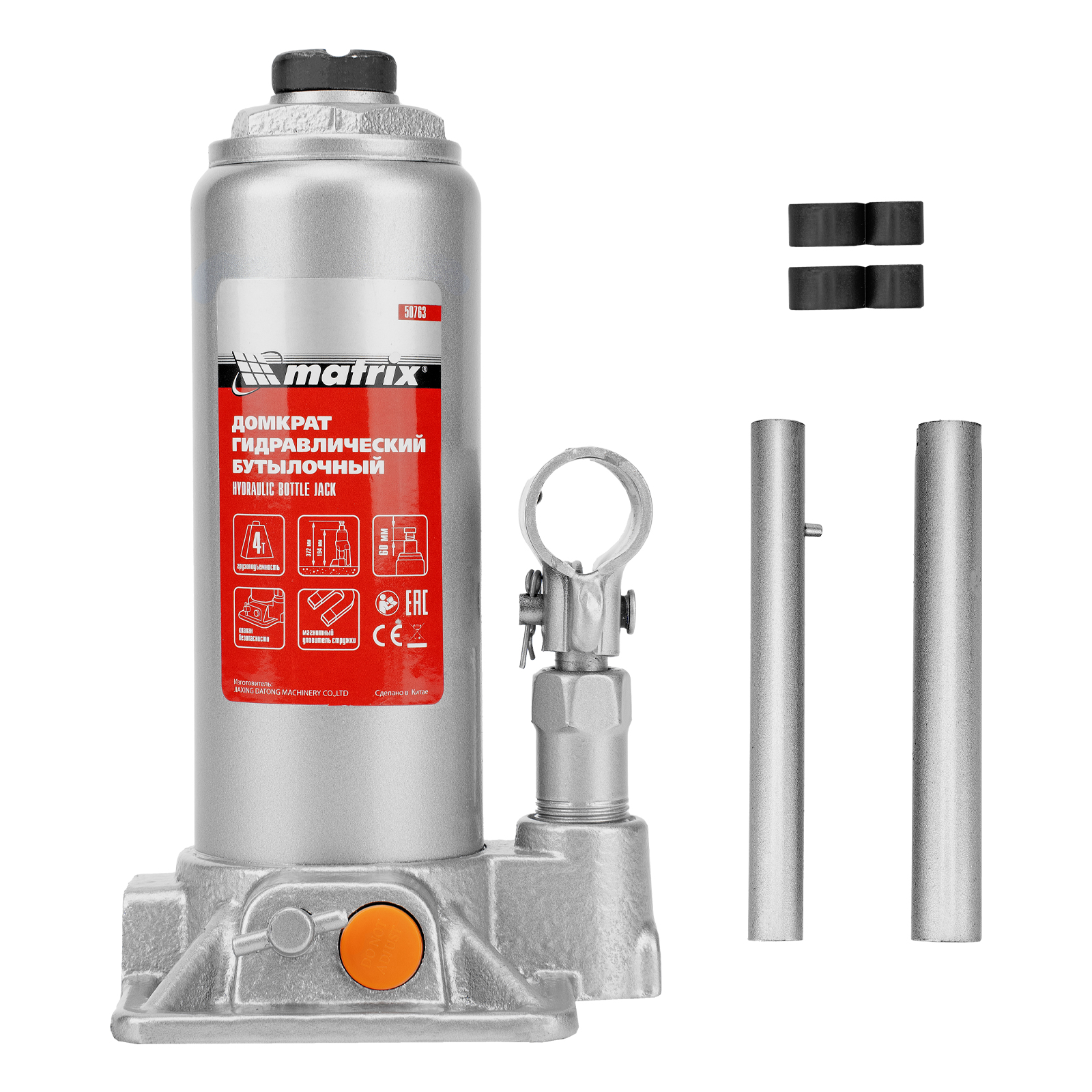 Гидравлический бутылочный домкрат Matrix 50763 предназначен для быстрого поднятия грузов массой до 4 т на высоту 194-372 мм. Будет полезен автолюбителям и мастерам СТО в качестве полупрофессионального инструмента. Встроенный магнитный уловитель металлической стружки защищает резиновые уплотнители от повреждений.