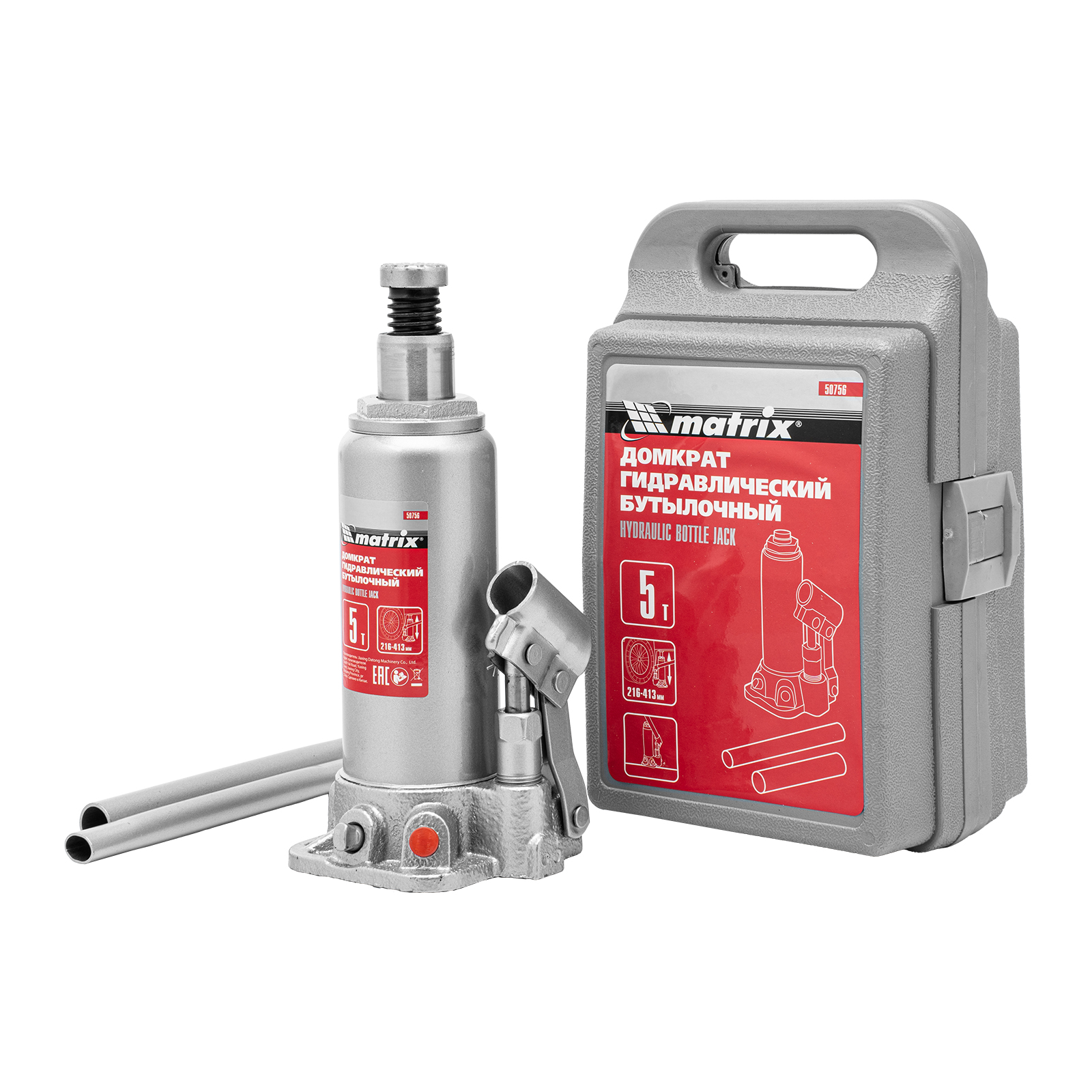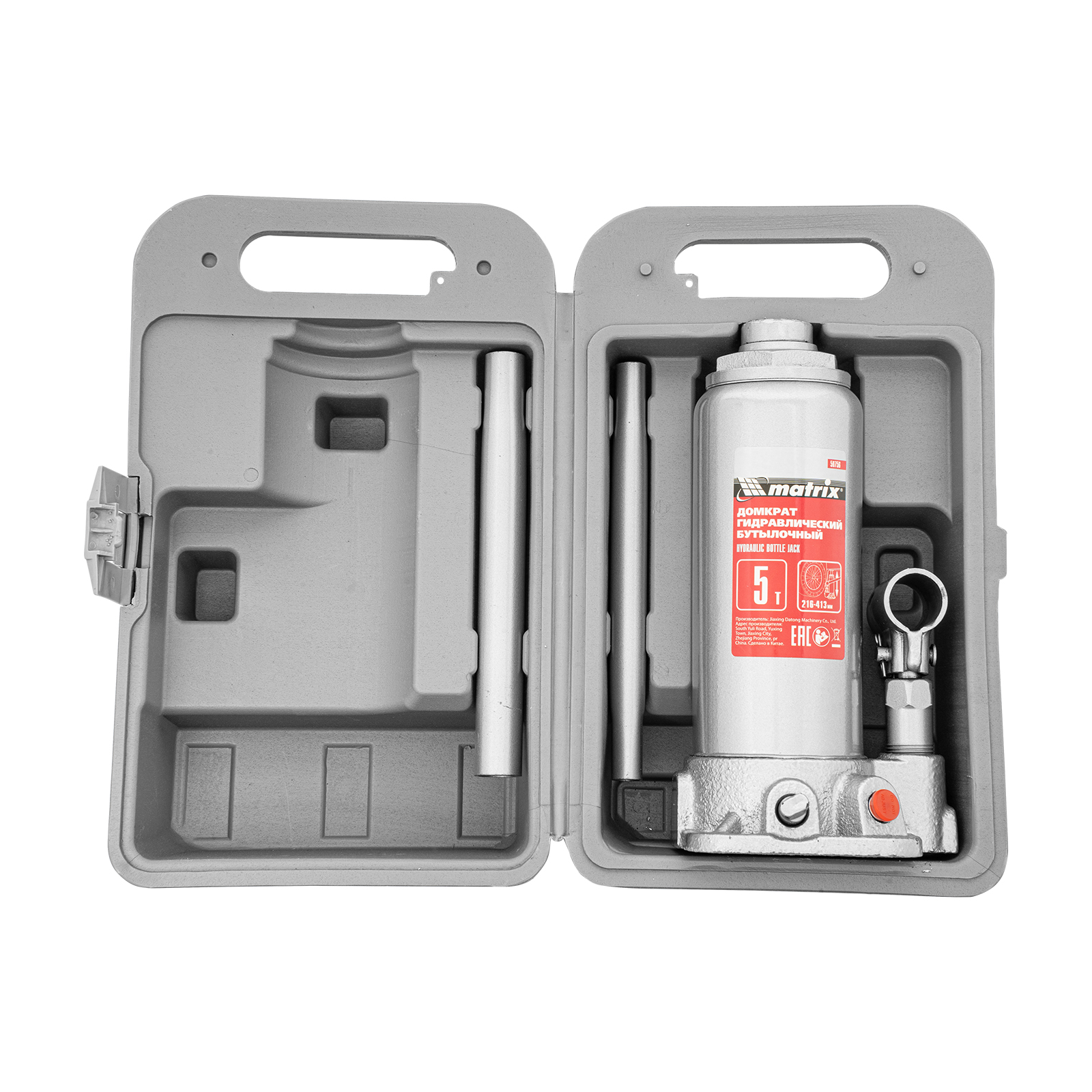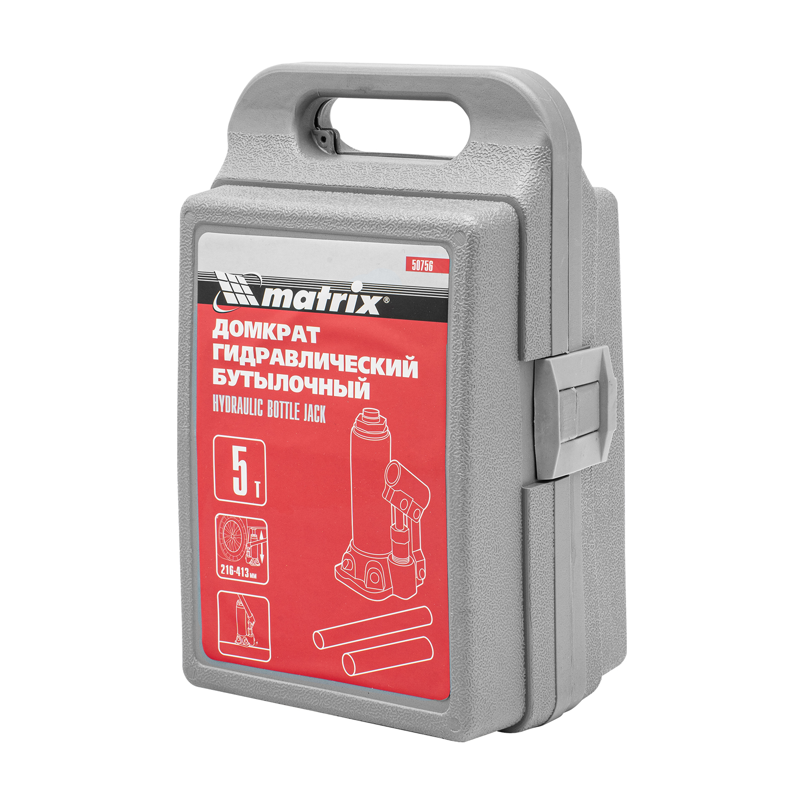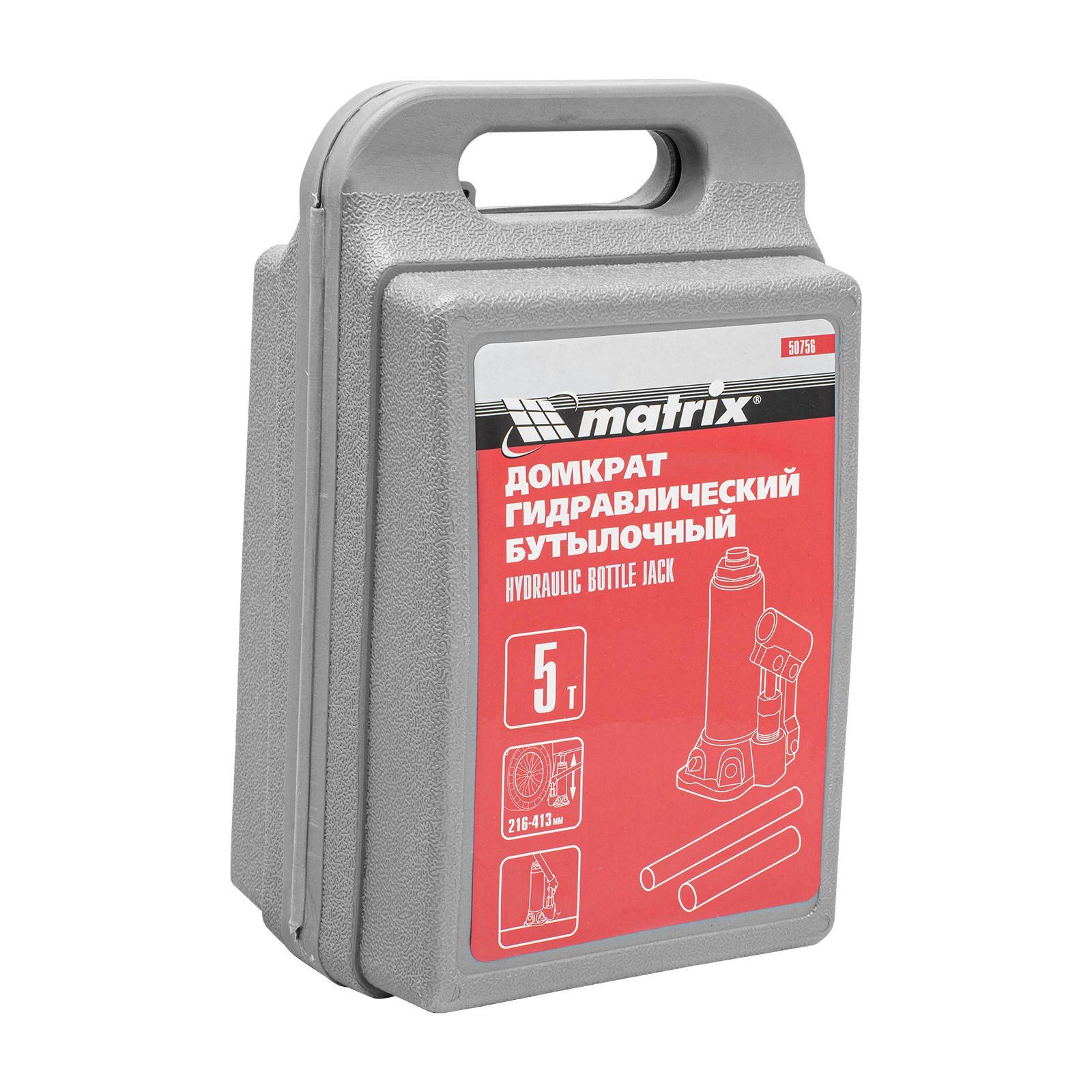 Домкрат гидравлический бутылочный Matrix 50756 предназначен для подъема грузов массой до 5 т на высоту от 216 до 413 мм. Оптимален для машин с большим клиренсом, поставляется в пластиковом кейсе. Будет полезен автолюбителям при проведении технического обслуживания и ремонте авто в дороге или в гараже. Также домкрат подходит для полупрофессионального применения на станциях ТО.