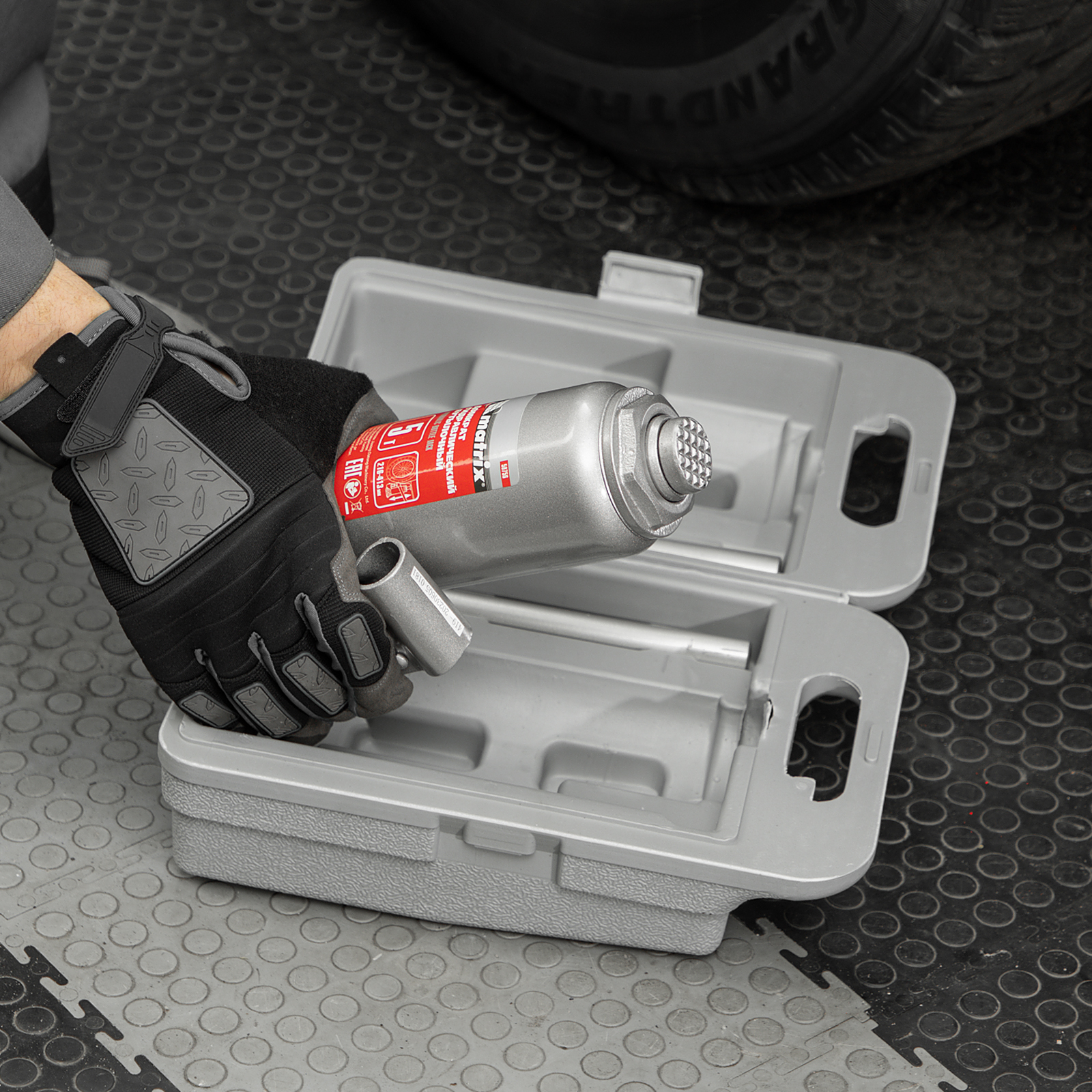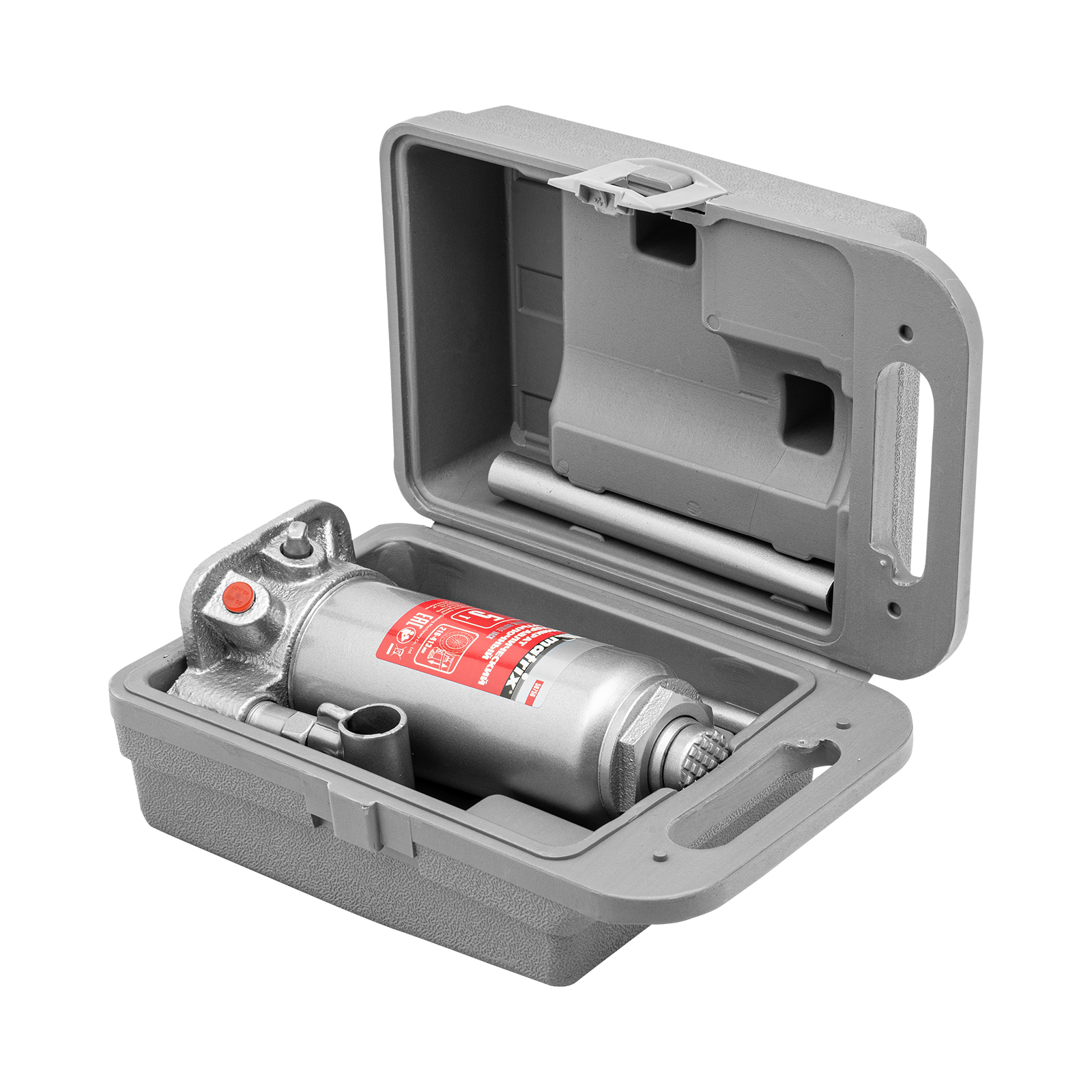 - Удобное хранение и транспортировка — домкрат поставляется в прочном пластиковом кейсе с ручкой.