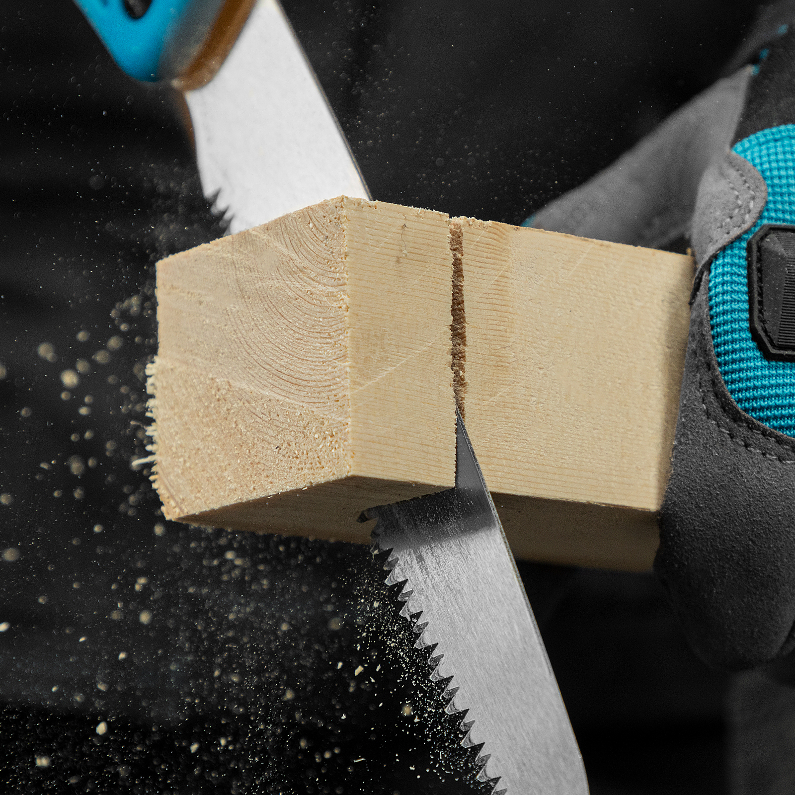 - Высокий рабочий ресурс — зубья имеют твердость 64-66 HRC, а их менее закаленные основания устойчивы к слому при обработке древесины твердых пород.