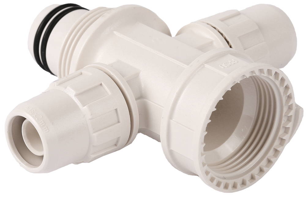 Для подсоединения двух металлопластиковых труб одного диаметра под углом 90˚ к участку трубопровода из металлопластиковых труб другого диаметра