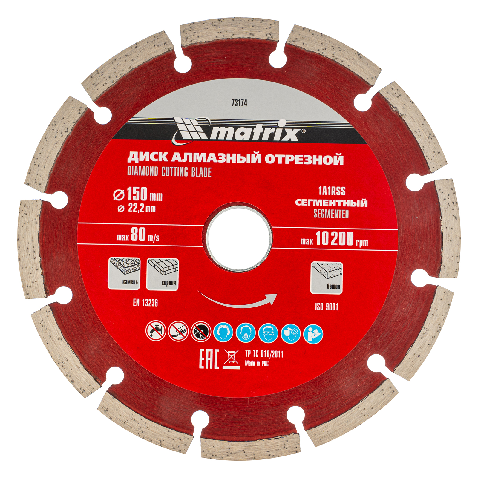 Алмазный отрезной сегментный диск Matrix 73174 диаметром 150 х 22,2 мм предназначен для сухой резки натурального и искусственного камня, кирпича, свежего и твердого бетона. Применяется с углошлифовальными машинами соответствующего типоразмера. Благодаря высокой скорости реза диск позволяет выполнять работы большого объема. Он пригодится на небольших строительных площадках и будет идеальным помощником при решении бытовых задач.