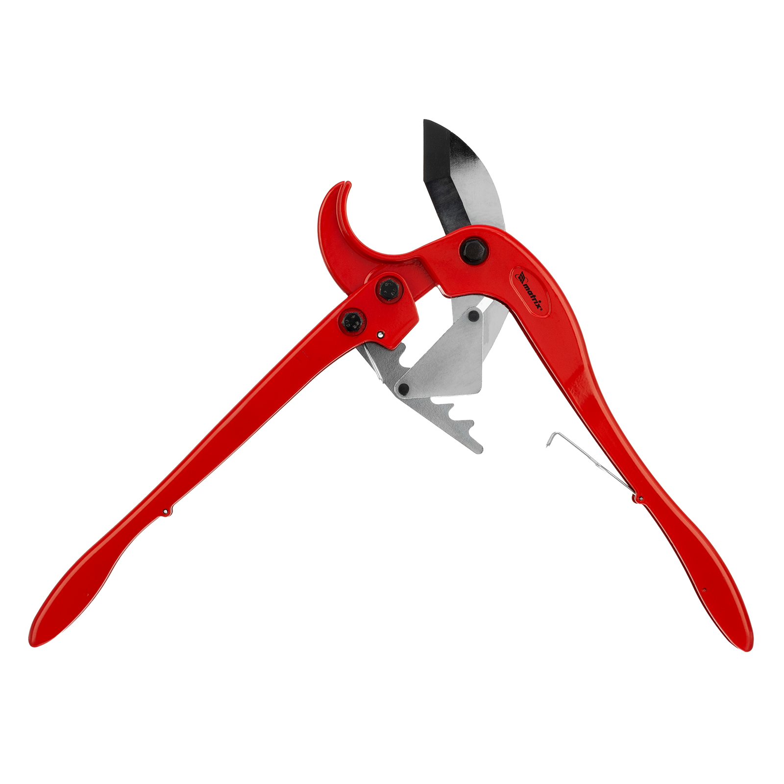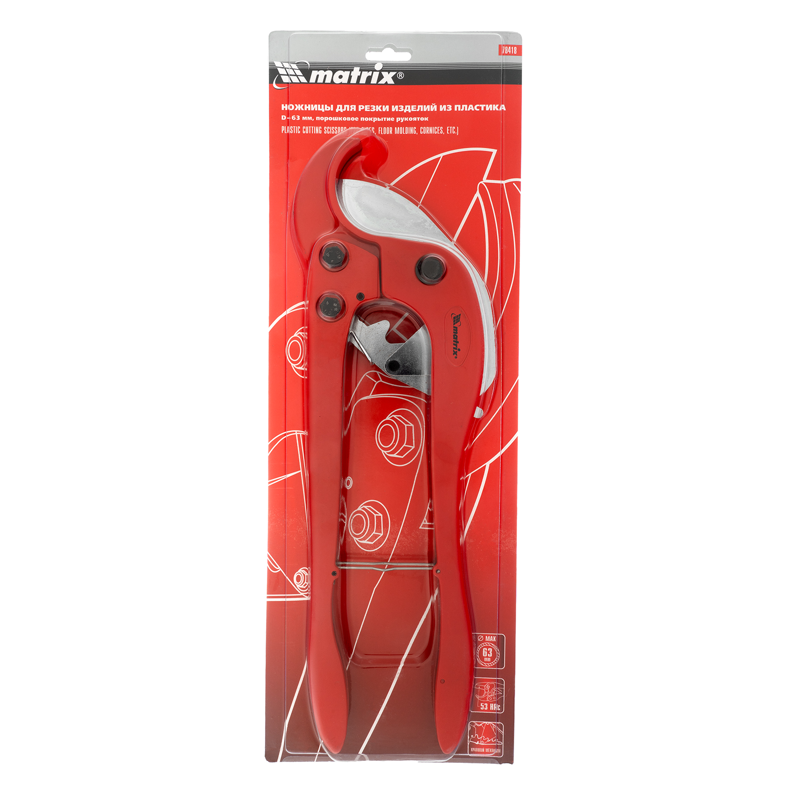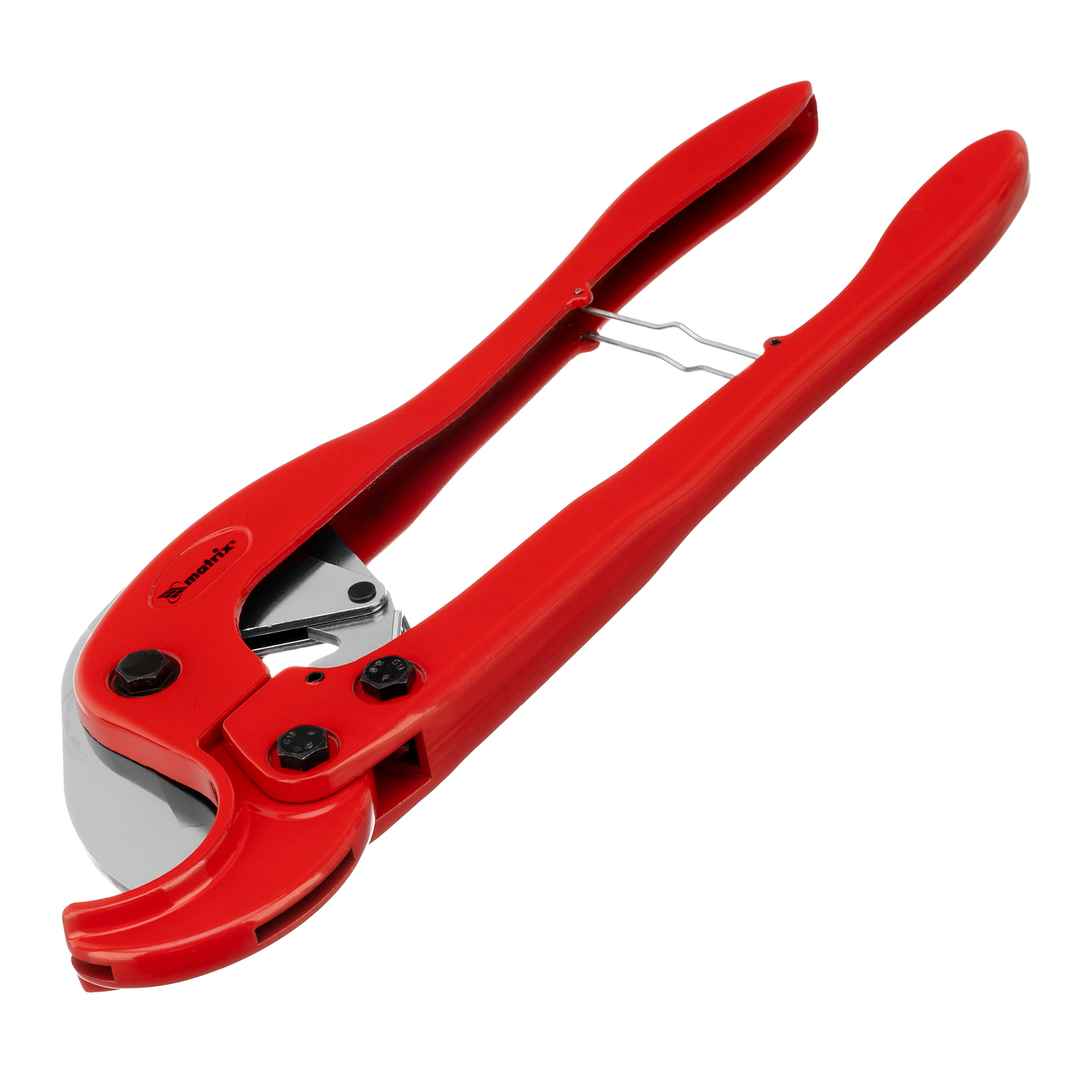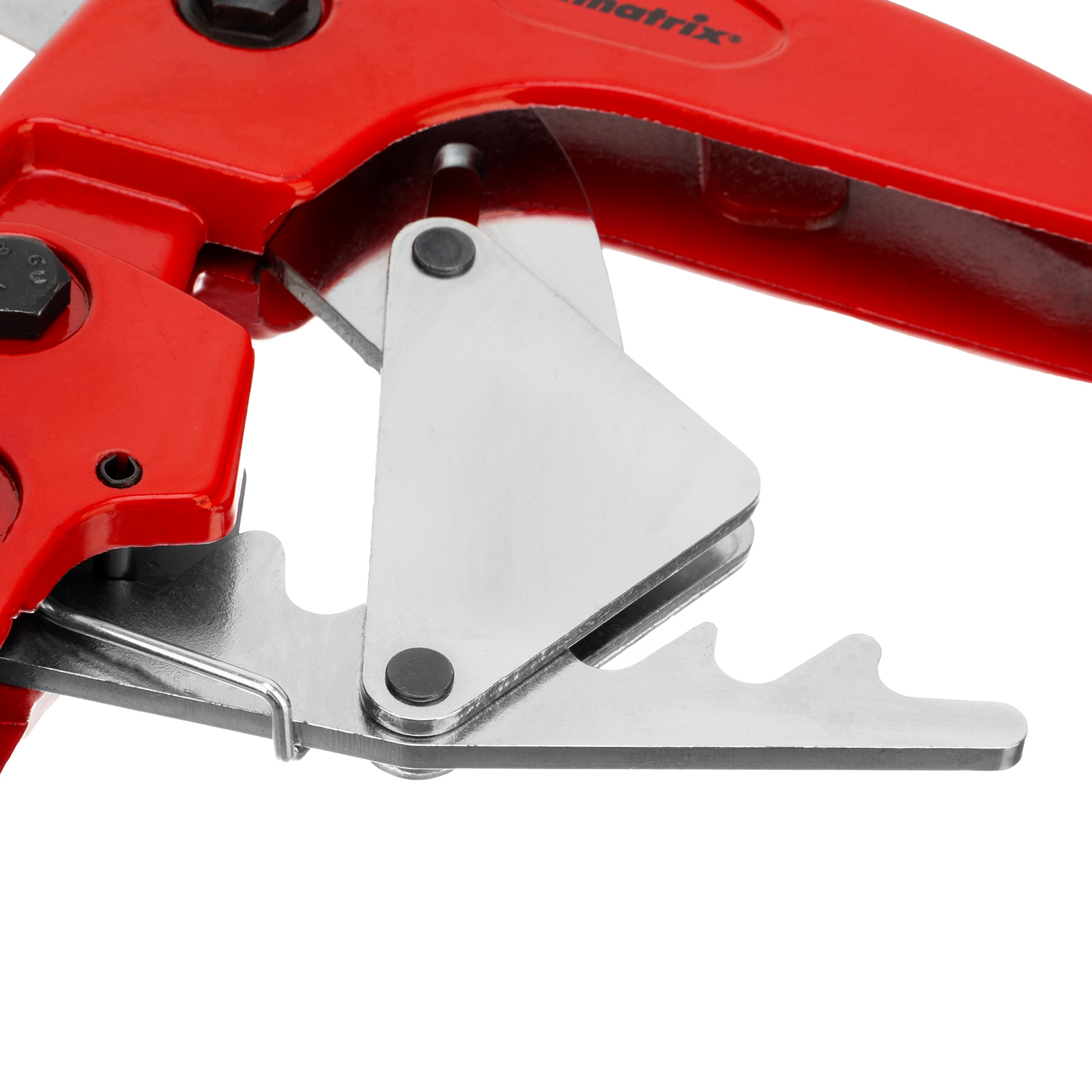 Универсальные ножницы Matrix 78418 с порошковым покрытием рукояток используются для резки изделий из ПВХ диаметром до 63 мм — труб, плинтусов, профилей. Подойдут также для разрезания резиновых шлангов и других заготовок. Ножницы успешно справляются с крупными предметами благодаря удлиненным рукояткам, увеличивающим передаваемое усилие. Инструмент пригодится сантехникам и мастерам-отделочникам.