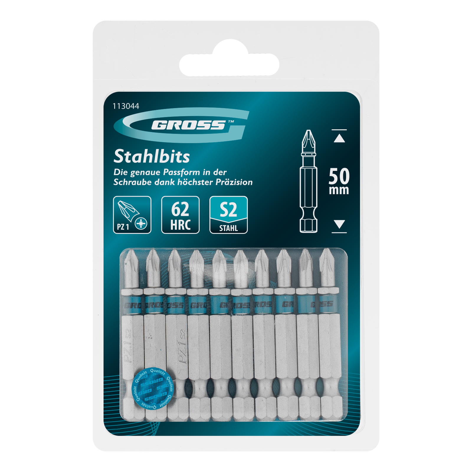 Биты PZ1 х 50 мм Gross 113044 с шестигранным профилем предназначены для шуруповертов и отверток-адаптеров с присоединительным размером 1/4″. Применяются для работы с саморезами, шурупами и другим резьбовым крепежом. Благодаря 4 дополнительным граням шлицы надежно фиксируются в головке крепежа, что обеспечивает высокую точность работ. Насадки длиной 50 мм удобны для работы в ограниченном пространстве и труднодоступных местах.