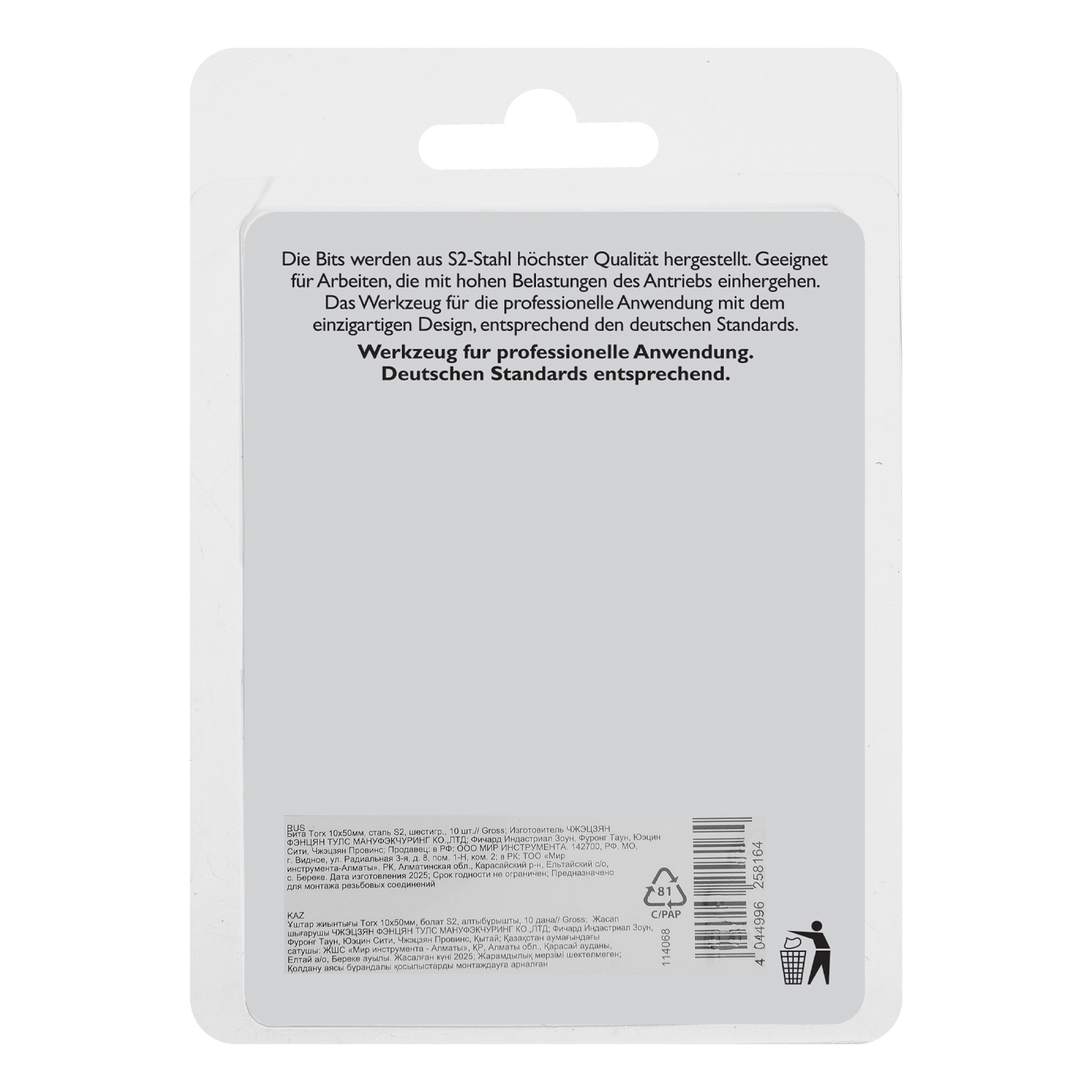 - Удобная упаковка — оснастка поставляется в жестком блистере с европодвесом, 10 штук хватит на целую бригаду.