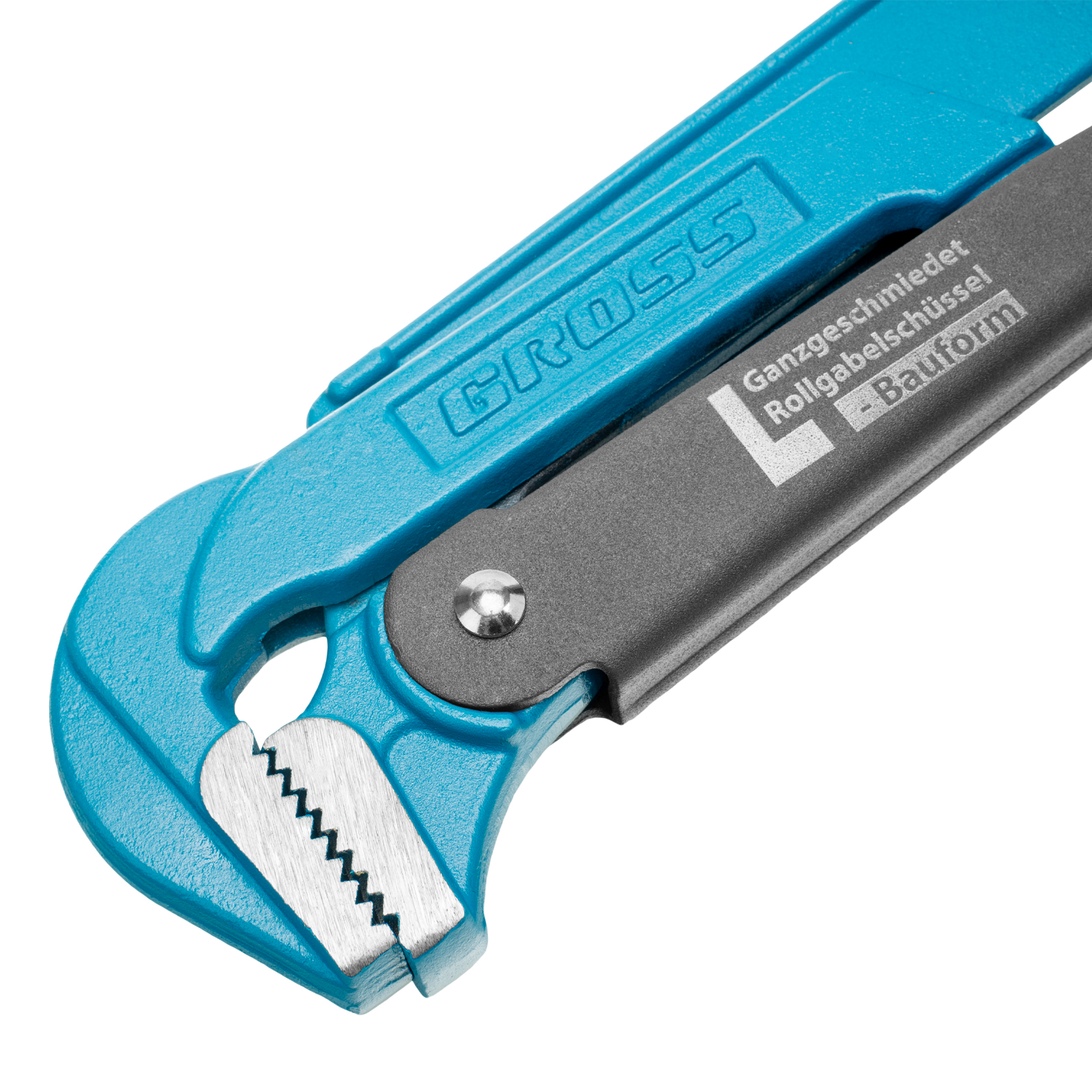 - Самоблокируемый захват труб и деталей — зубья прогрессивной формы наклонены против направления вращения.