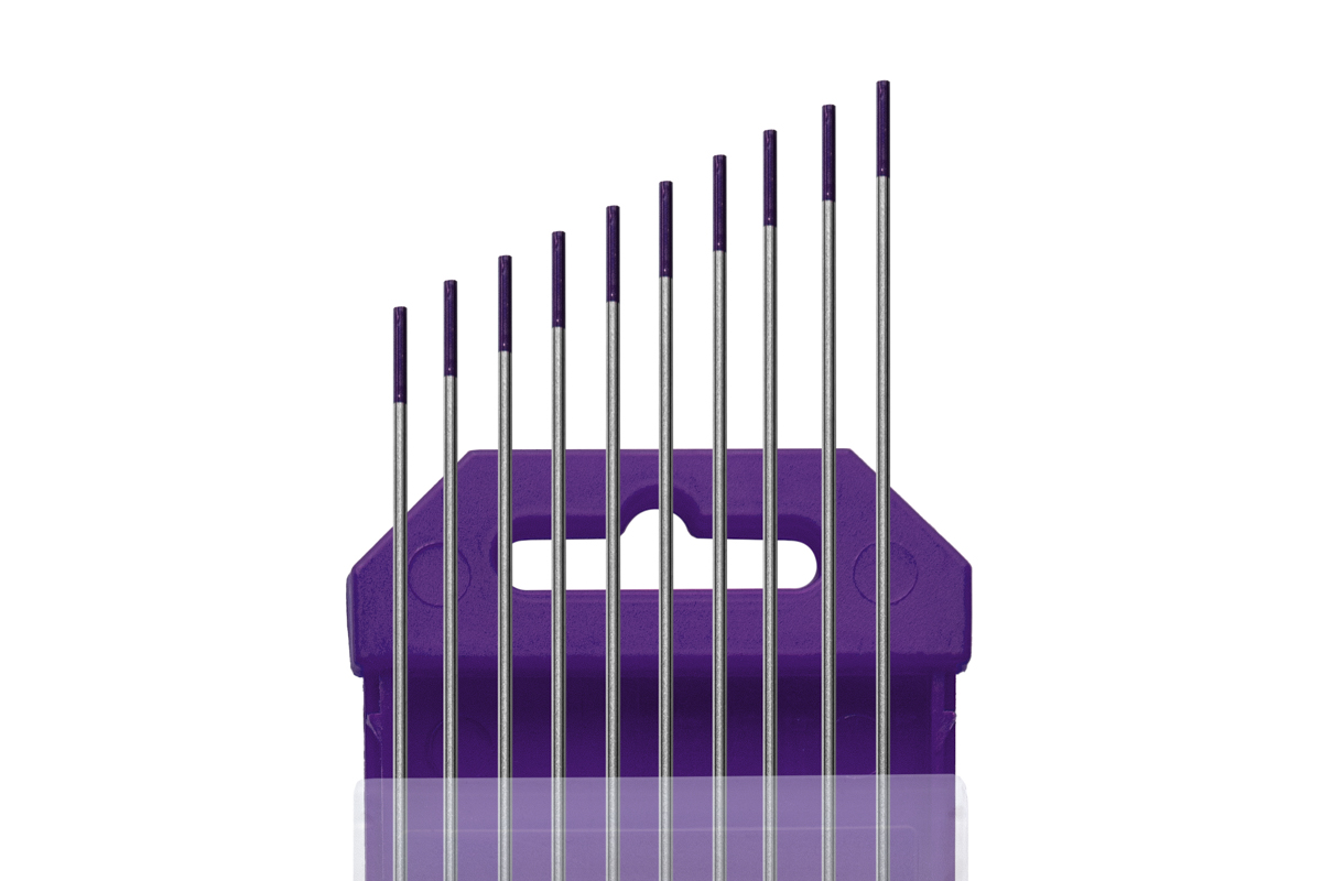 Электроды вольфрамовые WE-3, Ø 1,6 мм, цвет фиолетовый (цена указана за 1 электрод) в качестве легирования содержат оксиды нескольких редкоземельных металлов (лантана, иттрия, циркония), что обеспечивает особые преимущества в сравнении с торированными или лантанированными электродами: