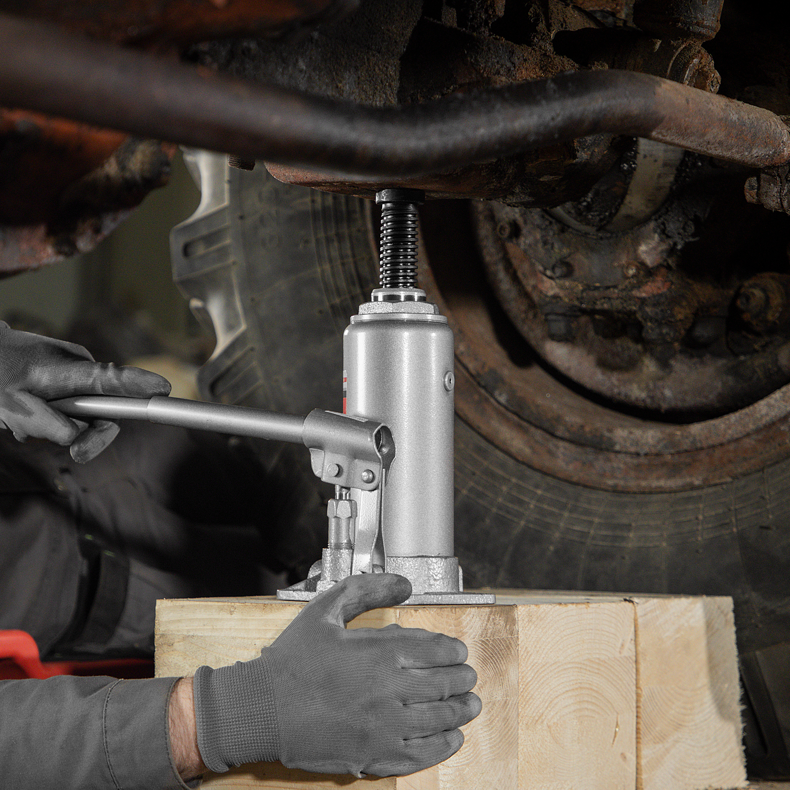 - Удобная транспортировка — домкрат весом 6,25 кг легко помещается в багажник авто.