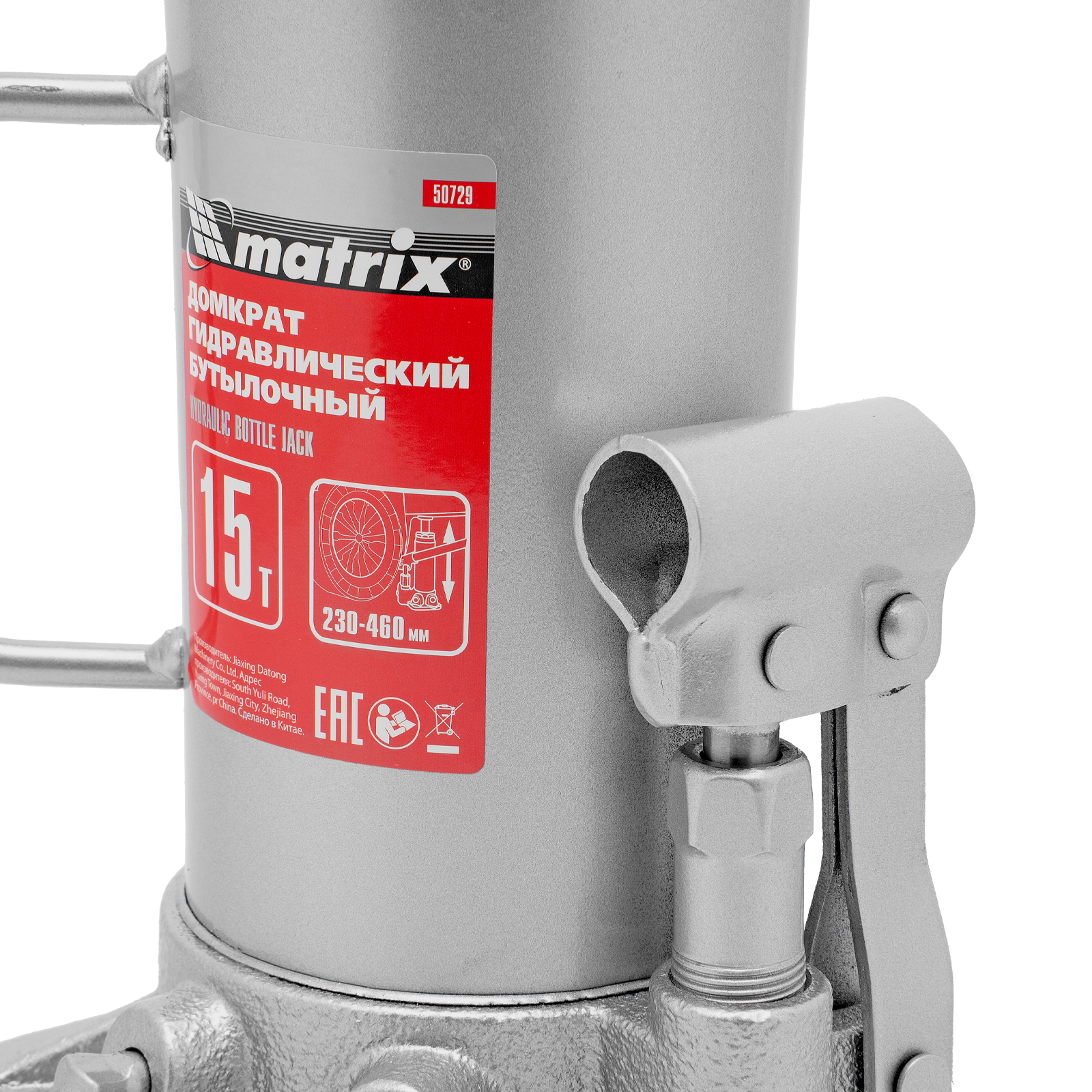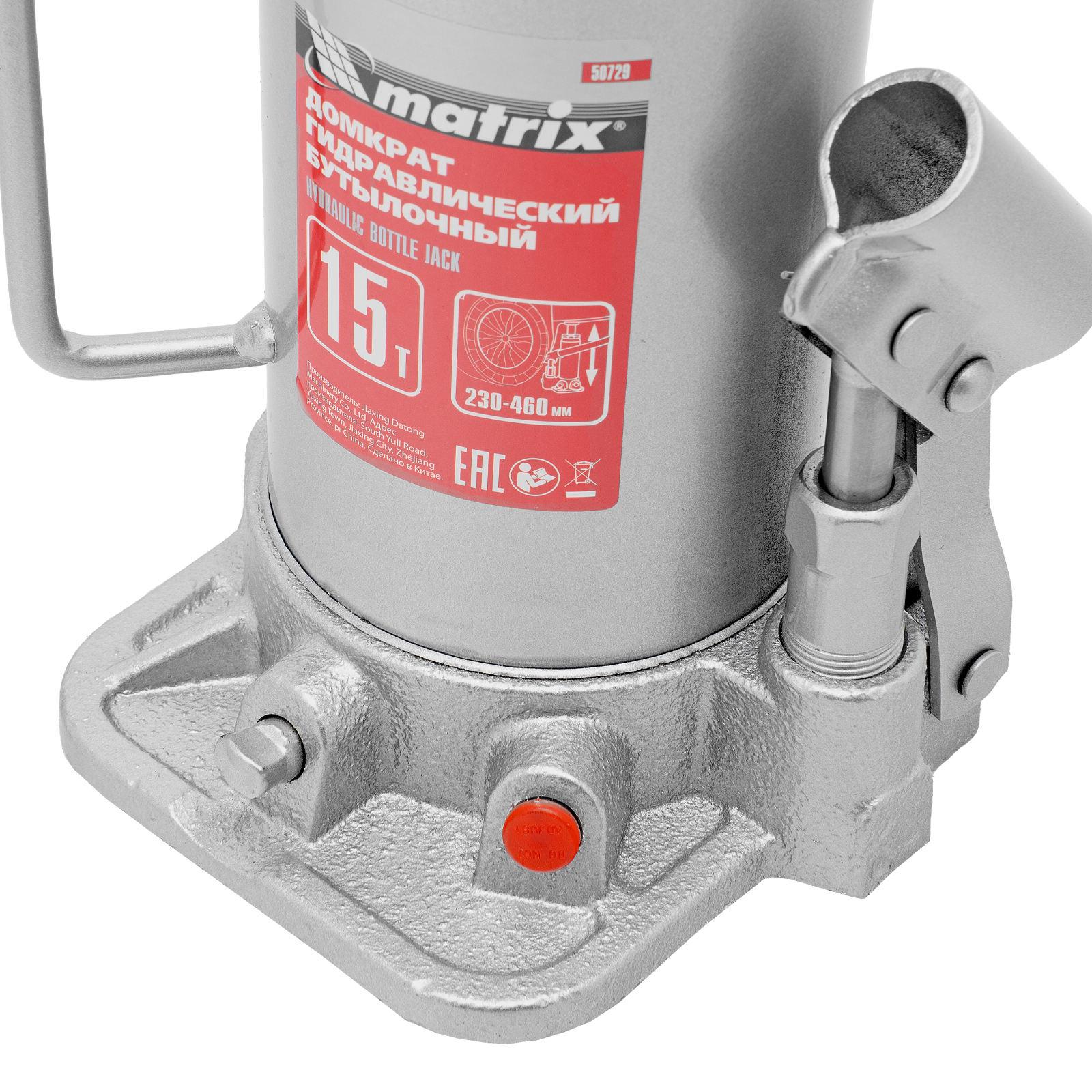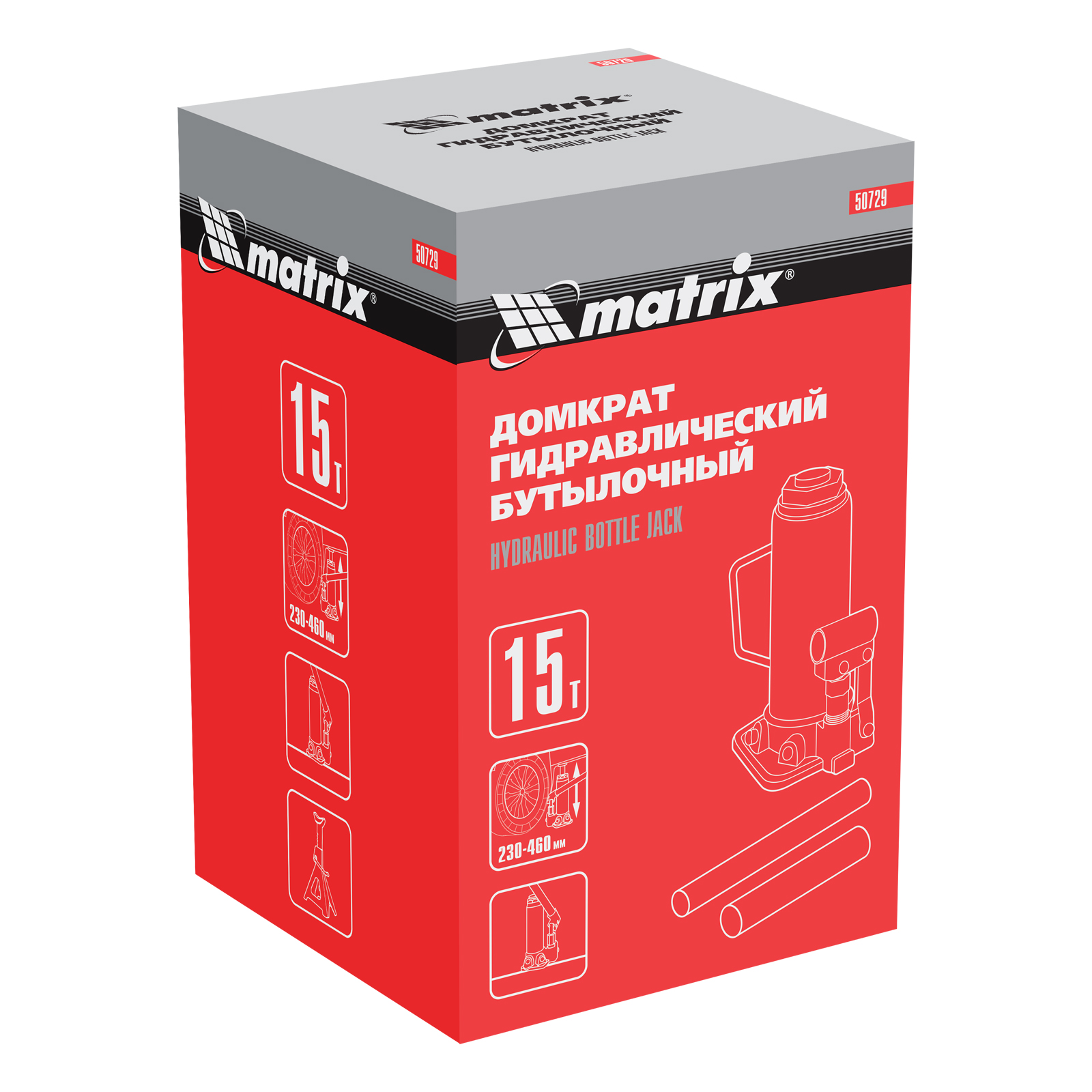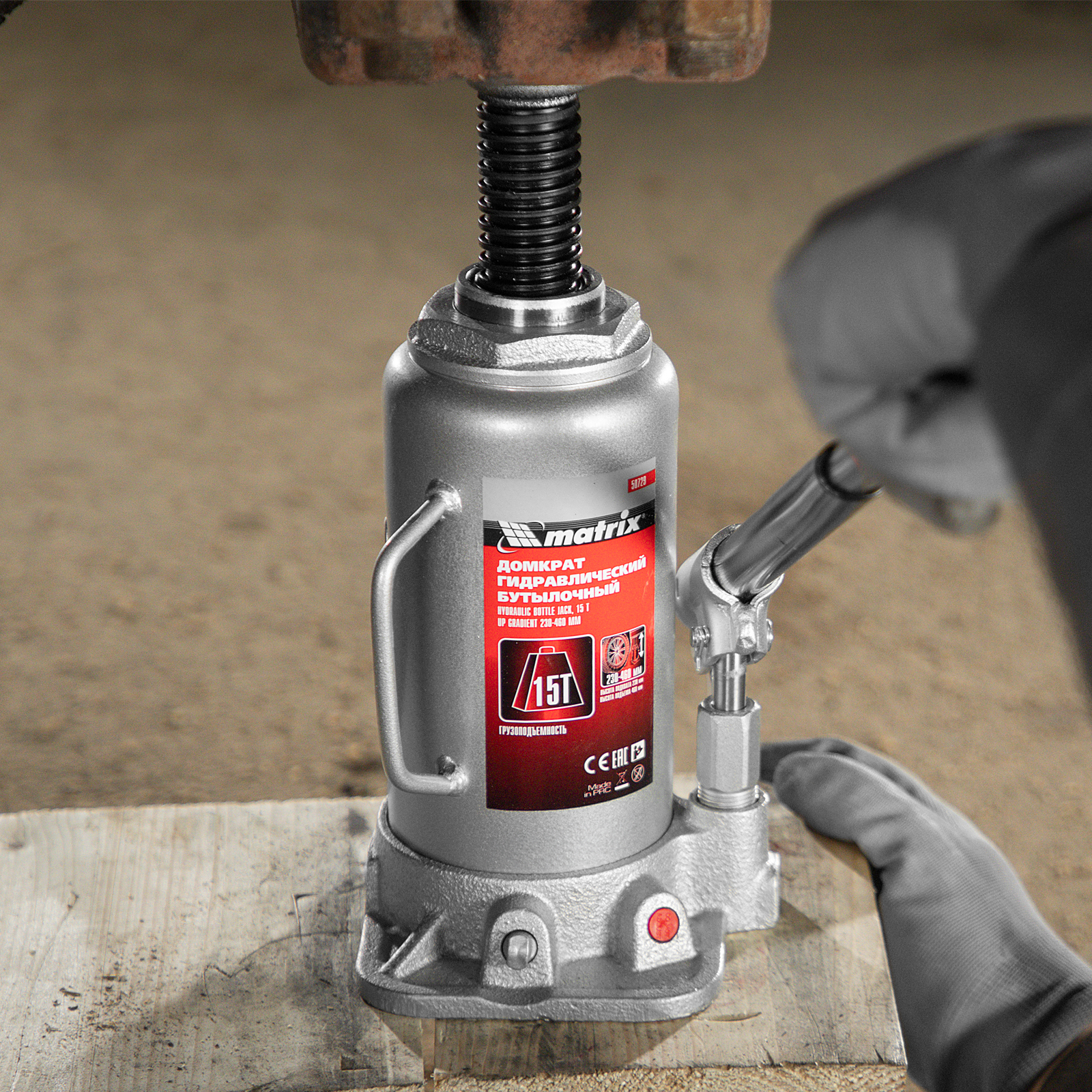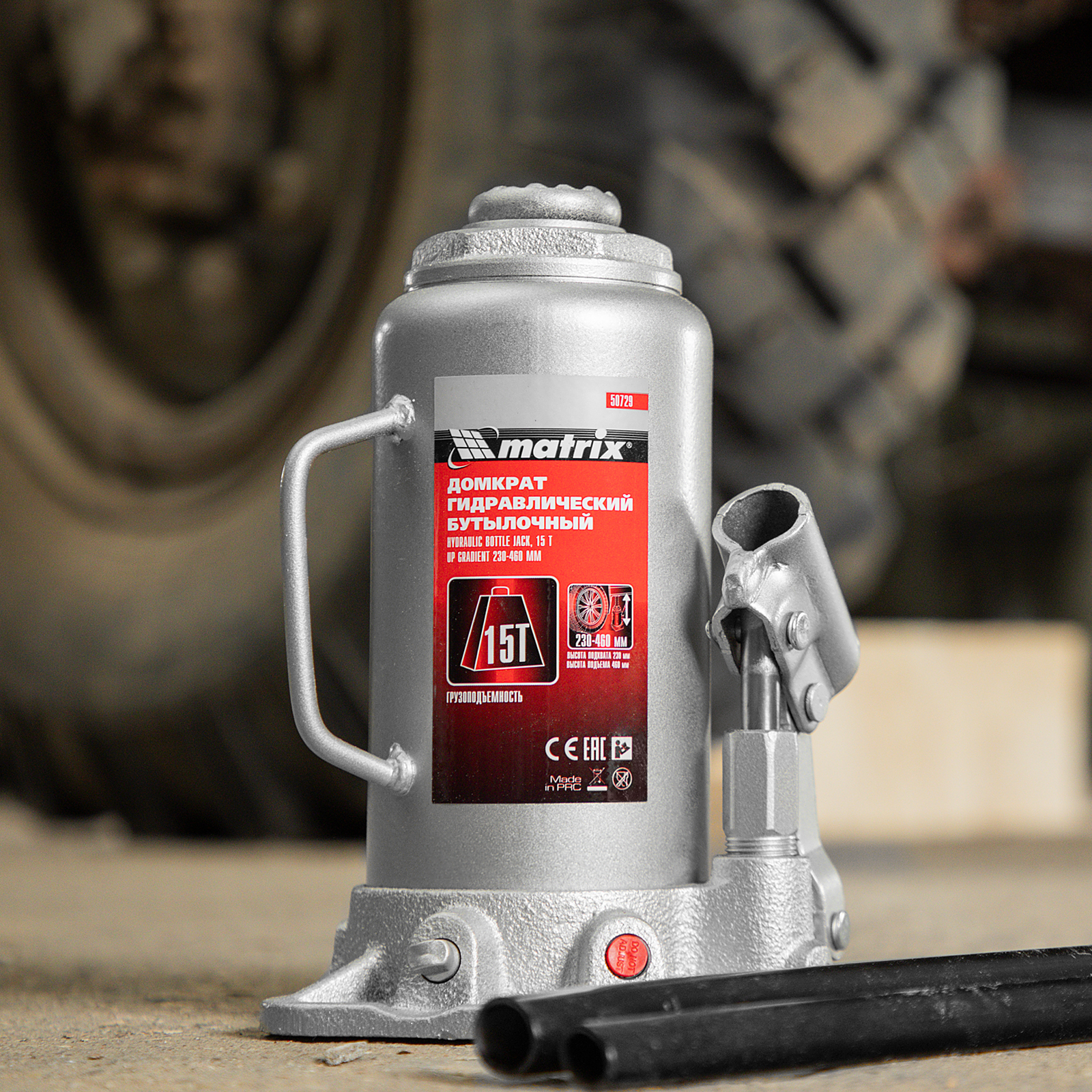 Домкрат гидравлический бутылочный Matrix 50729 используется для поднятия грузов массой до 15 т на высоту 230-460 мм. Подходит для автомобилей с высоким клиренсом. Домкрат будет полезен автолюбителям в гараже и дороге, а также сотрудникам СТО.