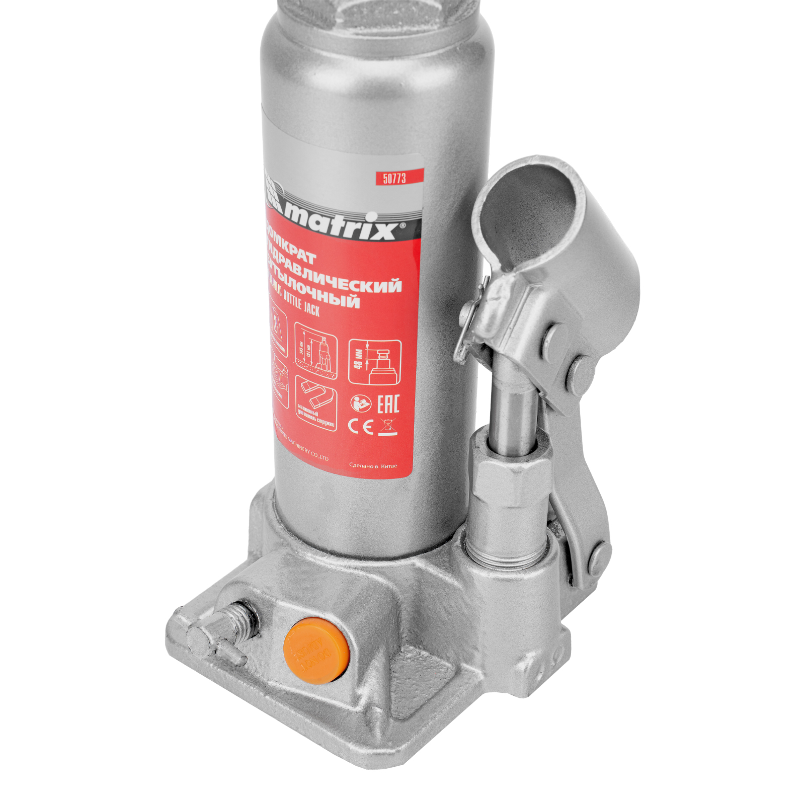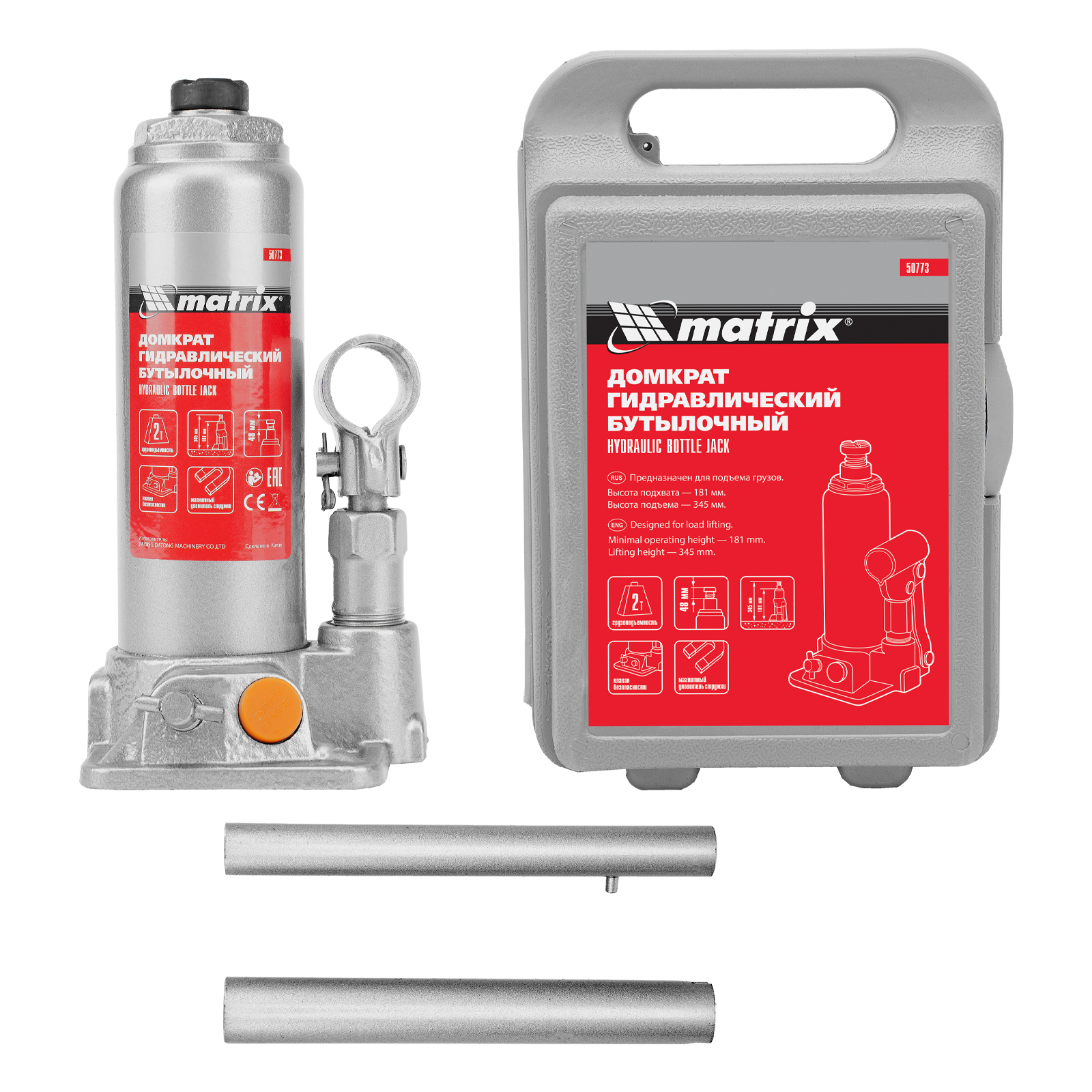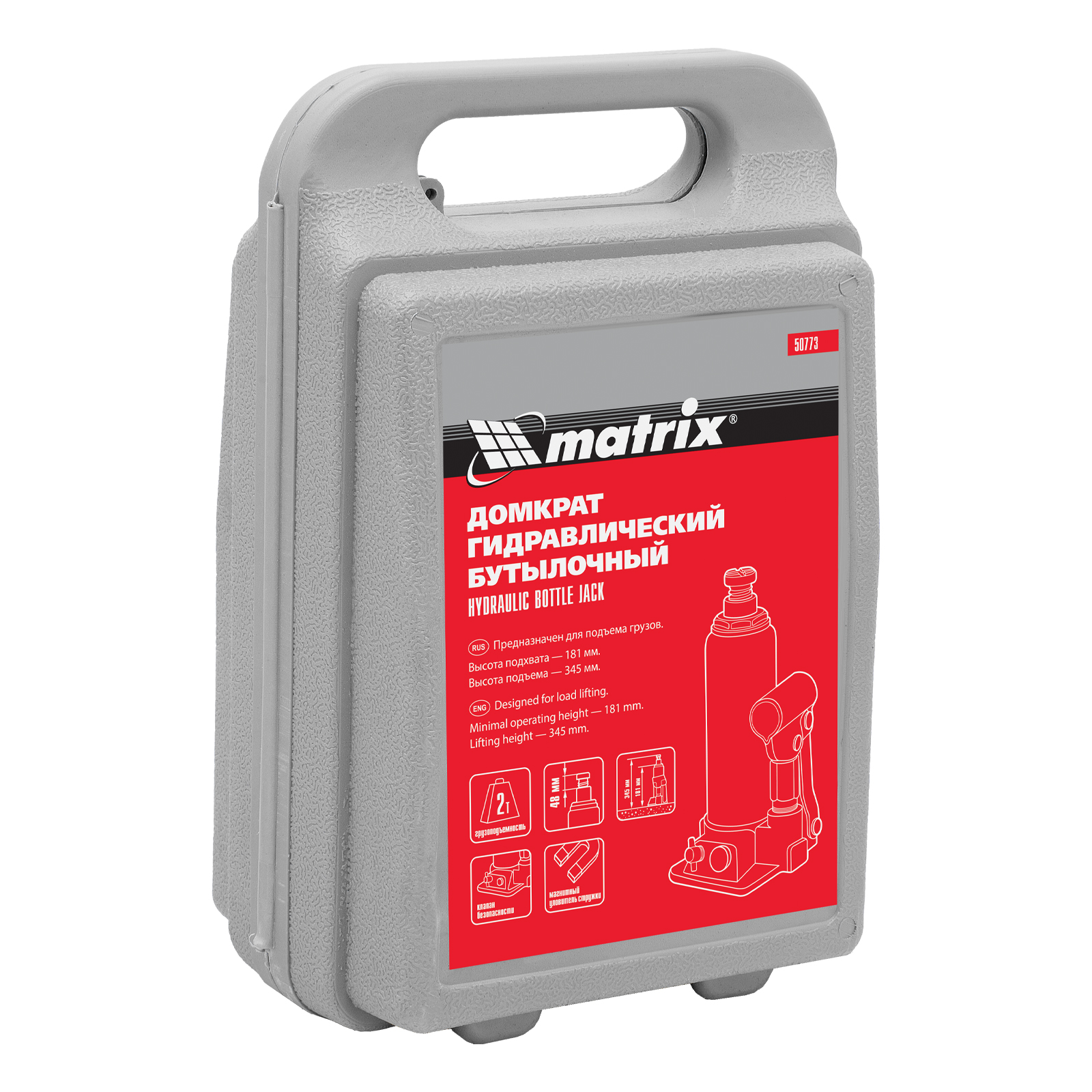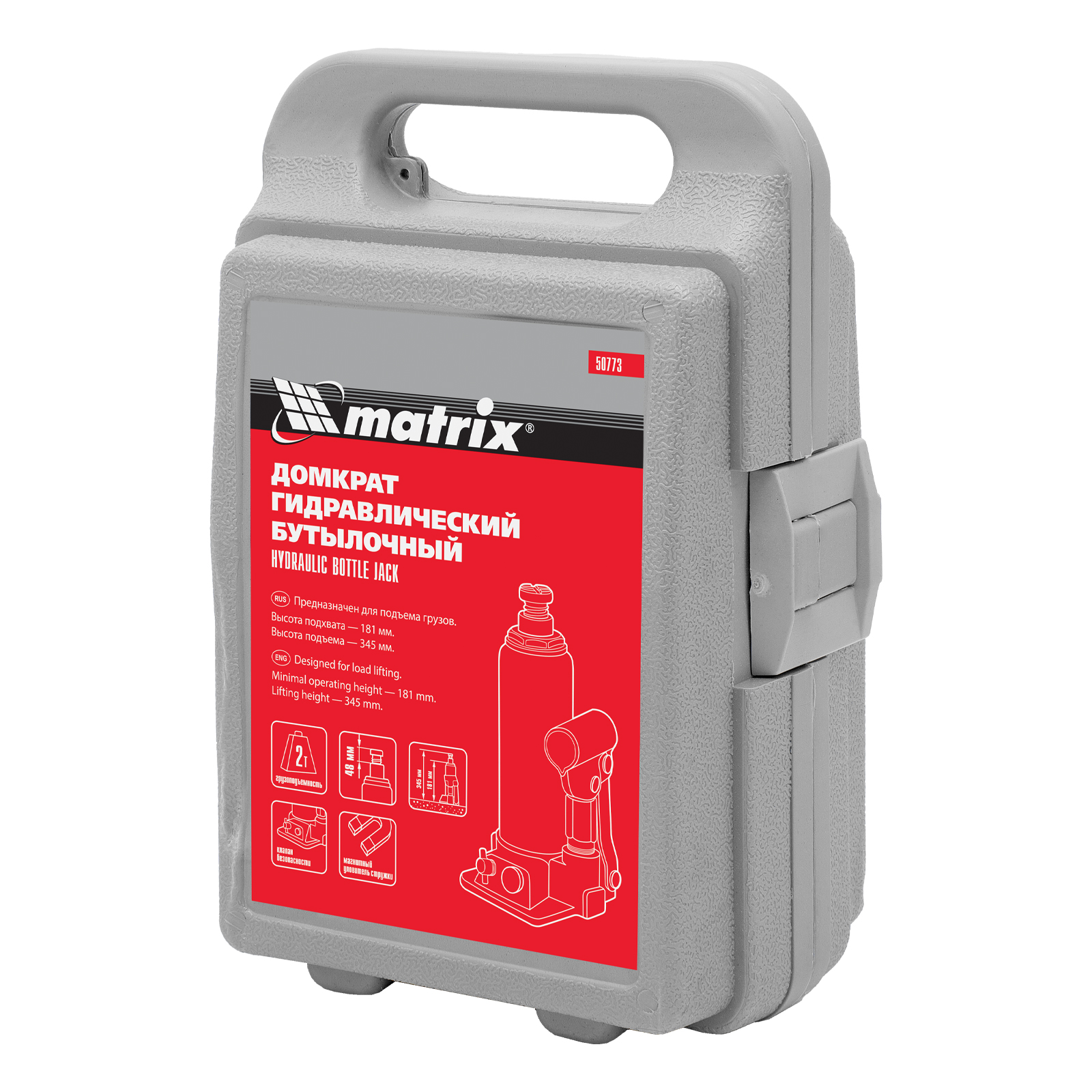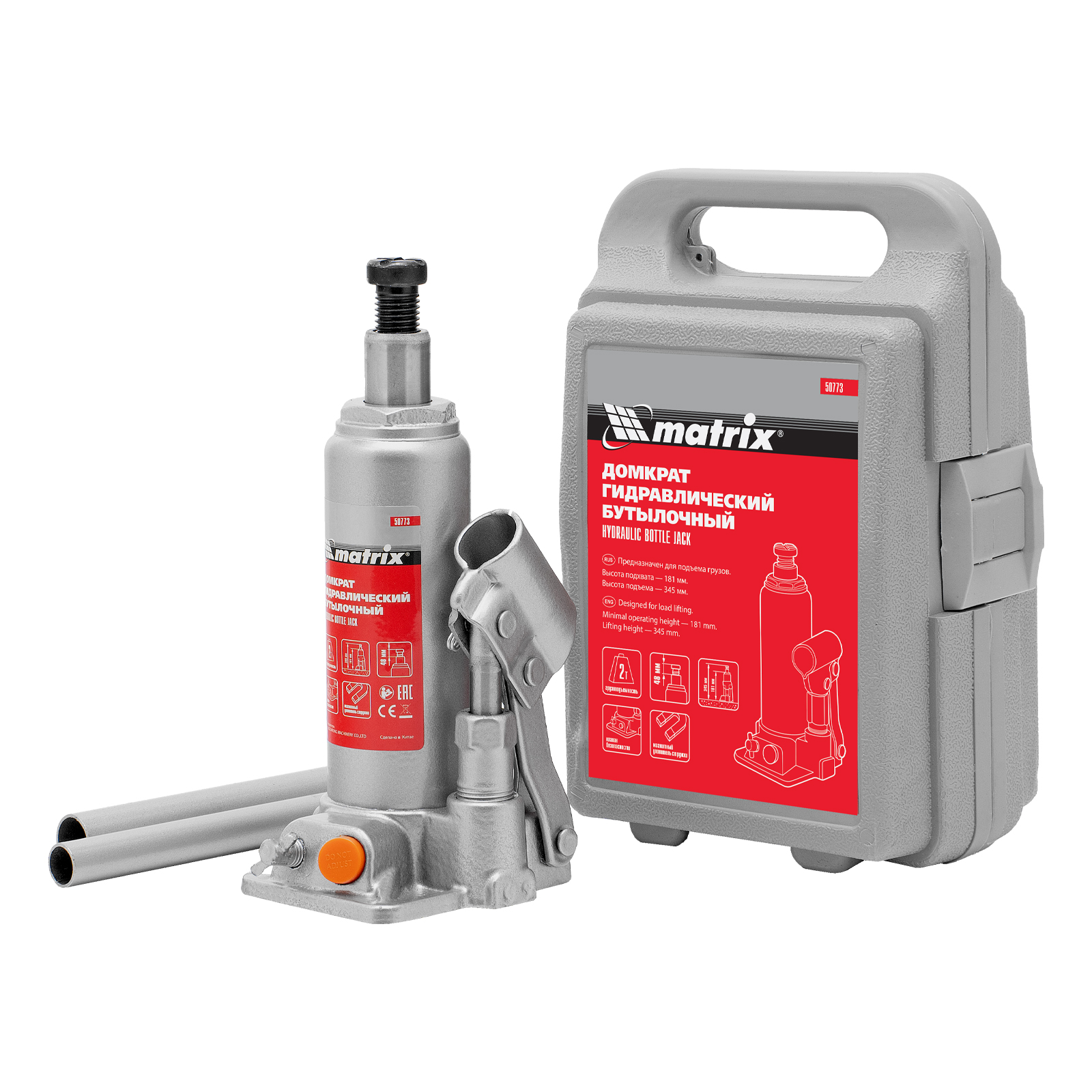 Гидравлический бутылочный домкрат Matrix 50773 позволяет быстро поднимать грузы массой до 2 т на высоту 181-345 мм. Встроенный магнитный уловитель собирает металлическую стружку, предотвращая преждевременный износ резиновых уплотнителей. Домкрат пригодится для полупрофессионального применения.