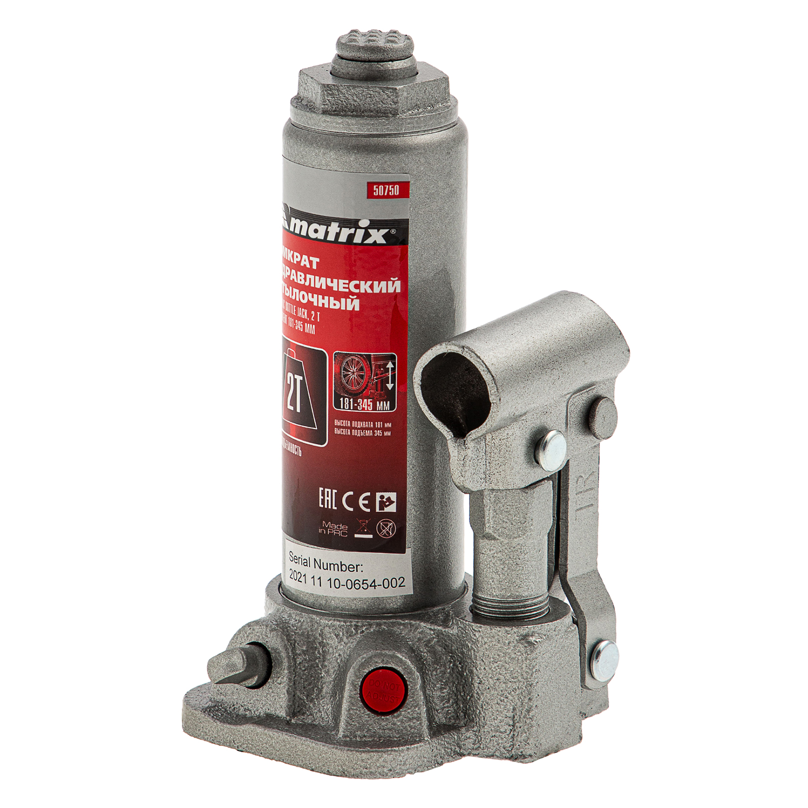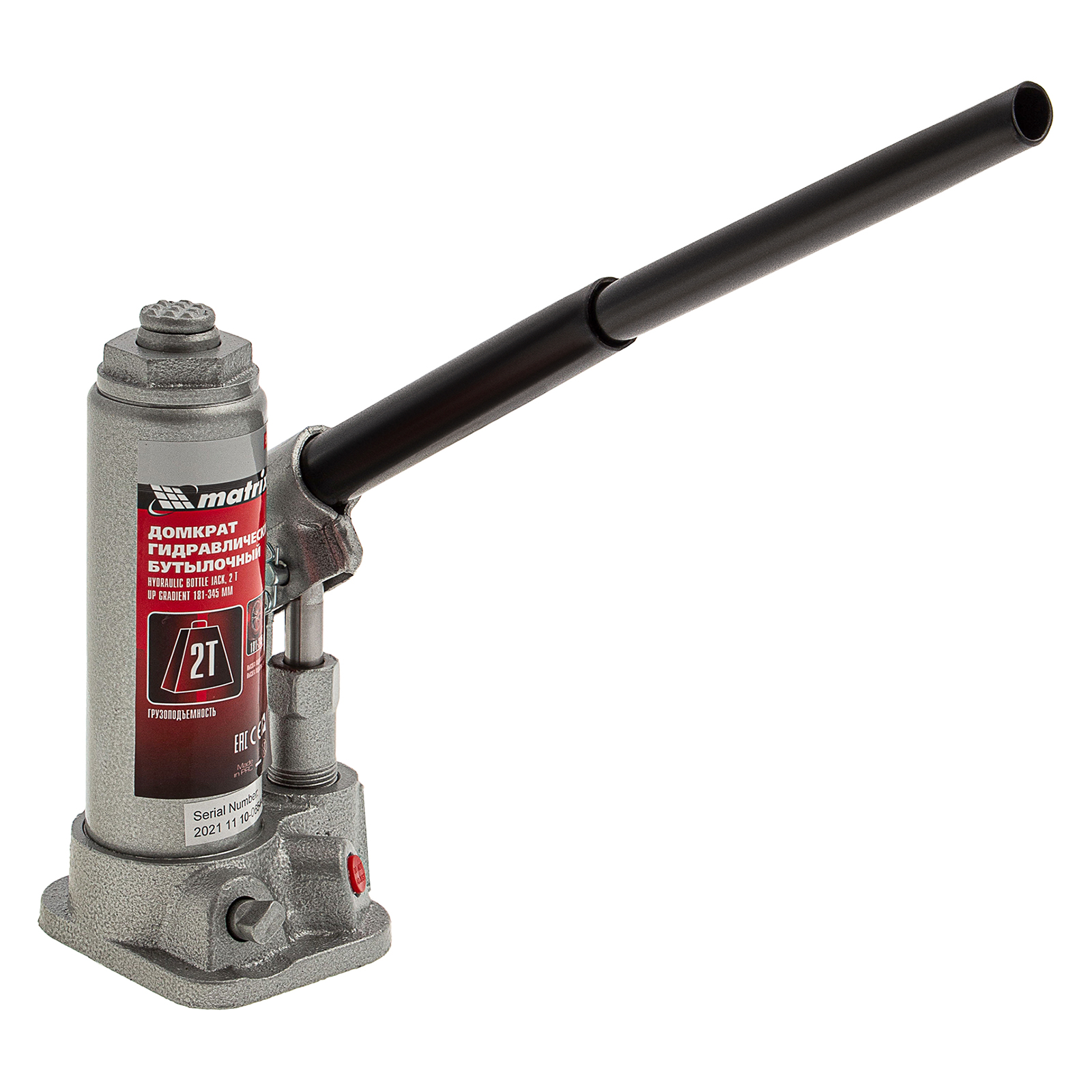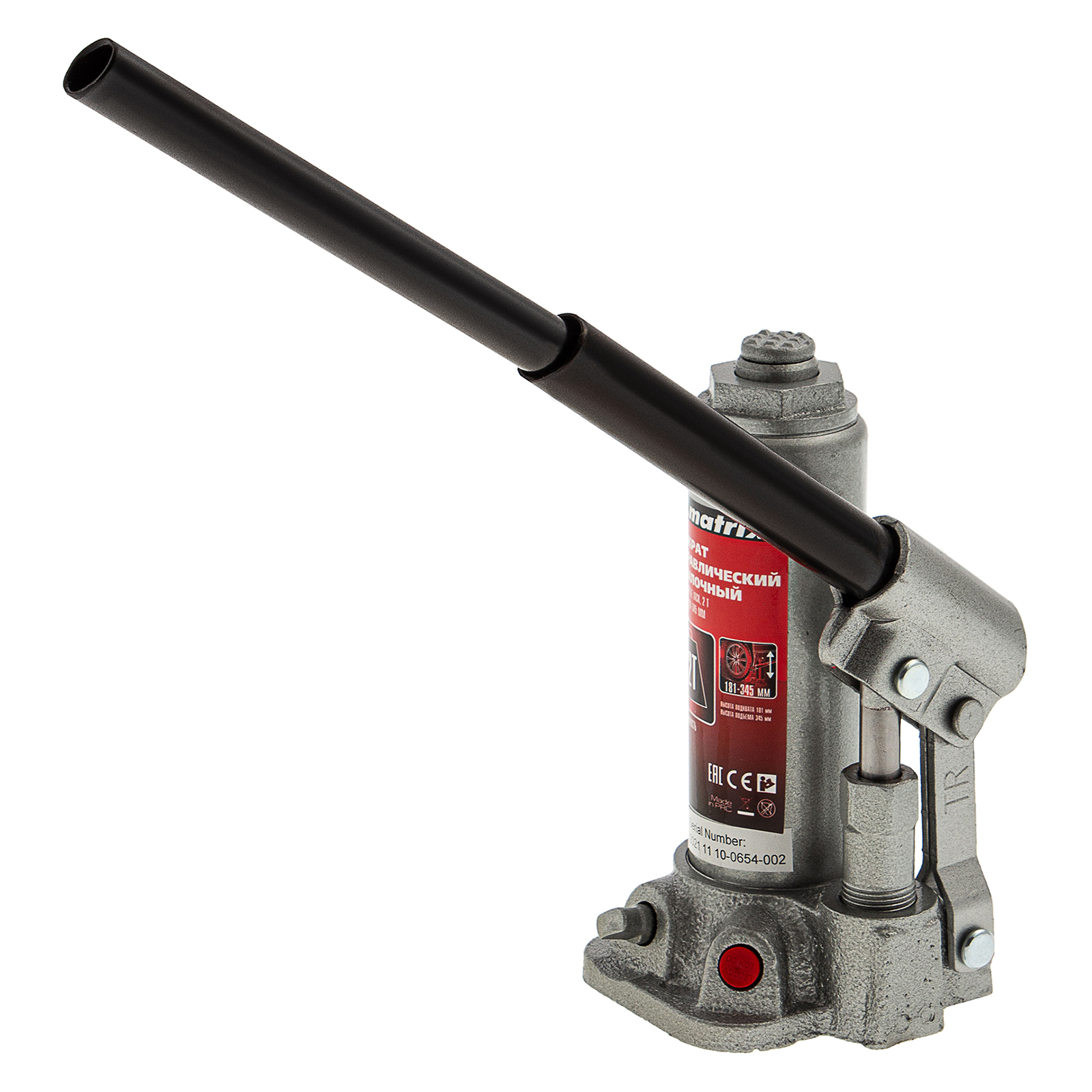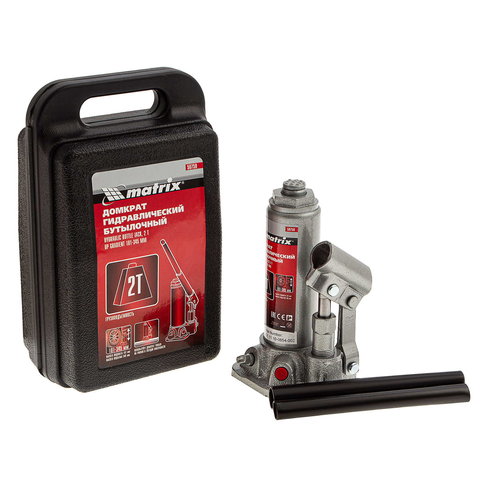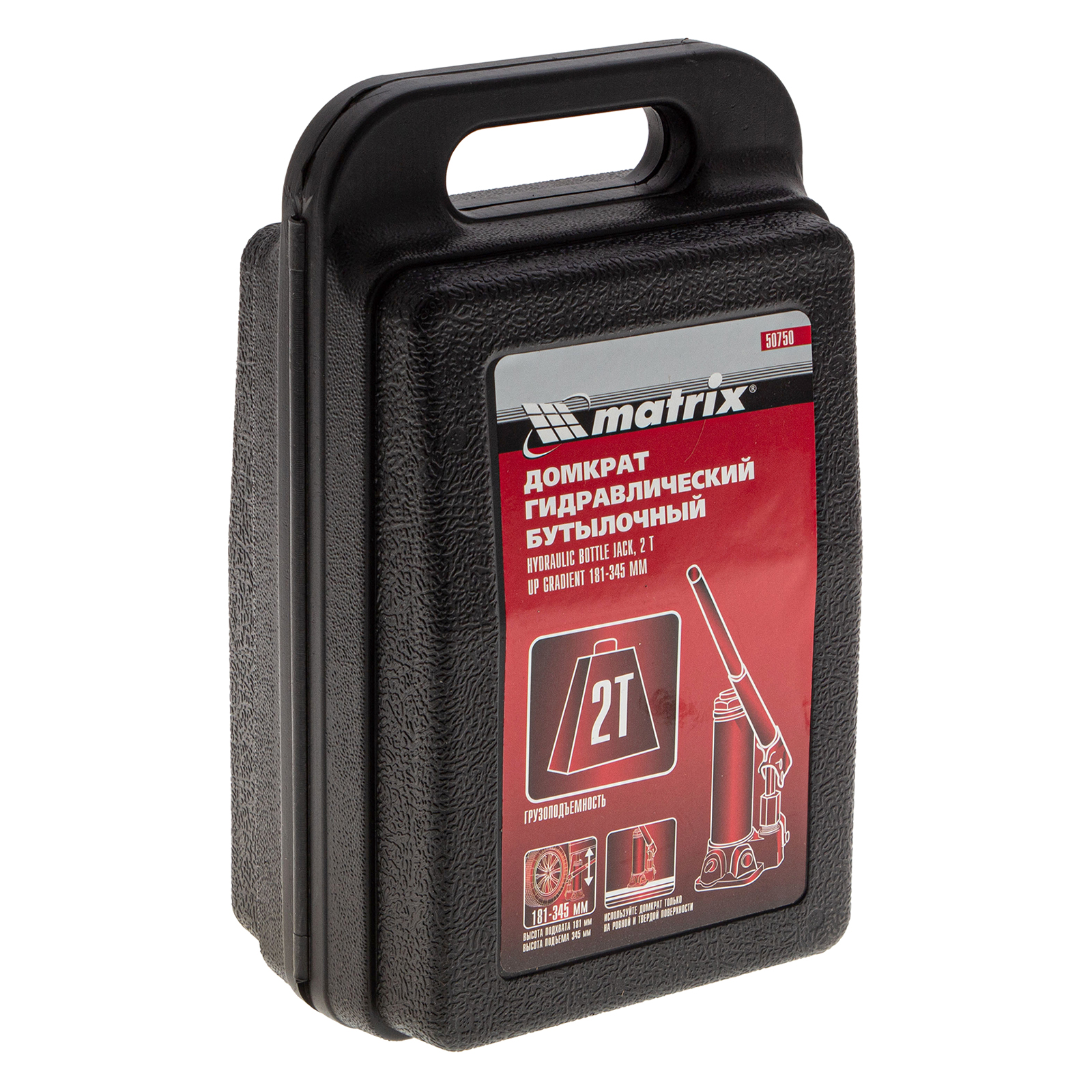 Домкрат гидравлический бутылочный Matrix 50750 предназначен для подъема грузов массой до 2 т на высоту от 181 до 345 мм. Оптимален для машин с большим клиренсом. Будет полезен автолюбителям при проведении технического обслуживания и ремонте авто в дороге или в гараже. Также домкрат подходит для полупрофессионального применения на станциях ТО.
