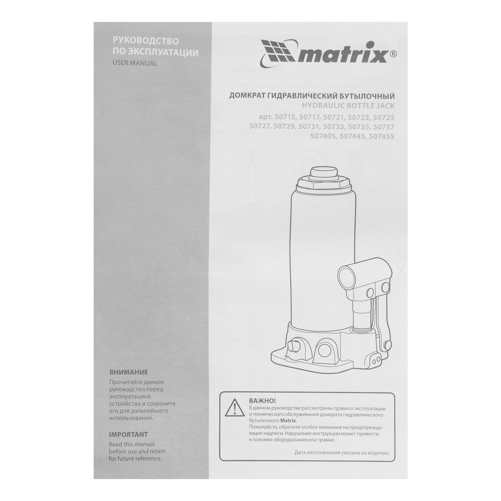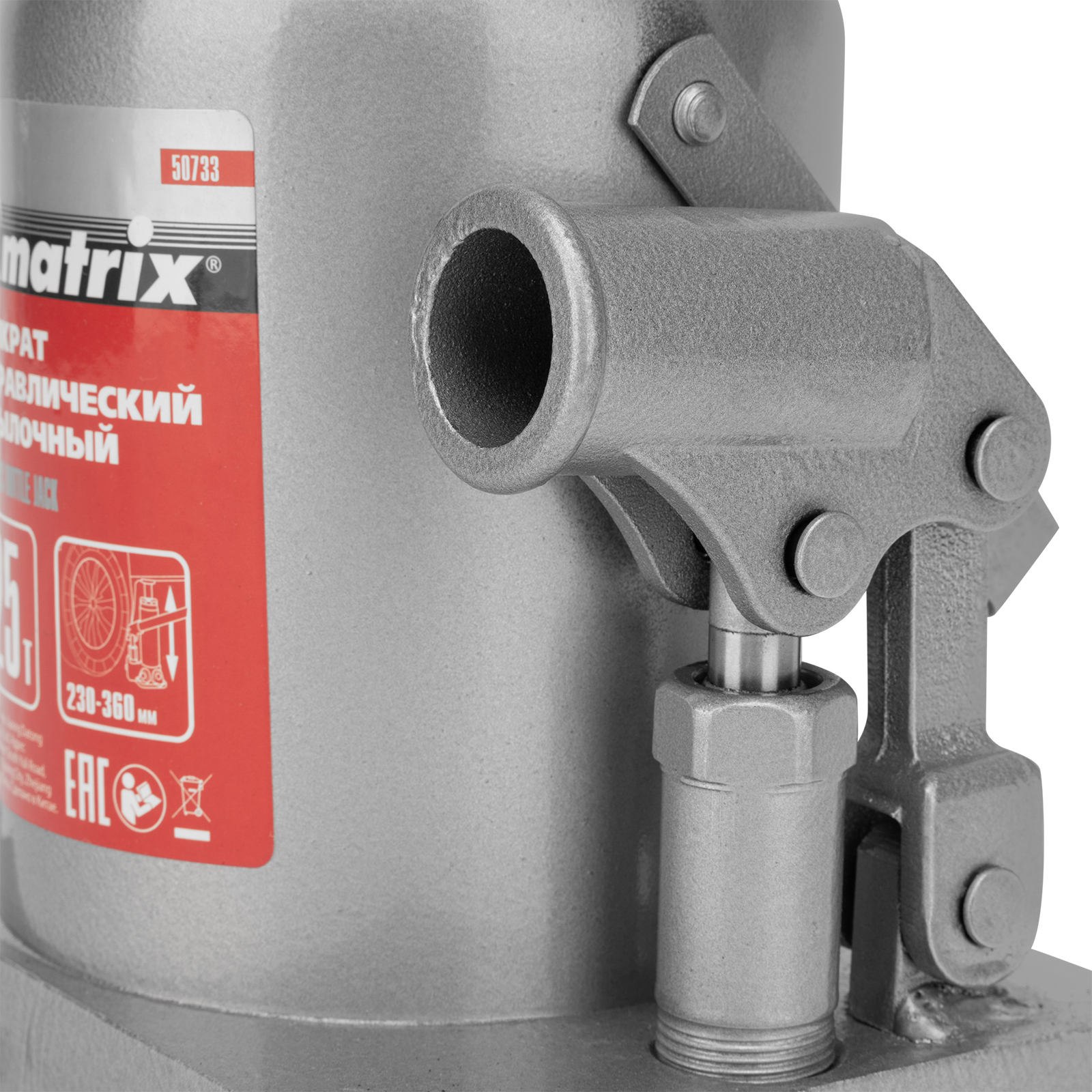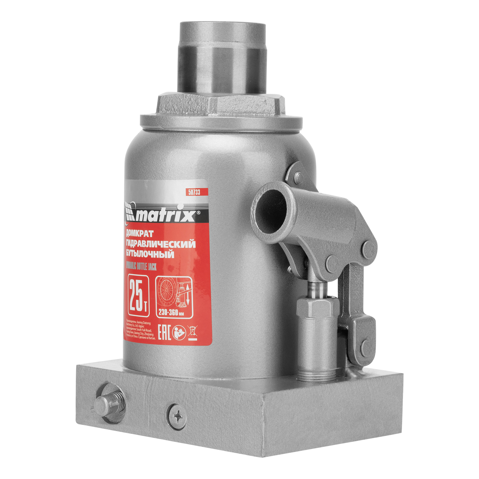 Домкрат гидравлический бутылочный Matrix 50733 используется для поднятия грузов массой до 25 т на высоту 230-360 мм. Подходит для автомобилей с высоким клиренсом. Домкрат будет полезен автолюбителям в гараже и дороге, а также сотрудникам СТО.
