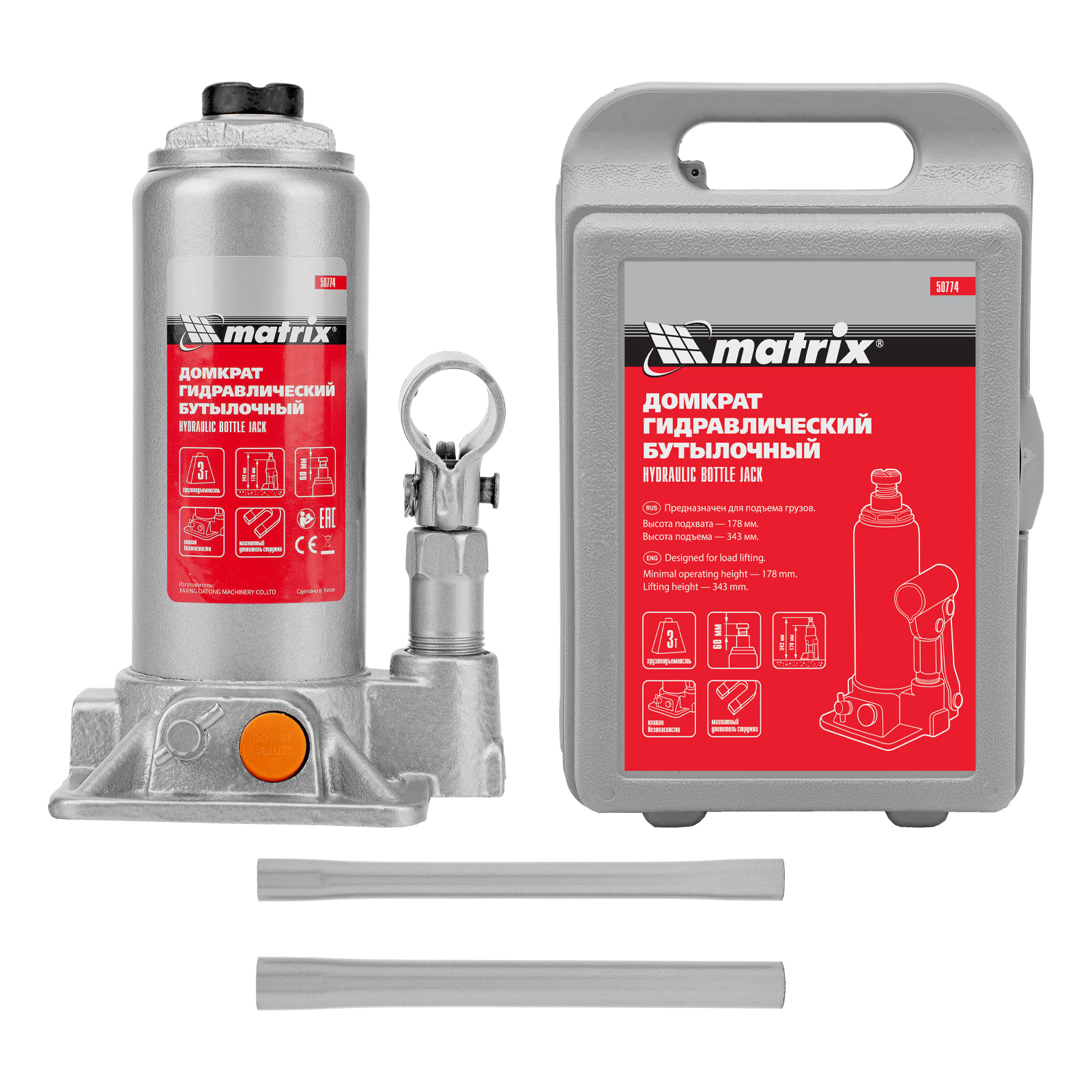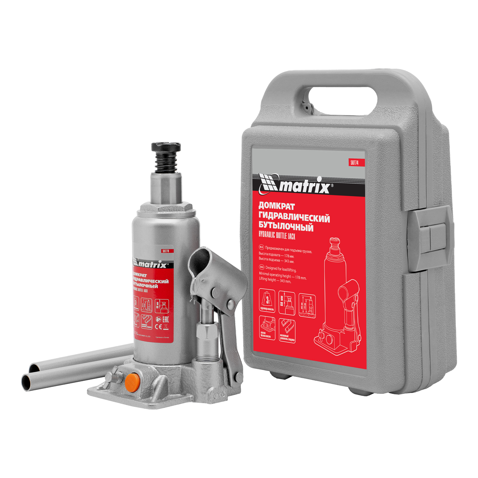 Гидравлический бутылочный домкрат Matrix 50774 позволяет быстро поднимать грузы массой до 3 т на высоту 178-343 мм. Встроенный магнитный уловитель собирает металлическую стружку, предотвращая преждевременный износ резиновых уплотнителей. Домкрат пригодится для полупрофессионального применения.
