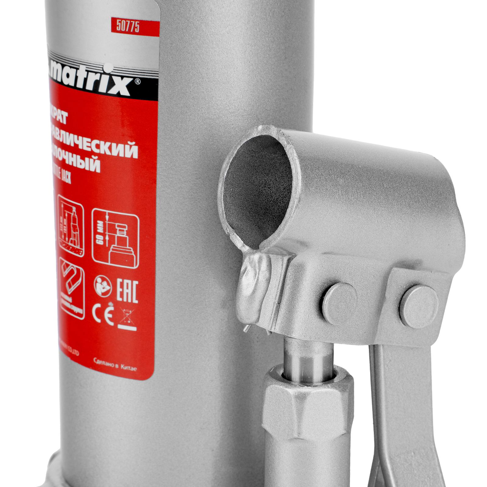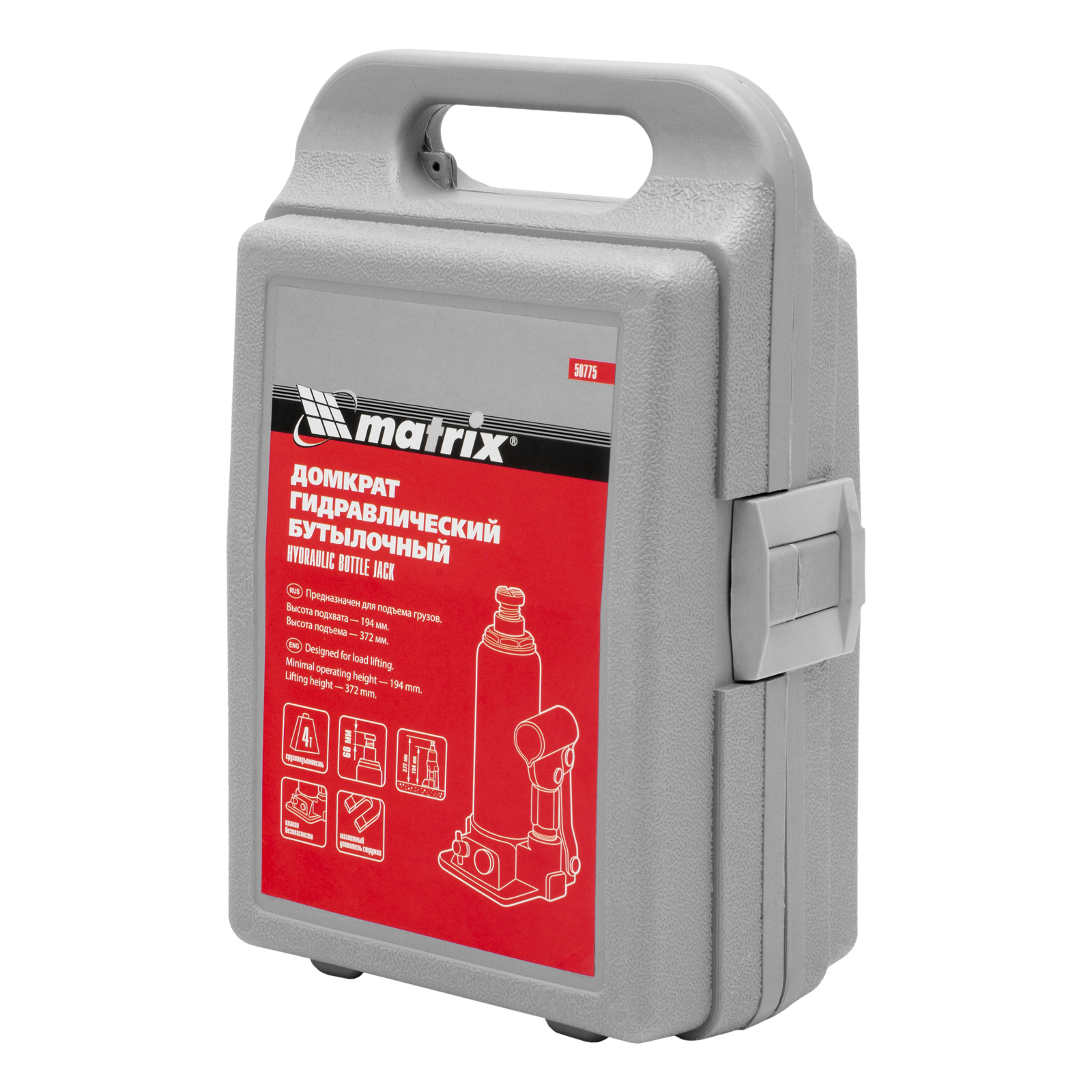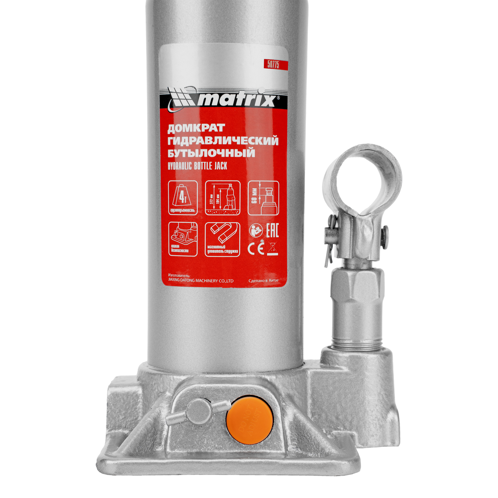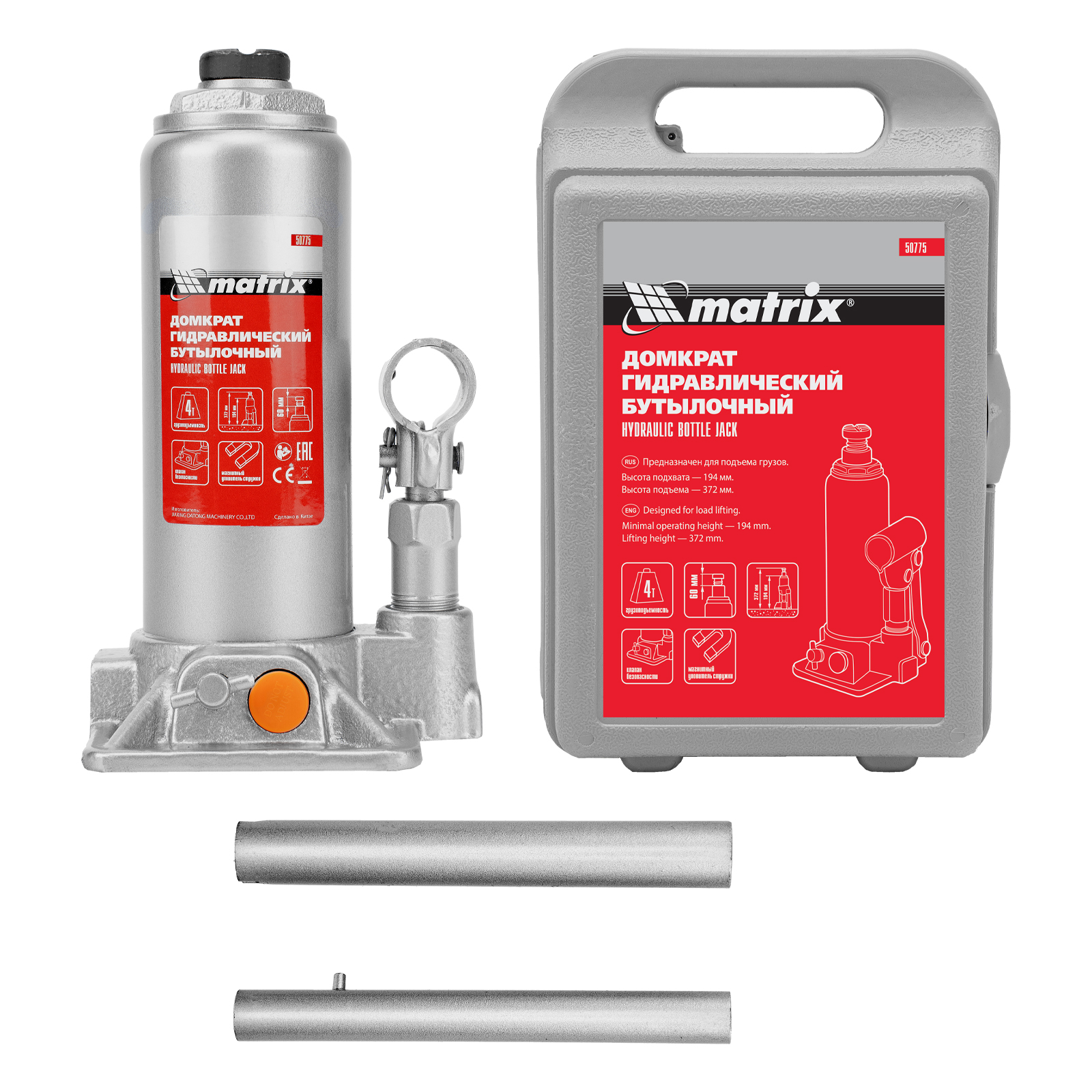 Гидравлический бутылочный домкрат Matrix 50775 позволяет быстро поднимать грузы массой до 4 т на высоту 194-372 мм. Встроенный магнитный уловитель собирает металлическую стружку, предотвращая преждевременный износ резиновых уплотнителей. Домкрат пригодится для полупрофессионального применения.