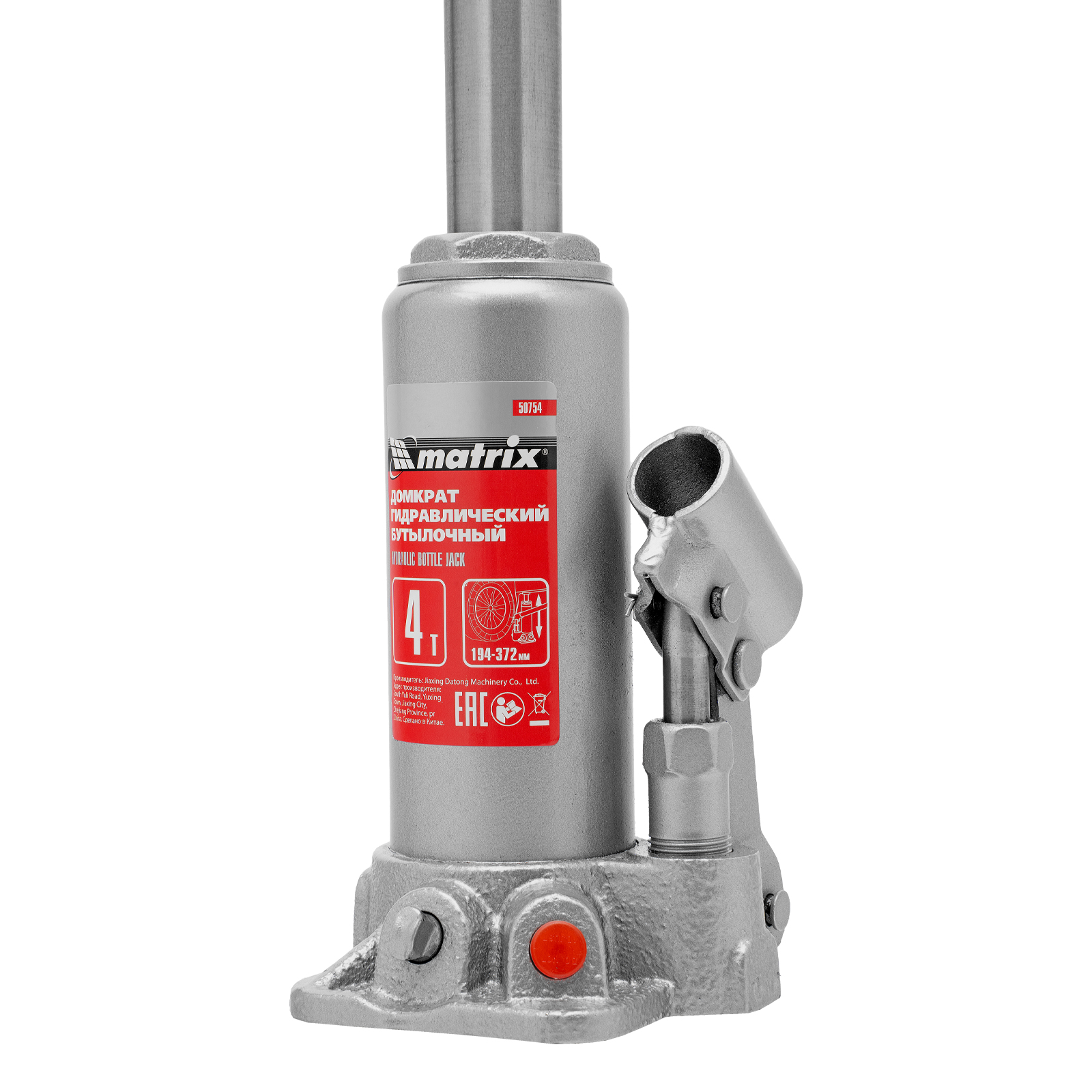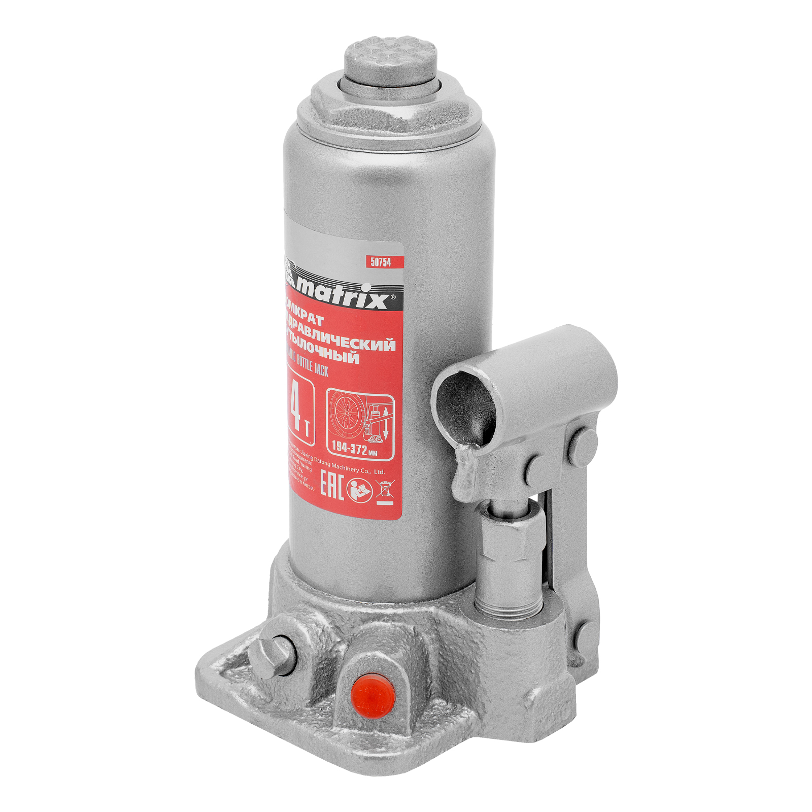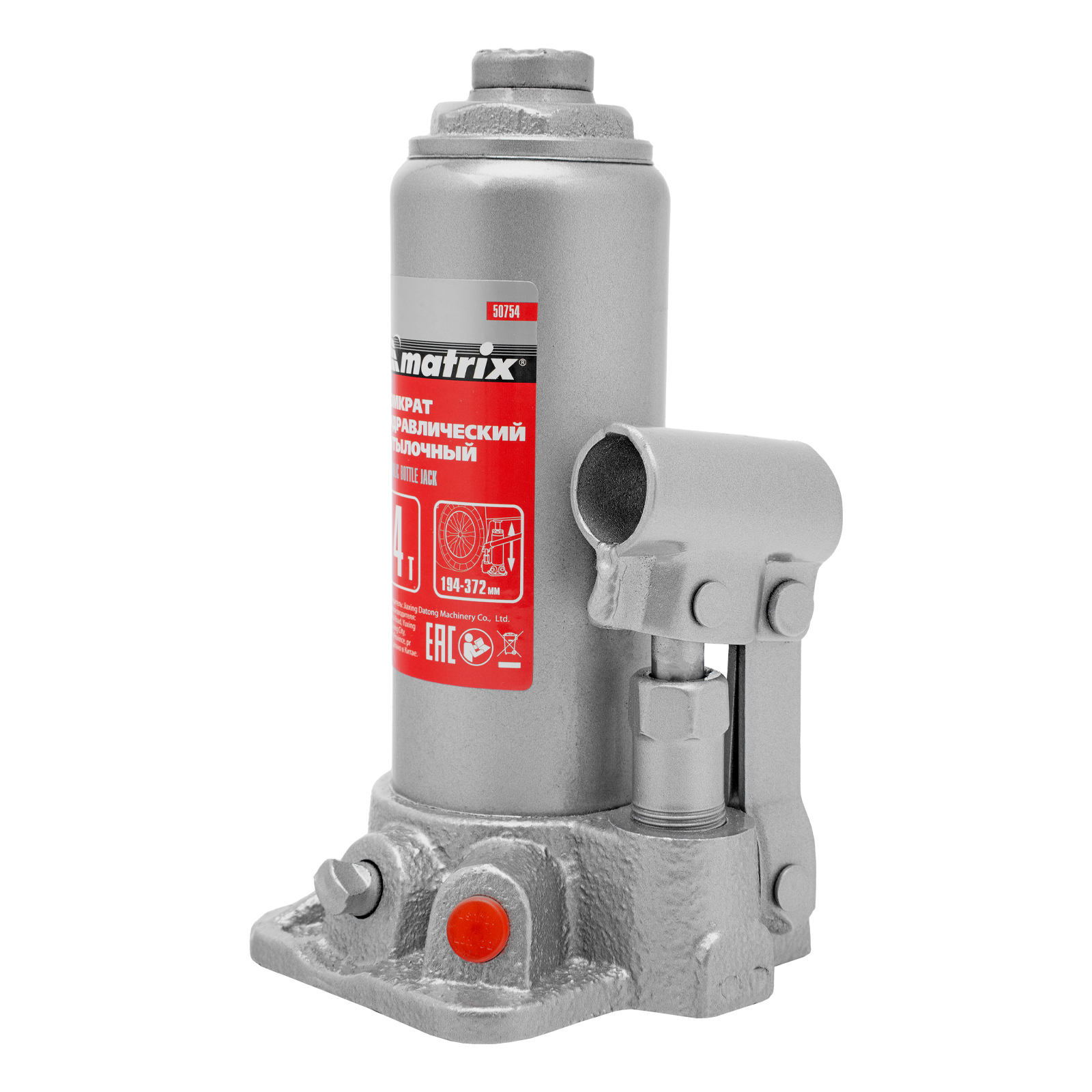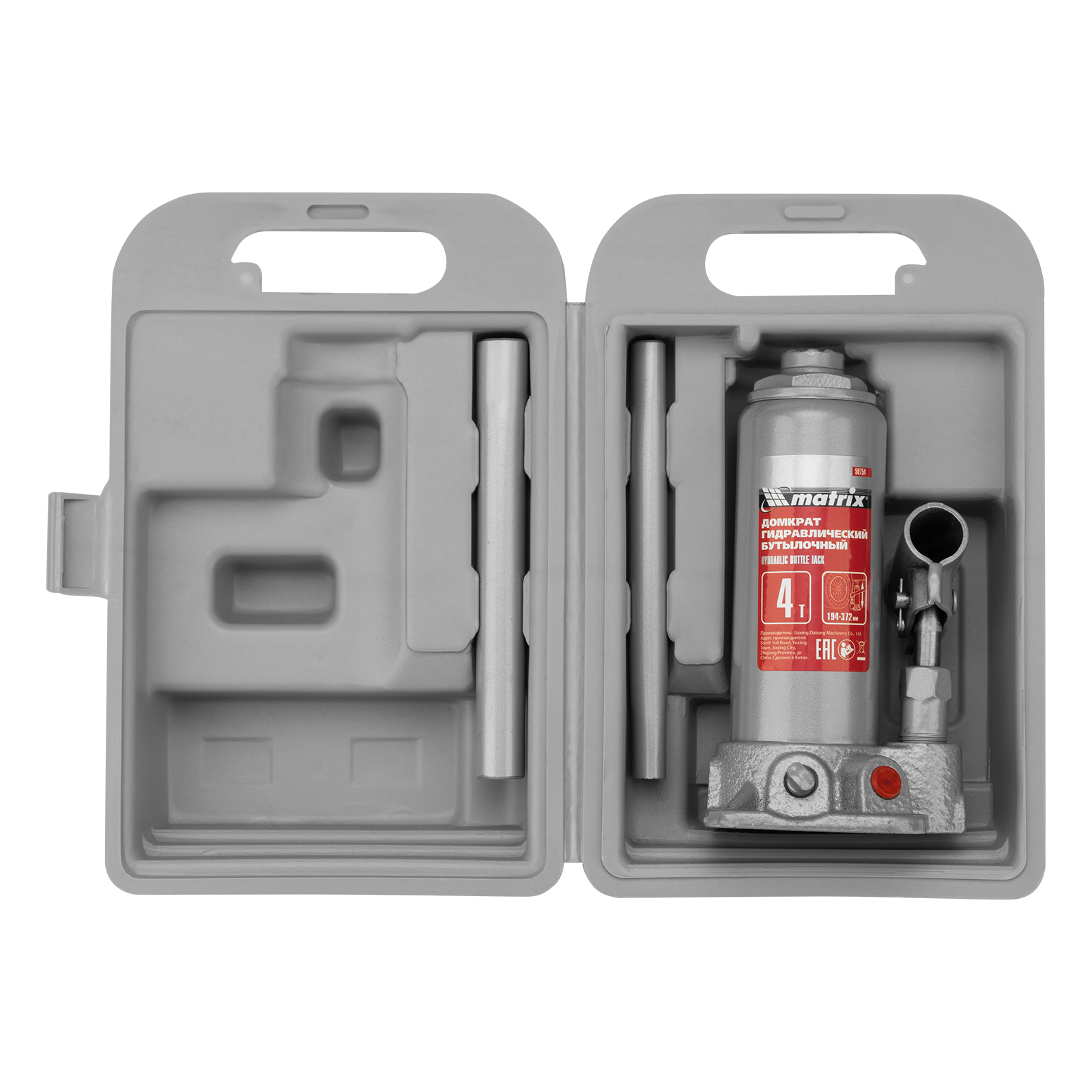 Домкрат гидравлический бутылочный Matrix 50754 предназначен для подъема грузов массой до 4 т на высоту от 194 до 372 мм. Оптимален для машин с большим клиренсом. Будет полезен автолюбителям при проведении технического обслуживания и ремонте авто в дороге или в гараже. Также домкрат подходит для полупрофессионального применения на станциях ТО.