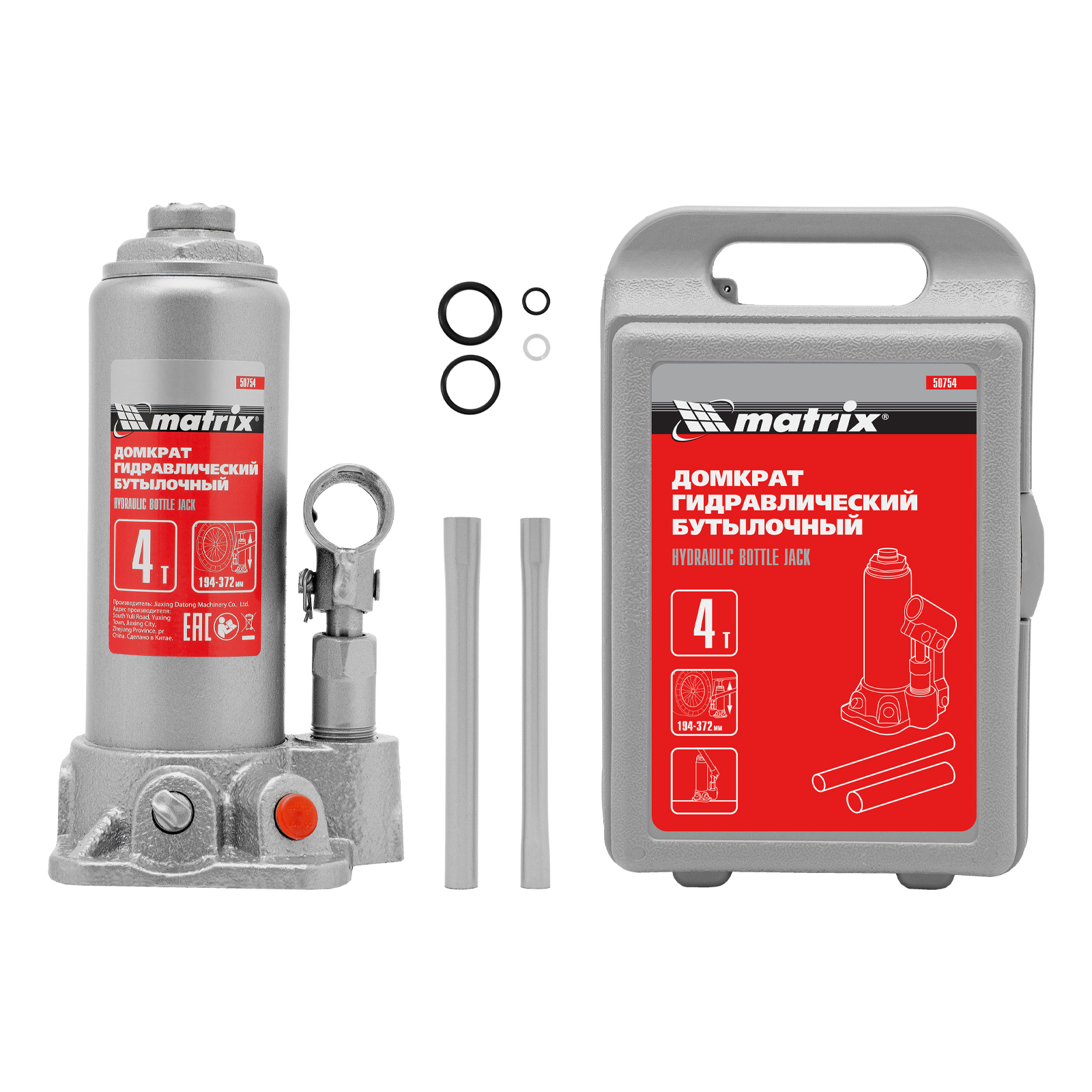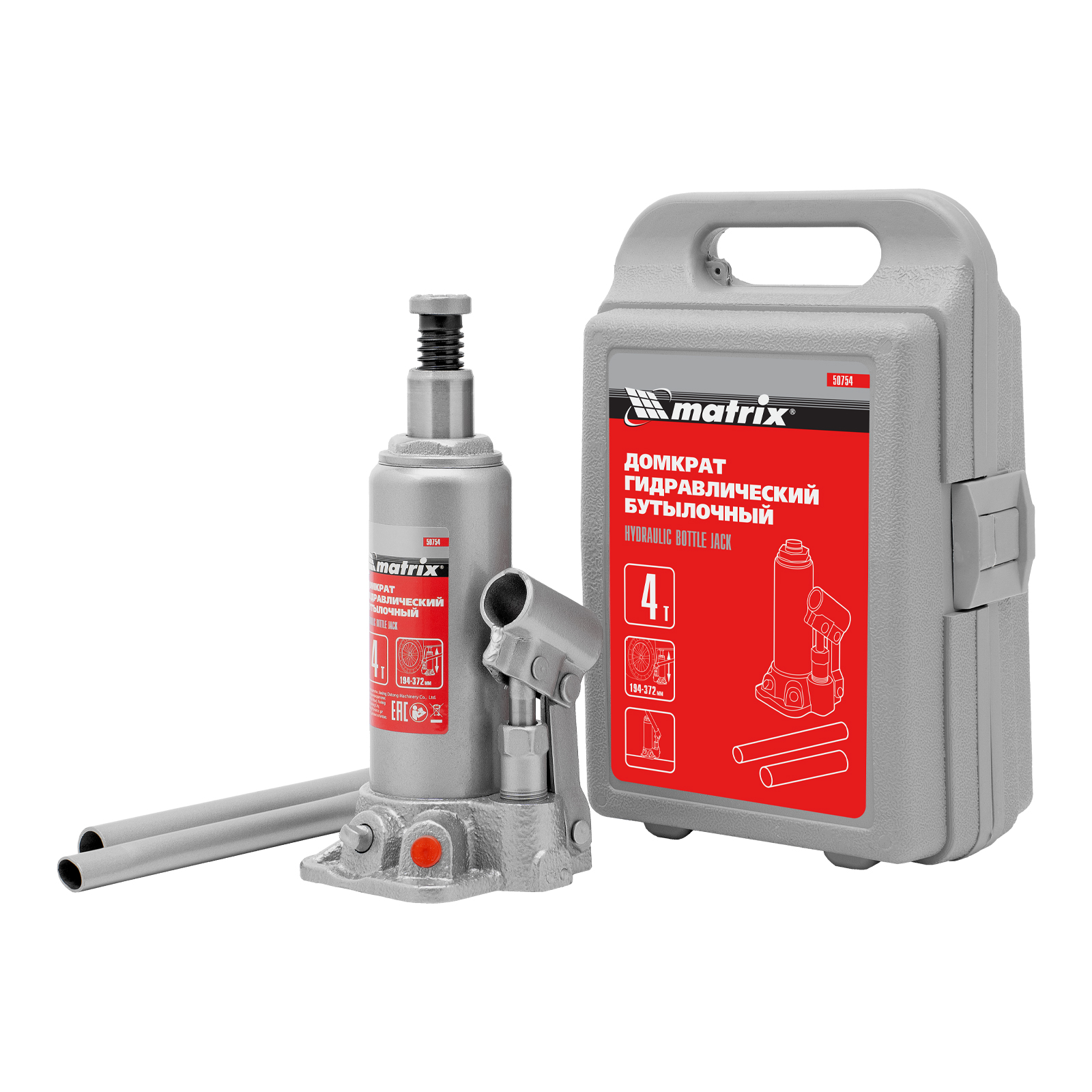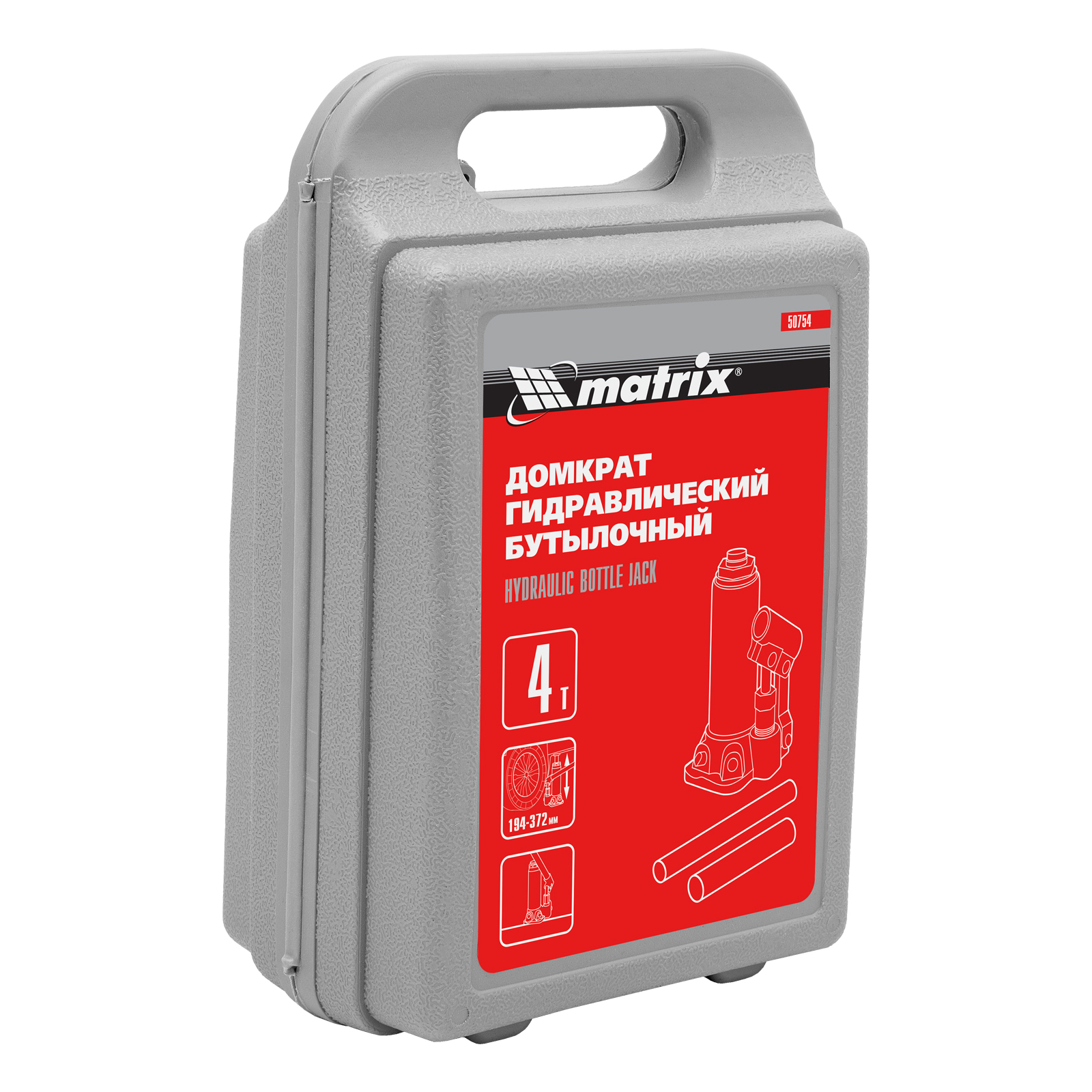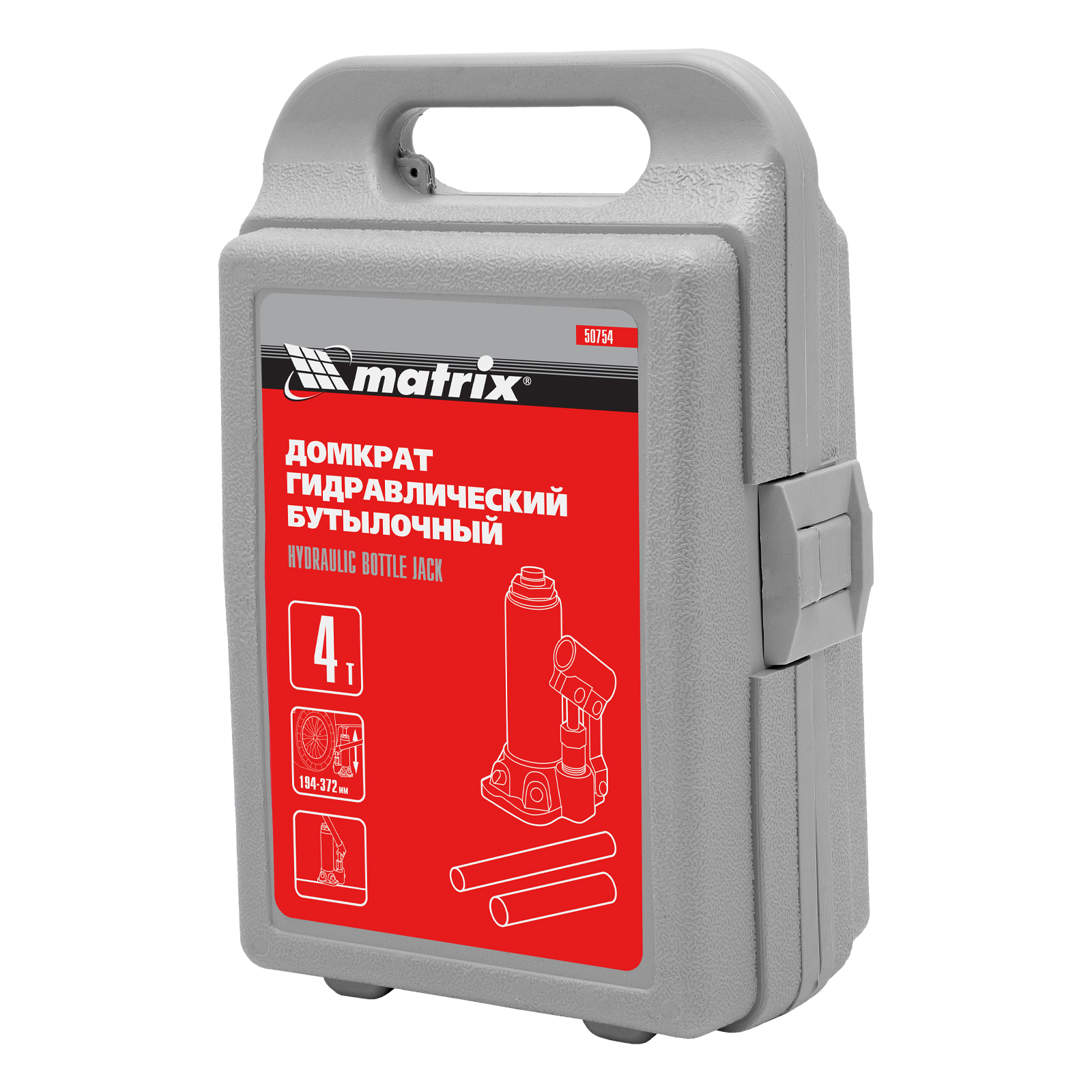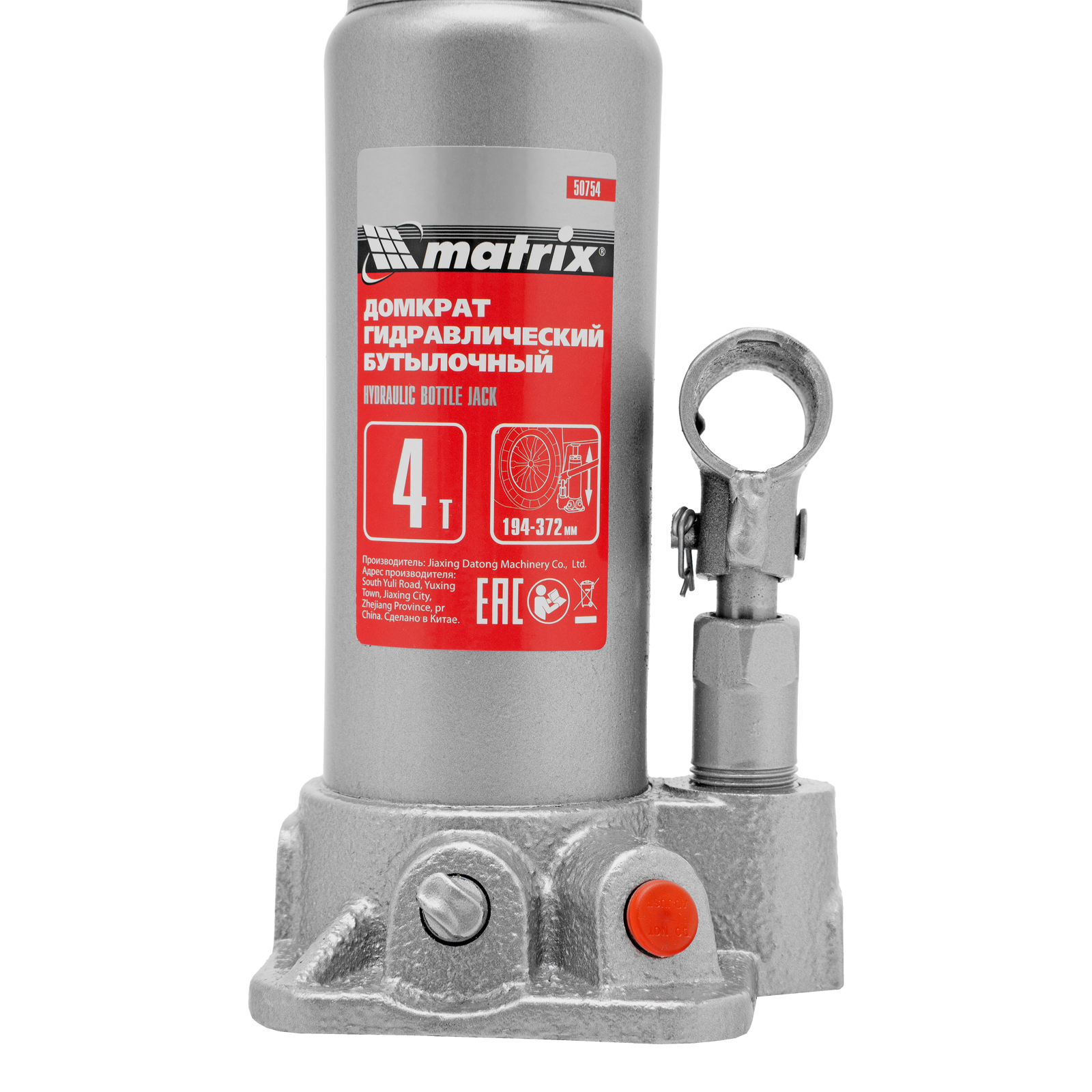 Домкрат гидравлический бутылочный Matrix 50754 предназначен для подъема грузов массой до 4 т на высоту от 194 до 372 мм. Оптимален для машин с большим клиренсом. Будет полезен автолюбителям при проведении технического обслуживания и ремонте авто в дороге или в гараже. Также домкрат подходит для полупрофессионального применения на станциях ТО.