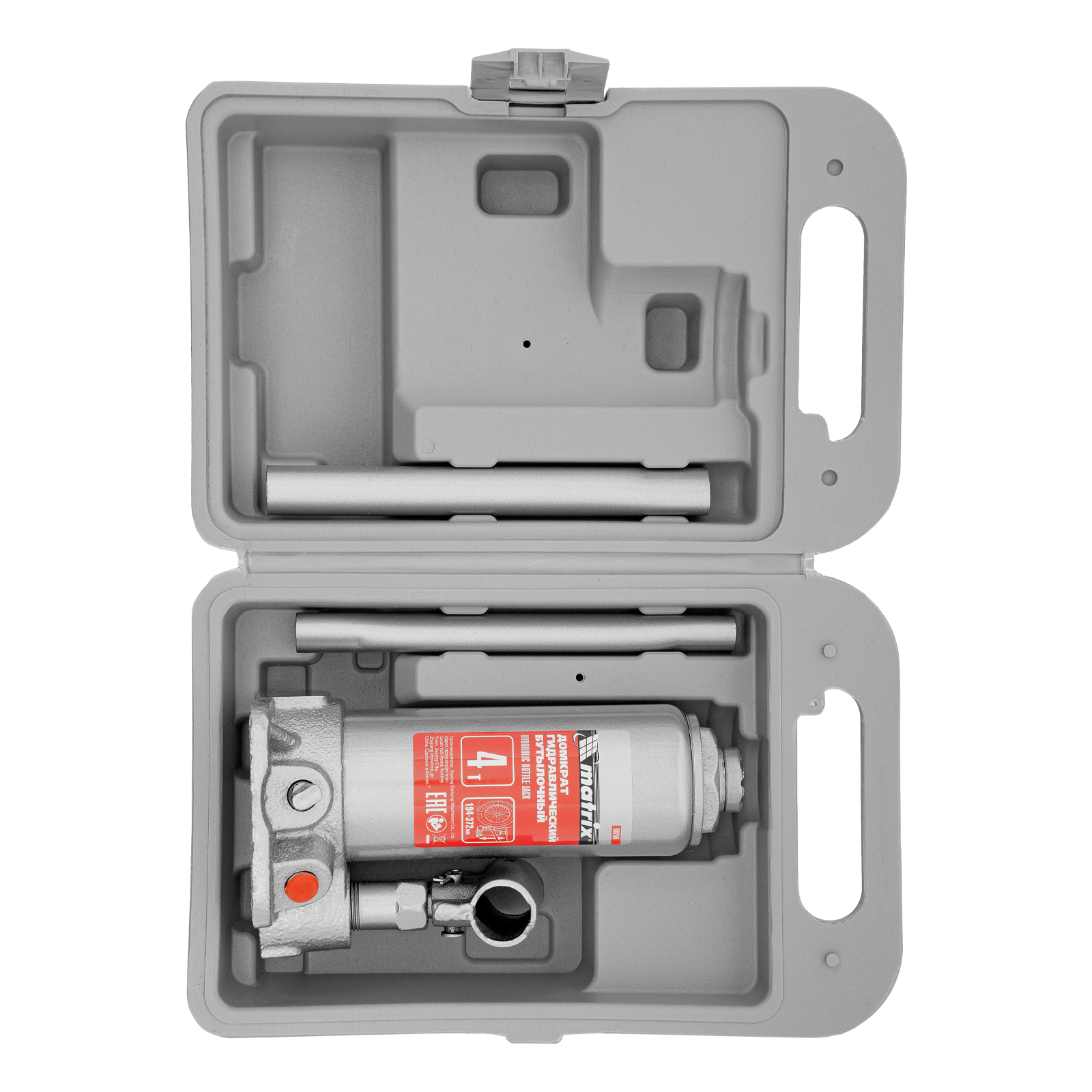 - Удобное хранение и транспортировка — домкрат поставляется в прочном пластиковом кейсе с ручкой.