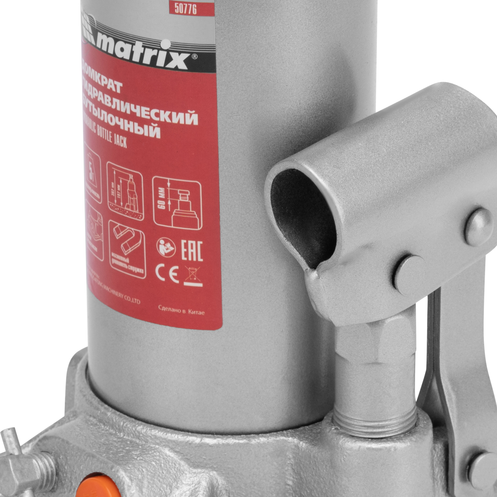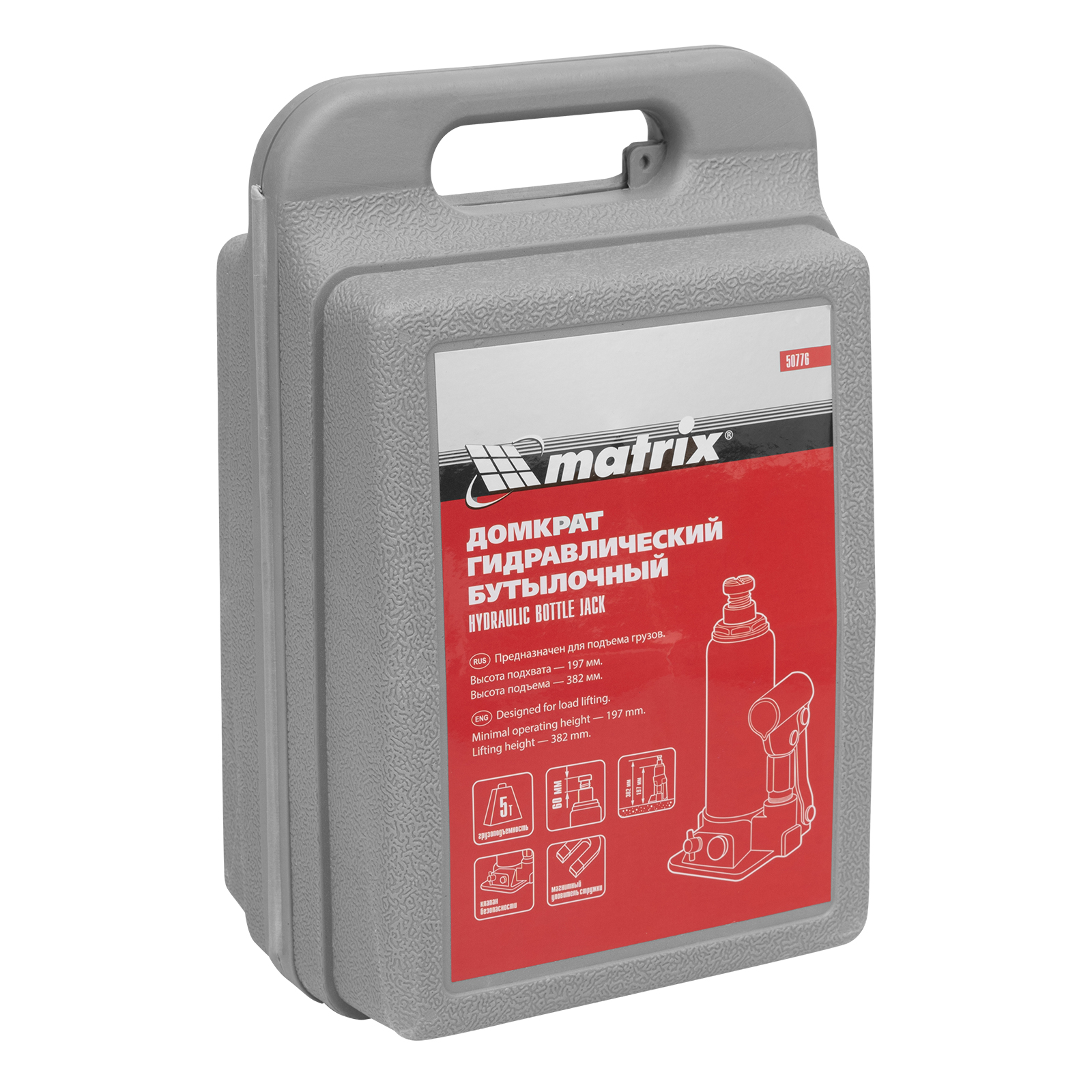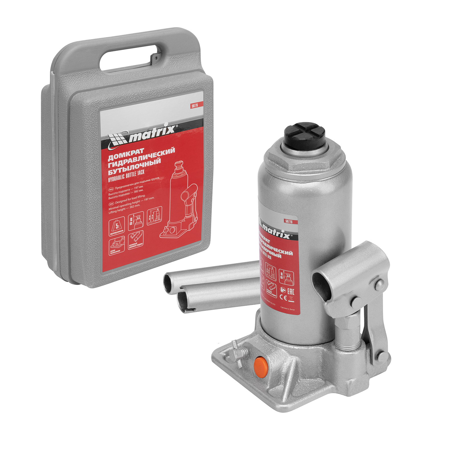 Гидравлический бутылочный домкрат Matrix 50776 позволяет быстро поднимать грузы массой до 5 т на высоту 197-382 мм. Встроенный магнитный уловитель собирает металлическую стружку, предотвращая преждевременный износ резиновых уплотнителей. Домкрат пригодится для полупрофессионального применения.