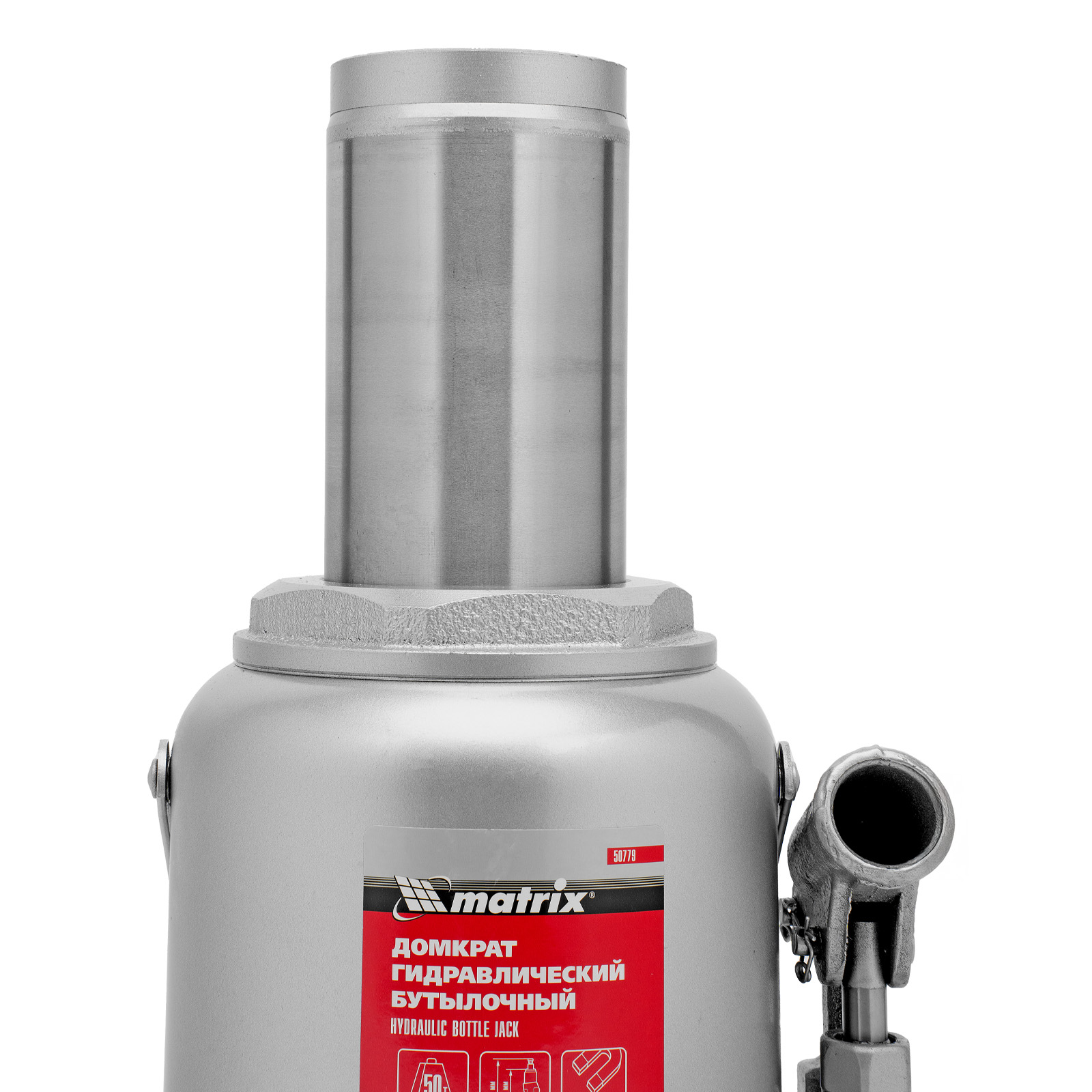 Гидравлический бутылочный домкрат Matrix 50779 поднимает грузы весом до 50 т на высоту 236-356 мм и может использоваться в гараже, на станции ТО или строительной площадке. Встроенный магнитный уловитель собирает металлическую стружку, образующуюся в процессе работы, что защищает домкрат от преждевременного износа.