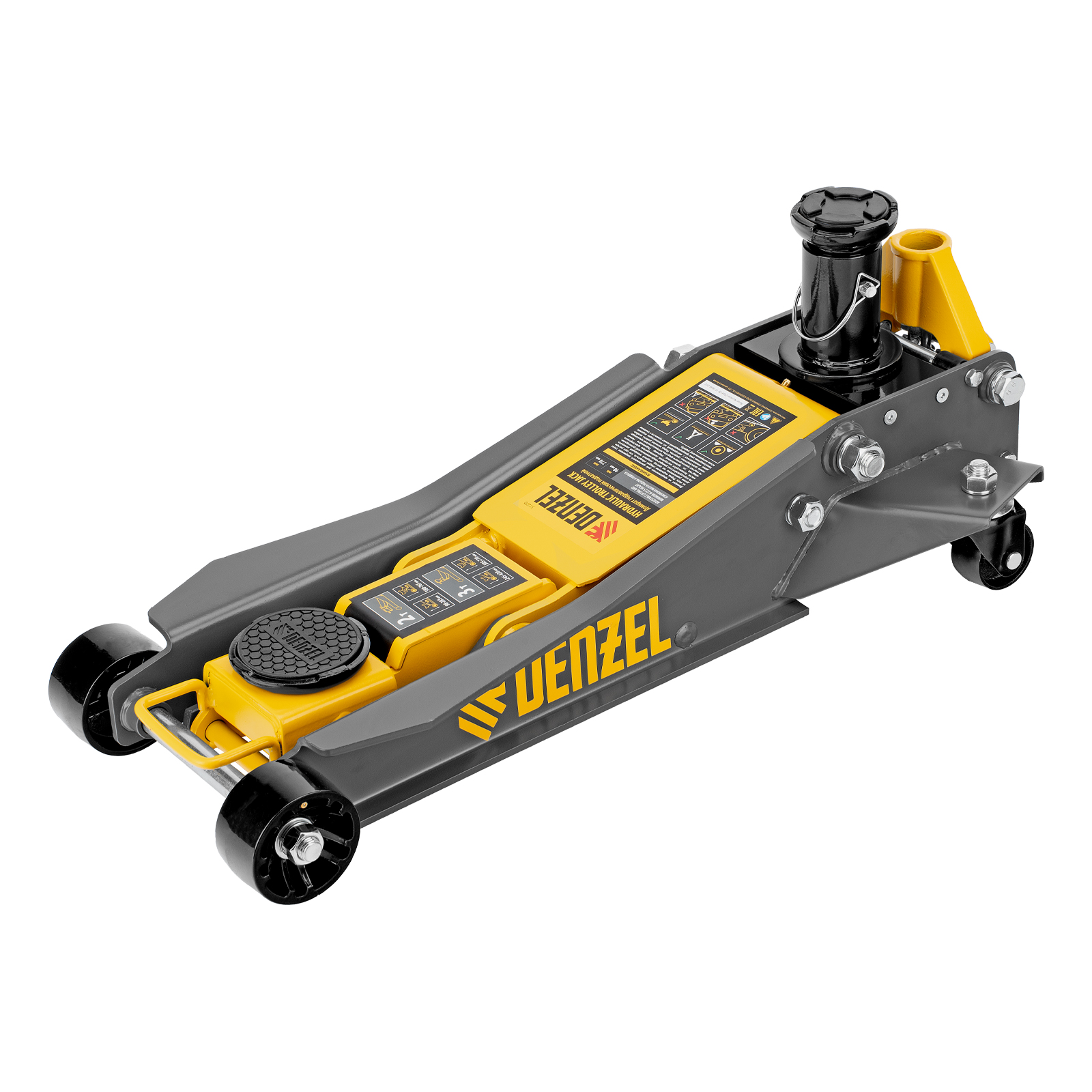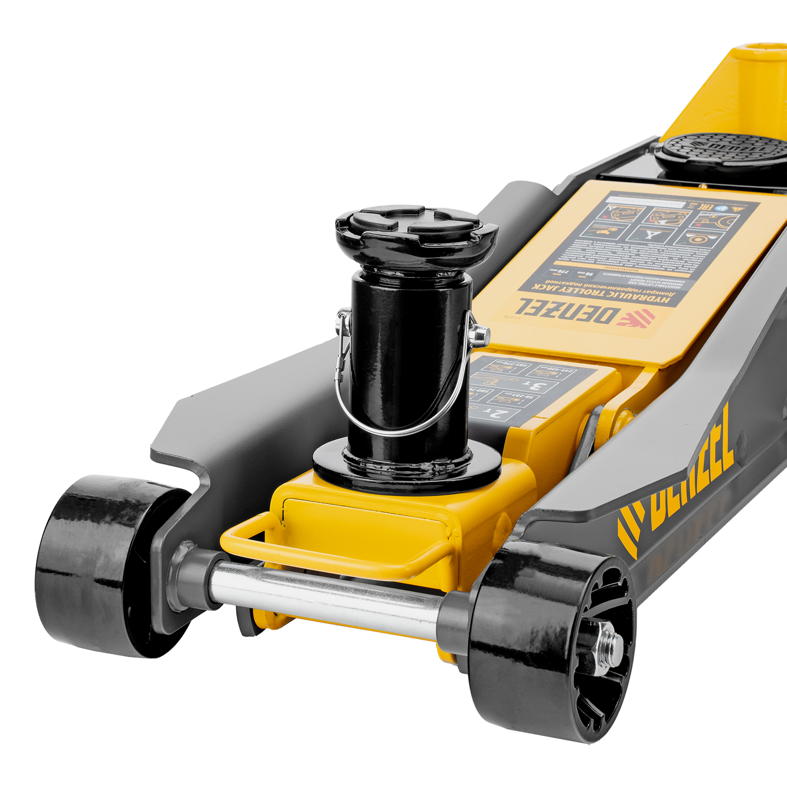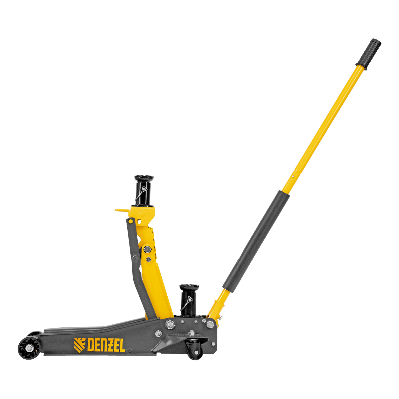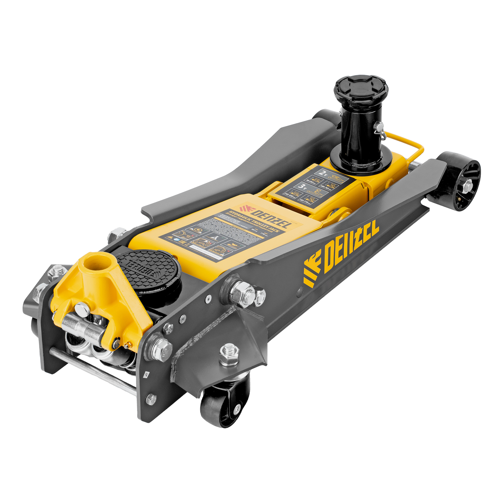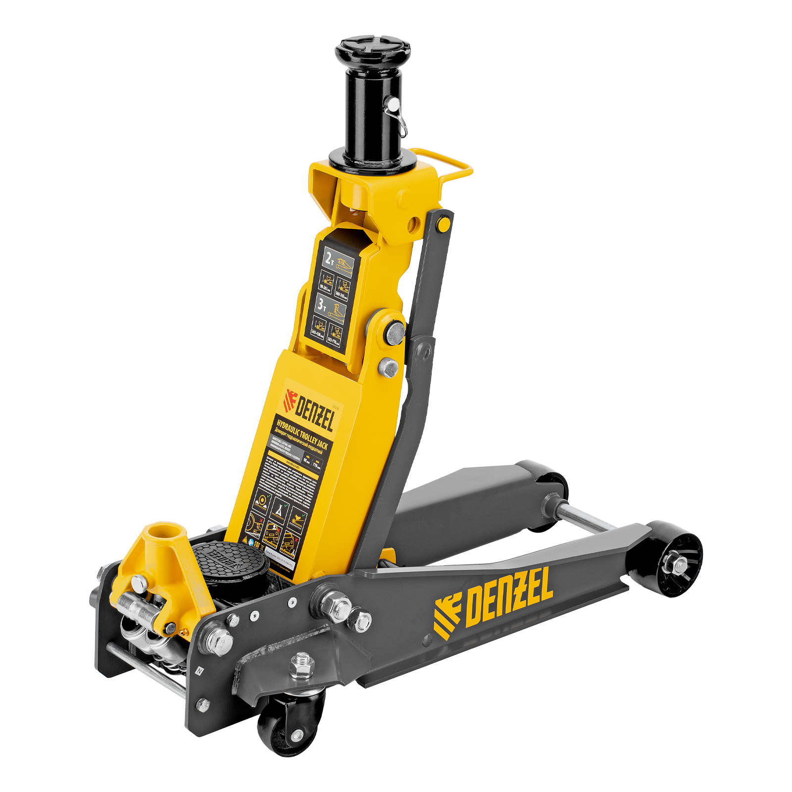 Профессиональный подкатной гидравлический домкрат Denzel 51270 с низким подхватом используется для быстрого подъема на высоту 98-770 мм всех типов автомобилей с любым клиренсом и массой до 2-3 т, в том числе SUV (внедорожников). Регулируемая проставка позволяет менять высоту подхвата и подъема, а также максимальную грузоподъемность. Высота подъема до 770 мм позволяет без труда обслуживать автомобили с высоким клиренсом, такие как рамные внедорожники, например, Dodge RAM, Ford Raptor и т.д.