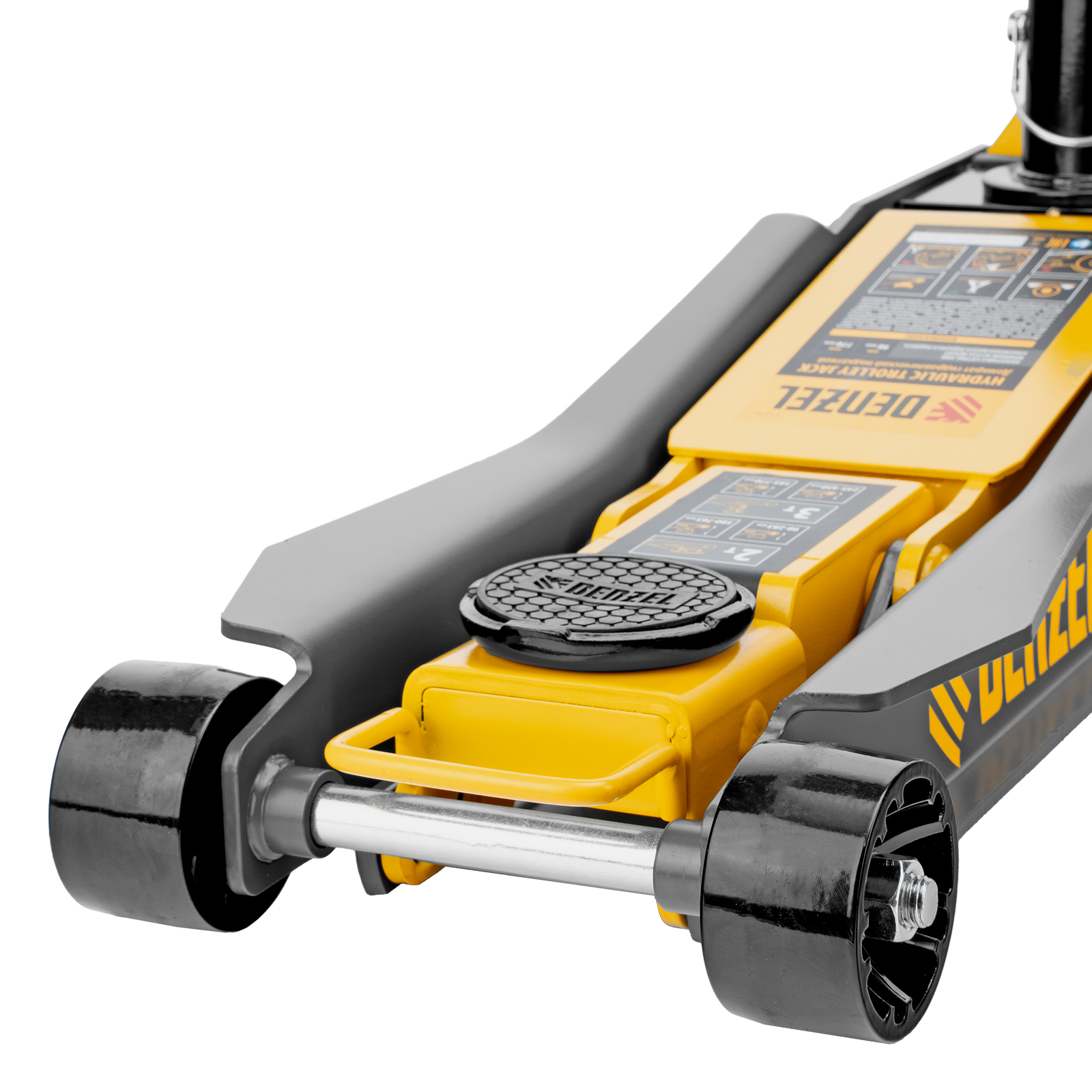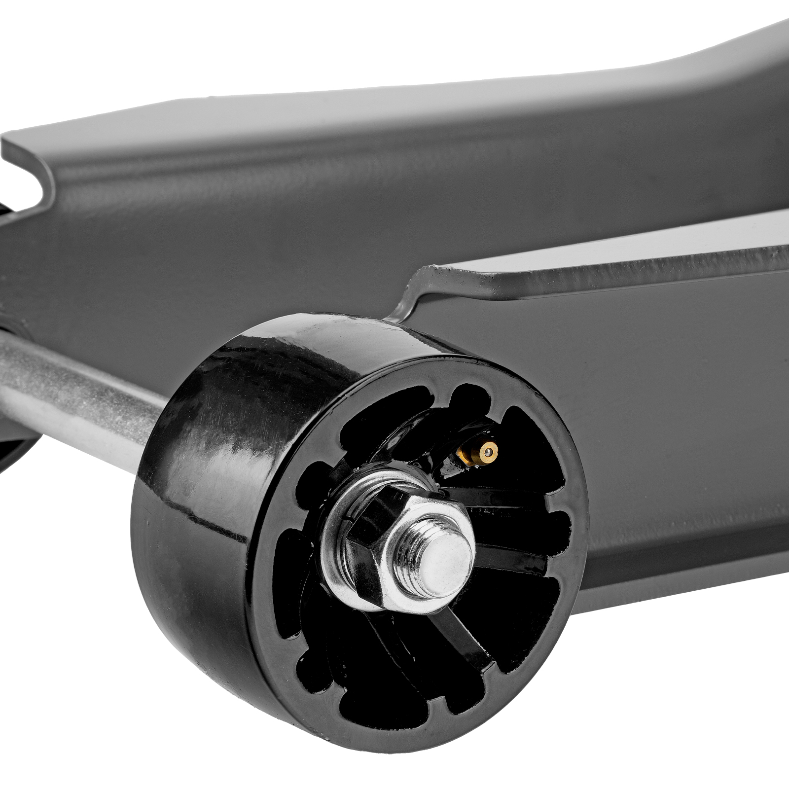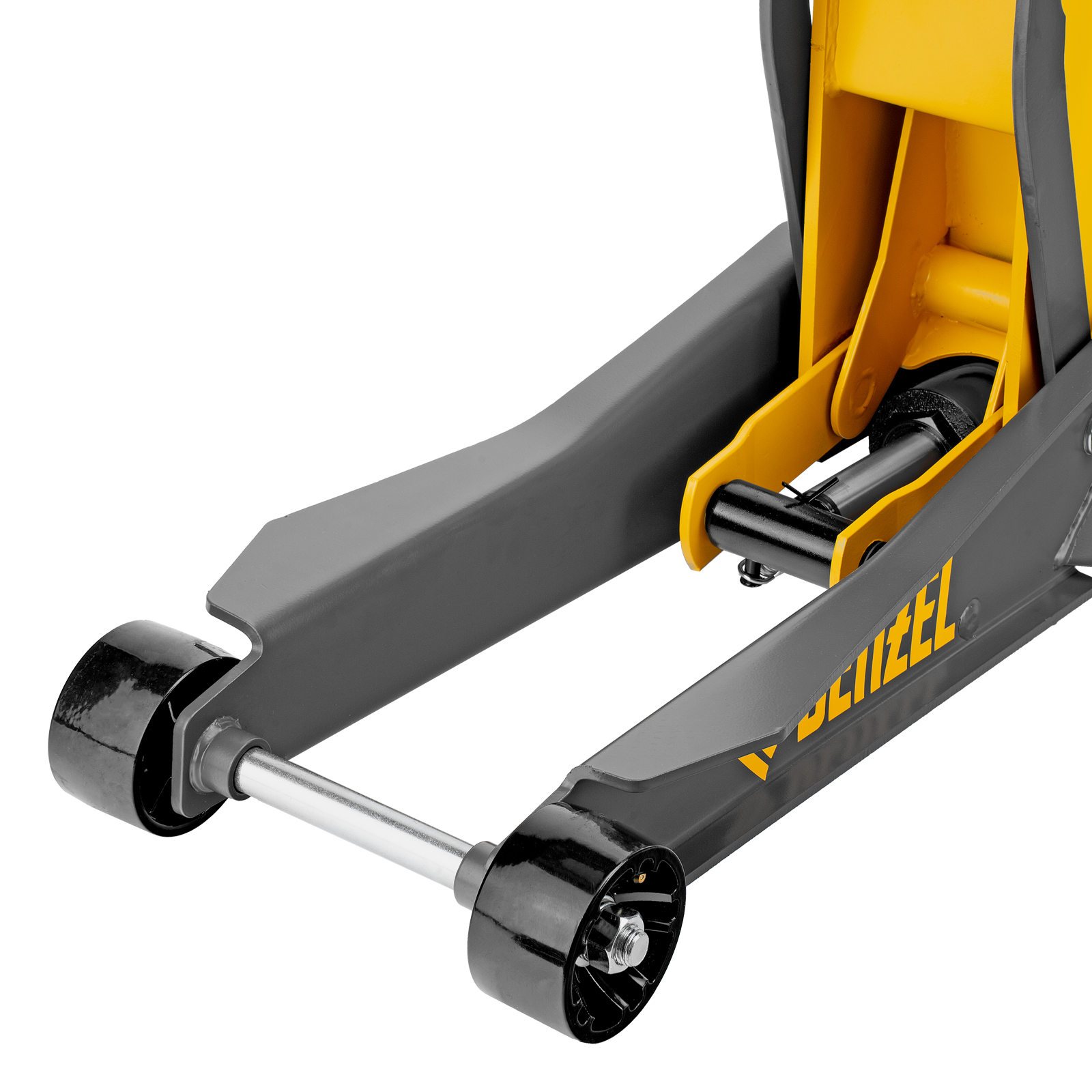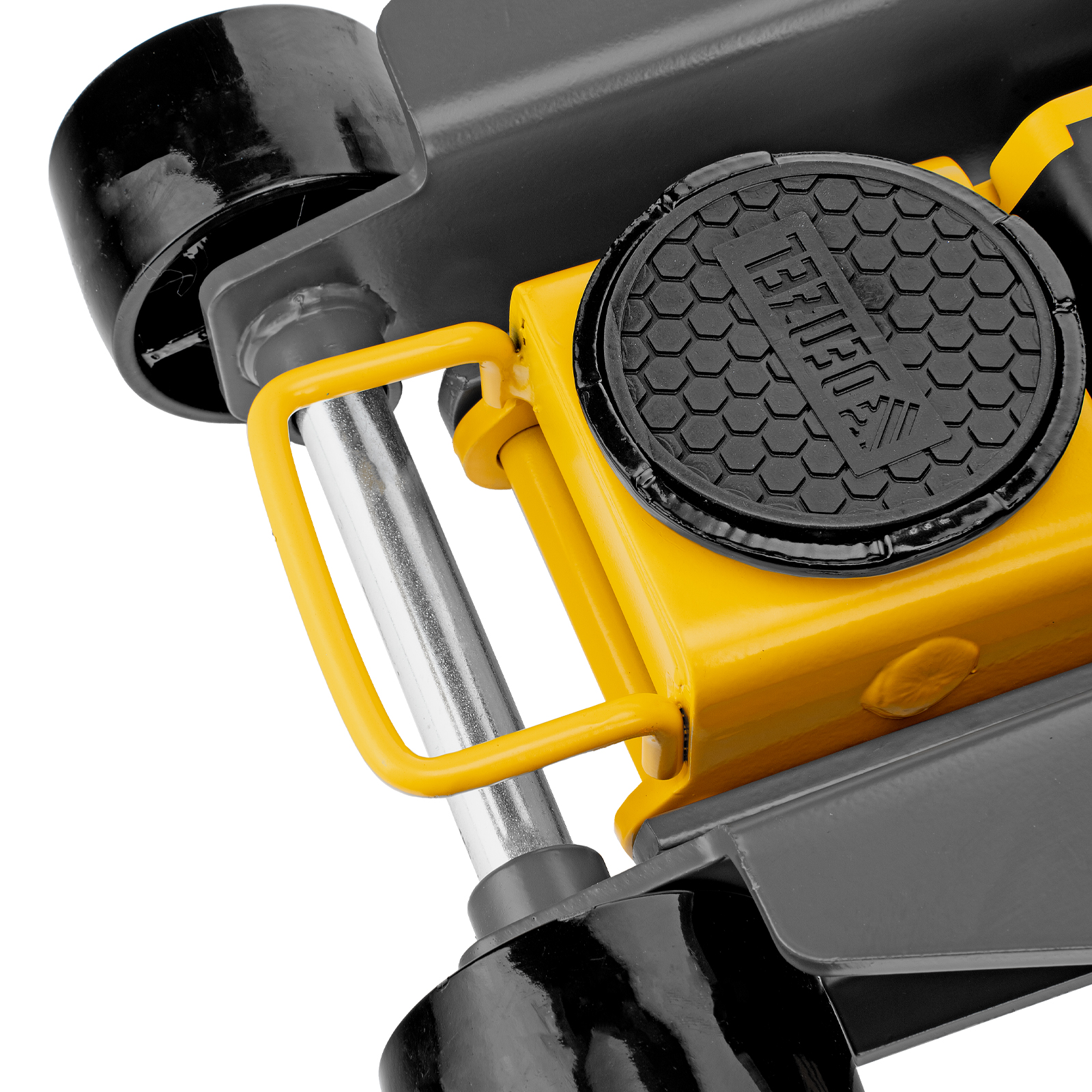 - Внимание к деталям — передние колеса домкрата имеют масленки для смазки подшипников, такое решение исключает возможность заклинивания механизма во время интенсивной работы.