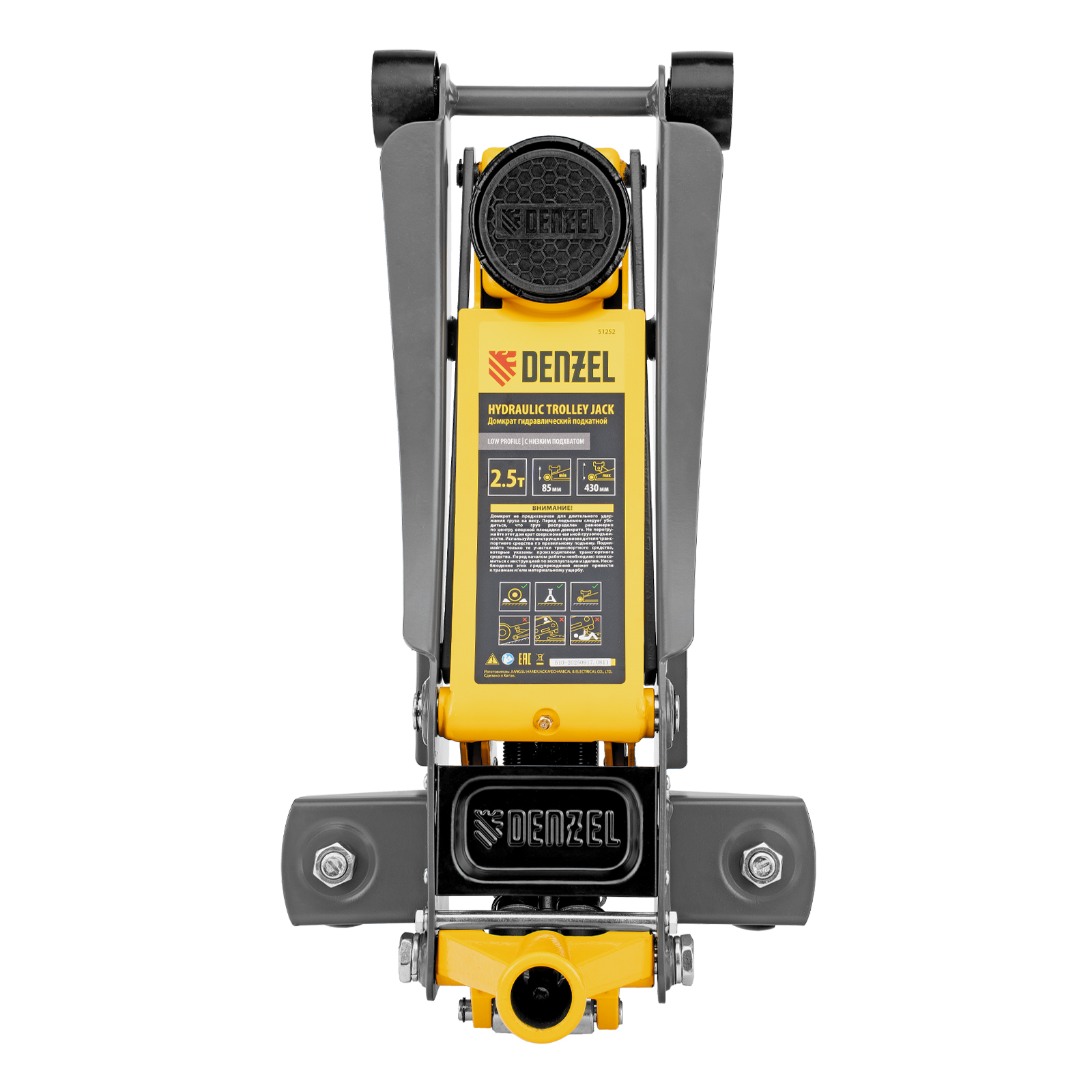 Профессиональный подкатной гидравлический домкрат Denzel 51252 с низким подхватом используется для быстрого подъема на высоту с 85 до 430 мм всех типов автомобилей массой до 2,5 т и с любым клиренсом, в том числе сверхнизким. В гидравлическом блоке предусмотрено 2 насоса (система быстрого подъема QUICK LIFT), благодаря чему для достижения предельной высоты достаточно 6 качков рукоятки. Домкрат подходит для применения на станциях профессионального техобслуживания и шиномонтажа, а также для личного использования.