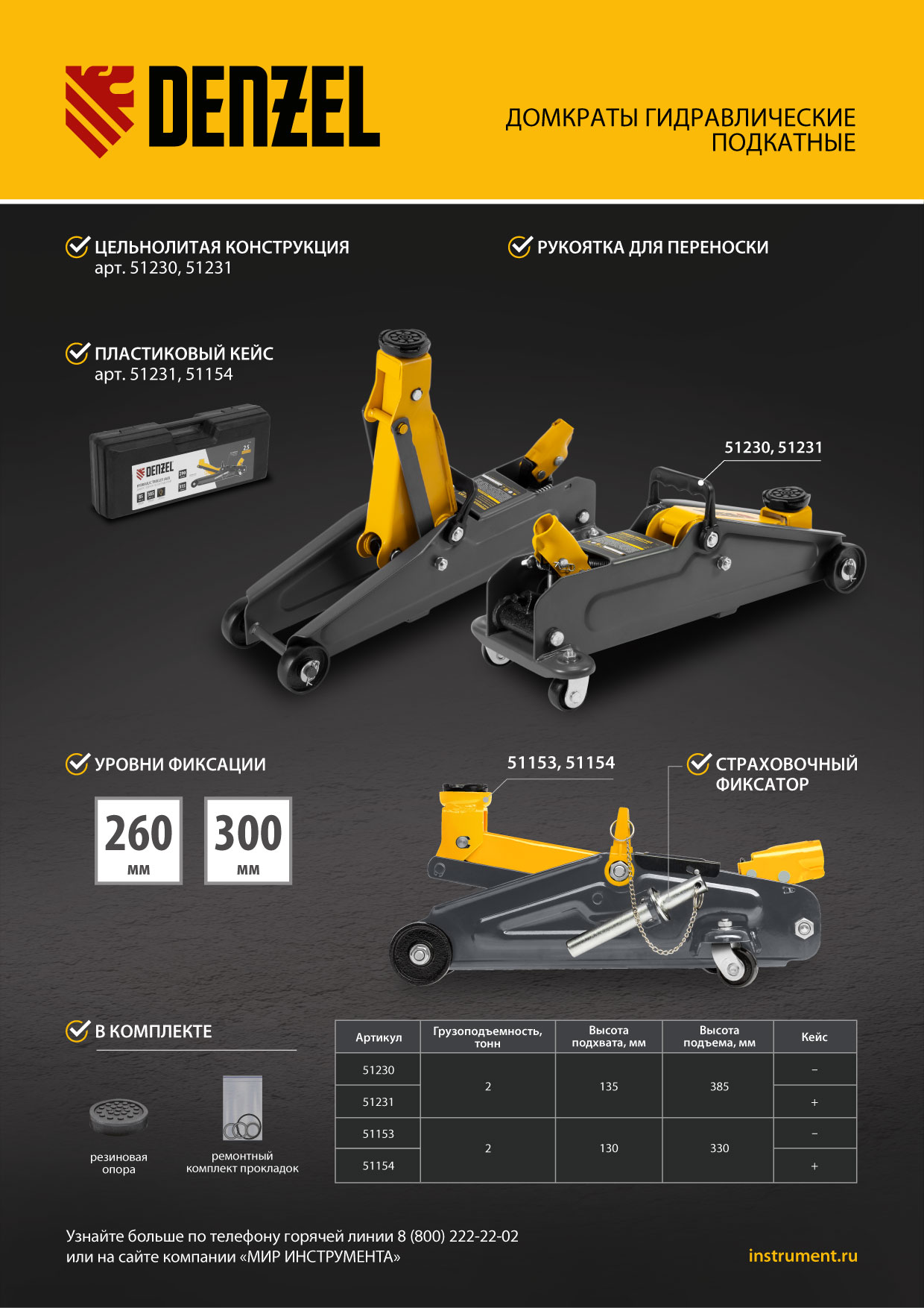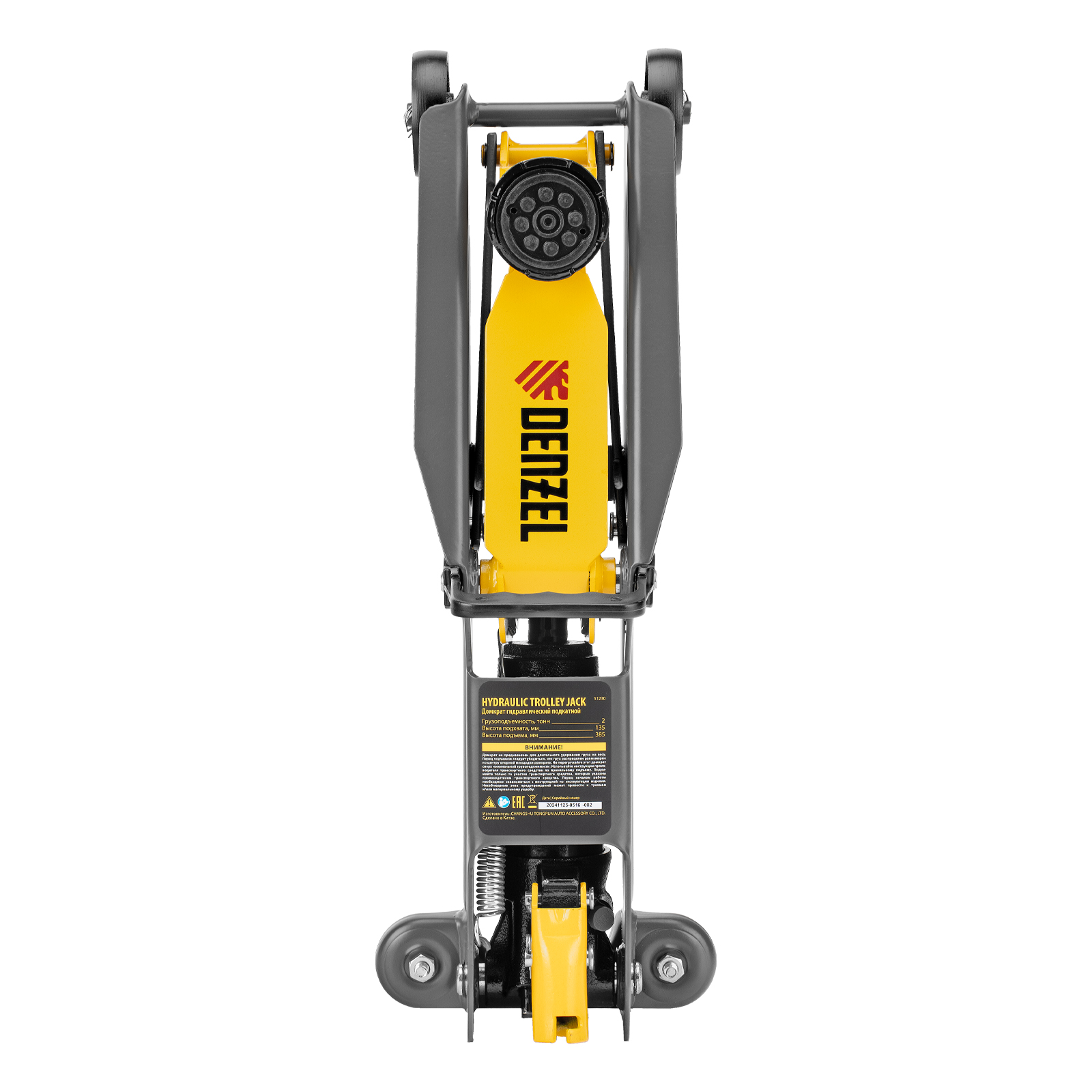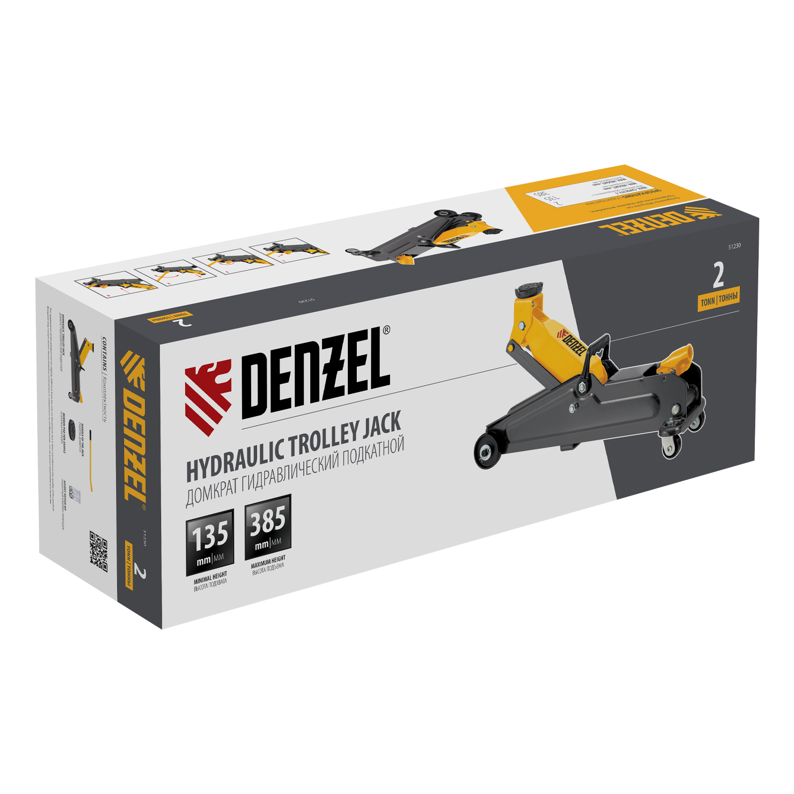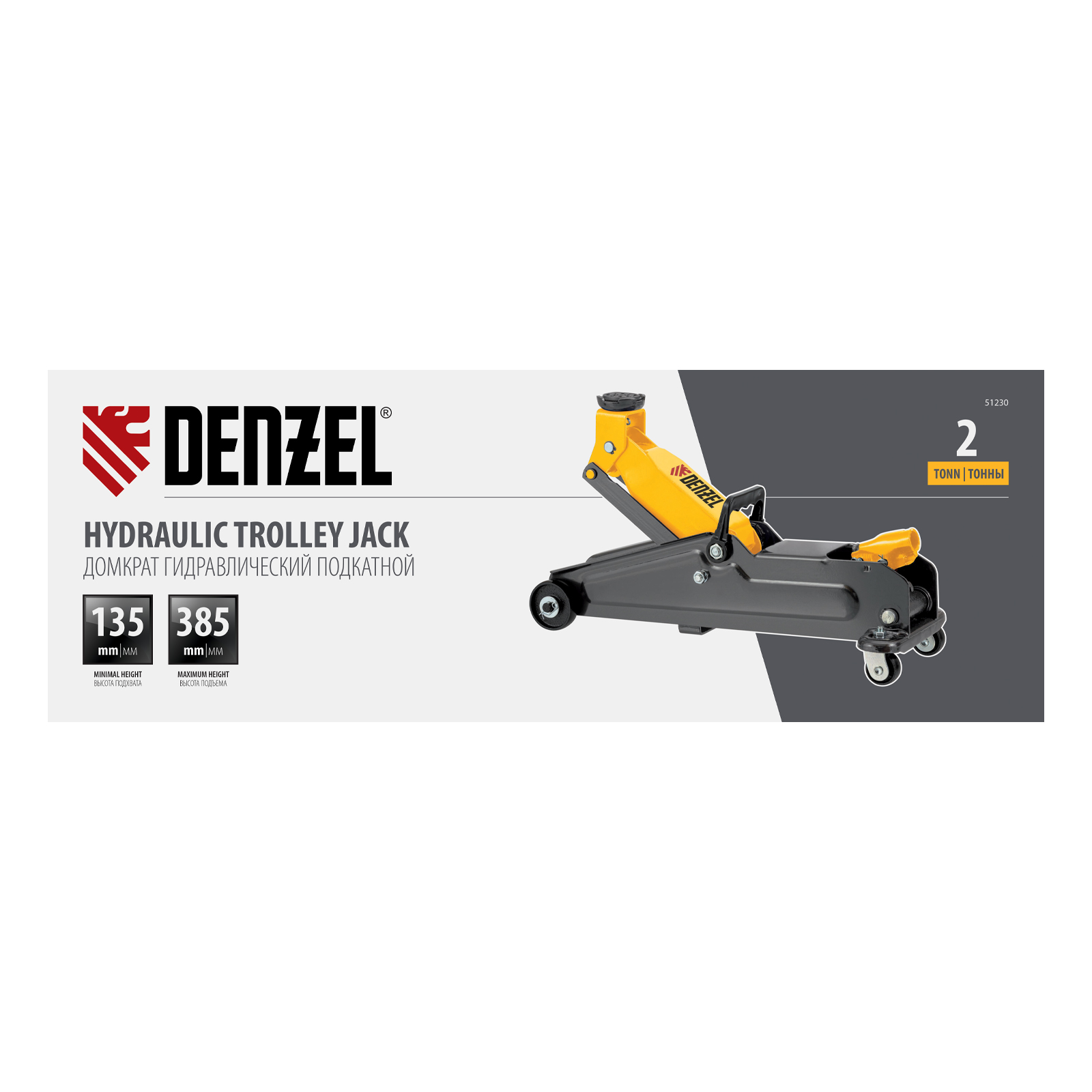 Гидравлический подкатной домкрат Denzel 51230 с высотой подхвата 135 мм предназначен для плавного подъема грузов массой до 2 т на высоту до 385 мм. Домкрат пригодится владельцам легковых автомобилей со стандартным клиренсом.