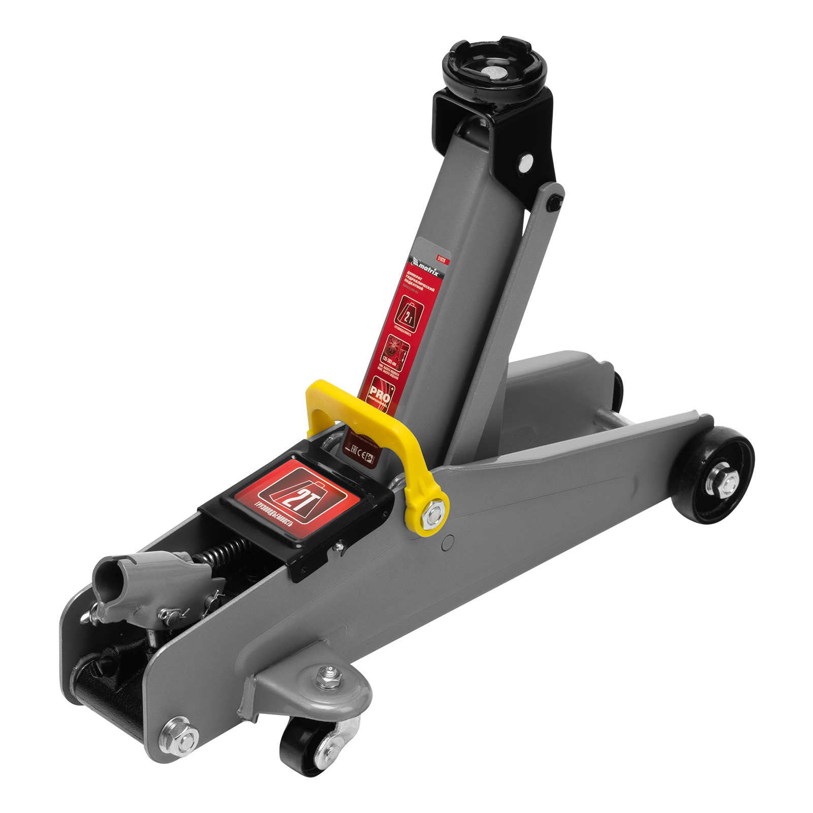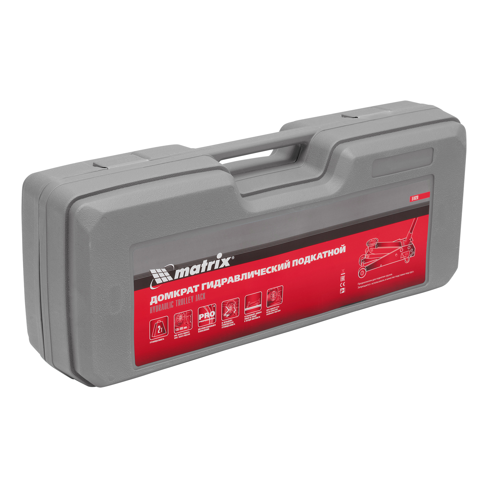 Подкатной гидравлический домкрат Matrix 51028 с высотой подхвата 135 мм, поставляющийся в пластиковом кейсе, — полупрофессиональное гаражное оборудование, способное поднимать груз массой до 2 т на высоту до 385 мм. Высота подхвата 135 мм позволяет использовать домкрат для автомашин со стандартным клиренсом. Домкрат будет полезен как в автомастерской, так и в частном гараже.