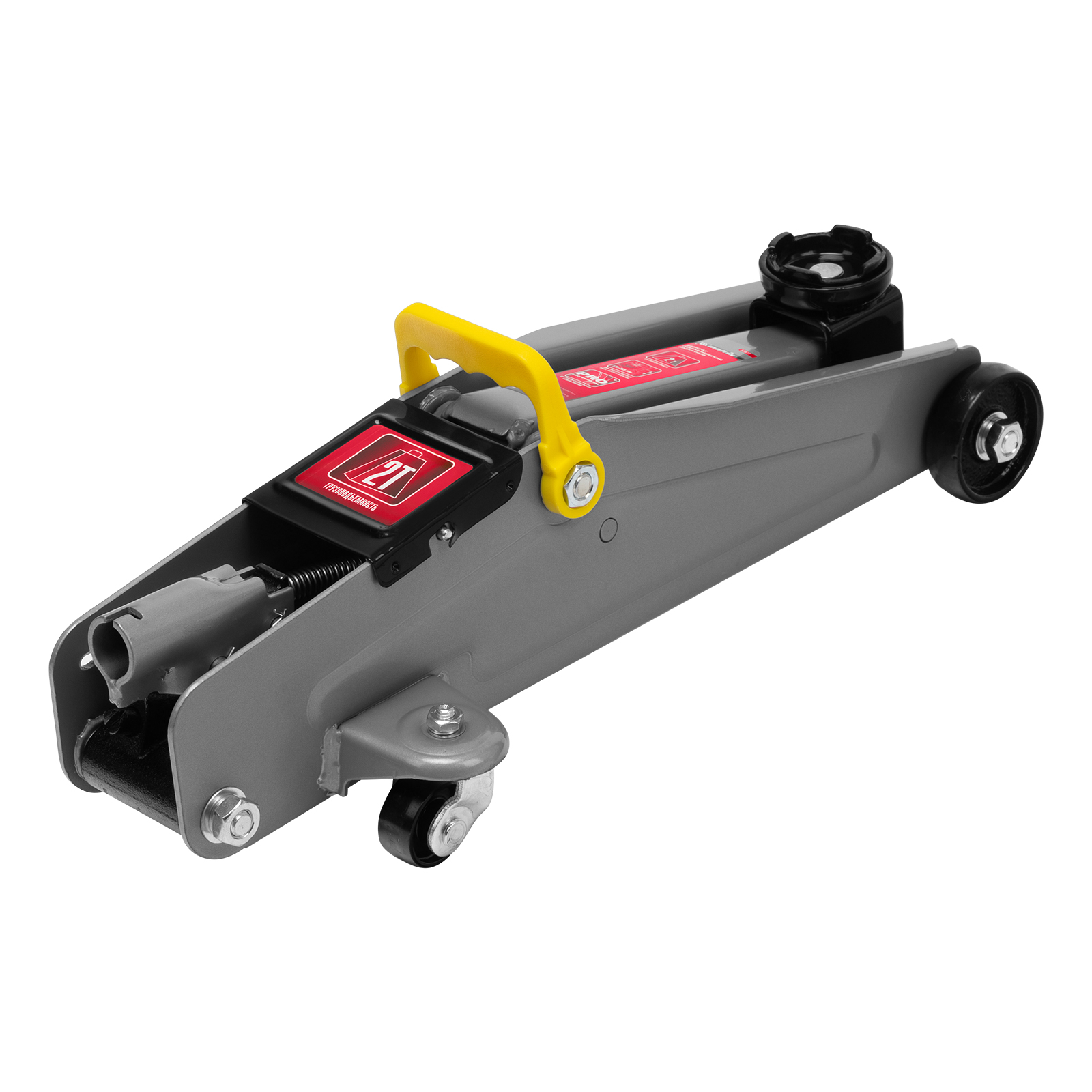 - Безопасная эксплуатация — предохранительный клапан препятствует подъему груза массой более 2 т, предотвращая поломку домкрата.