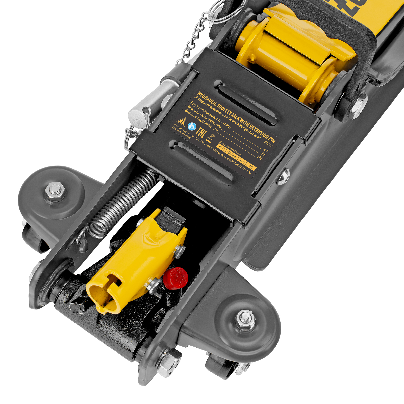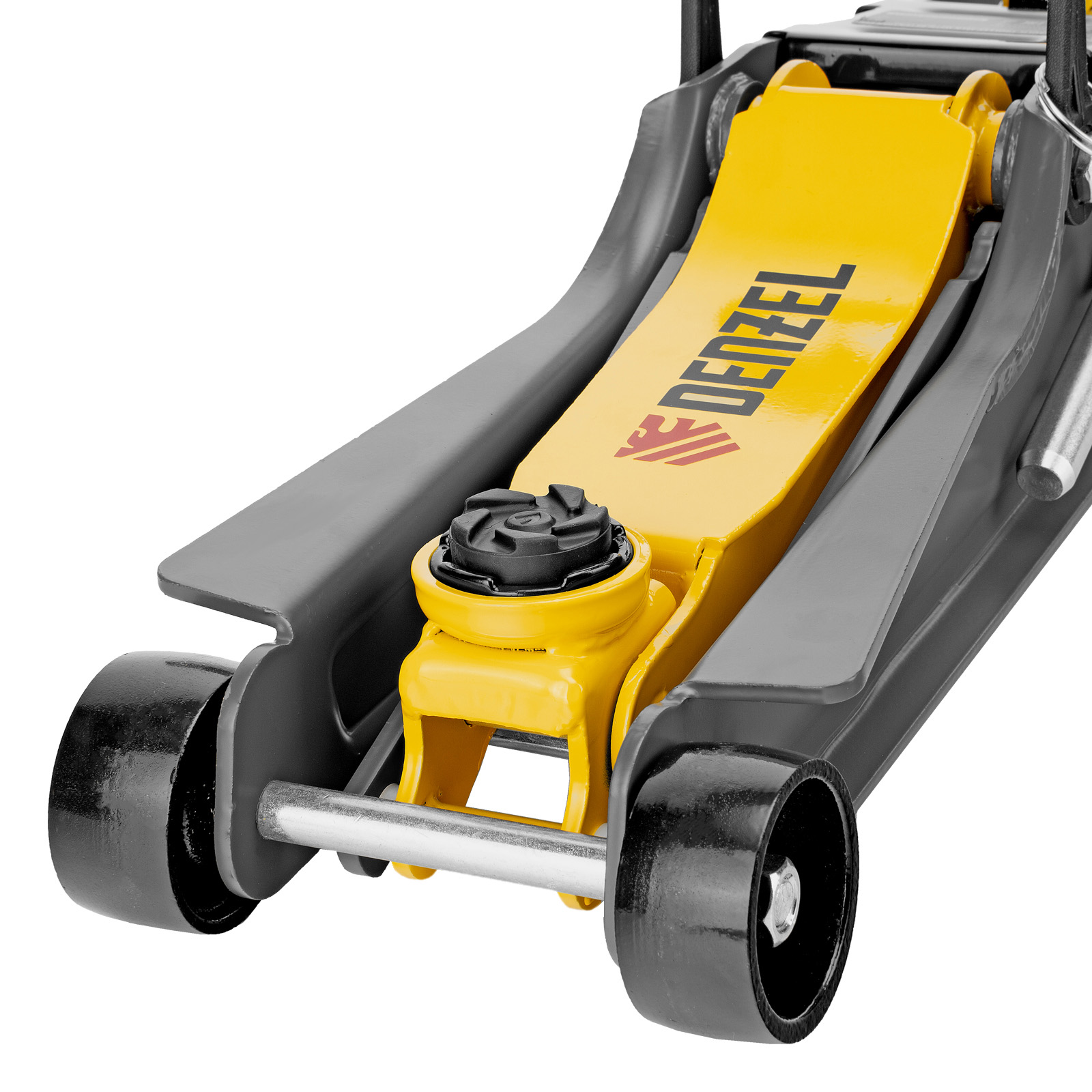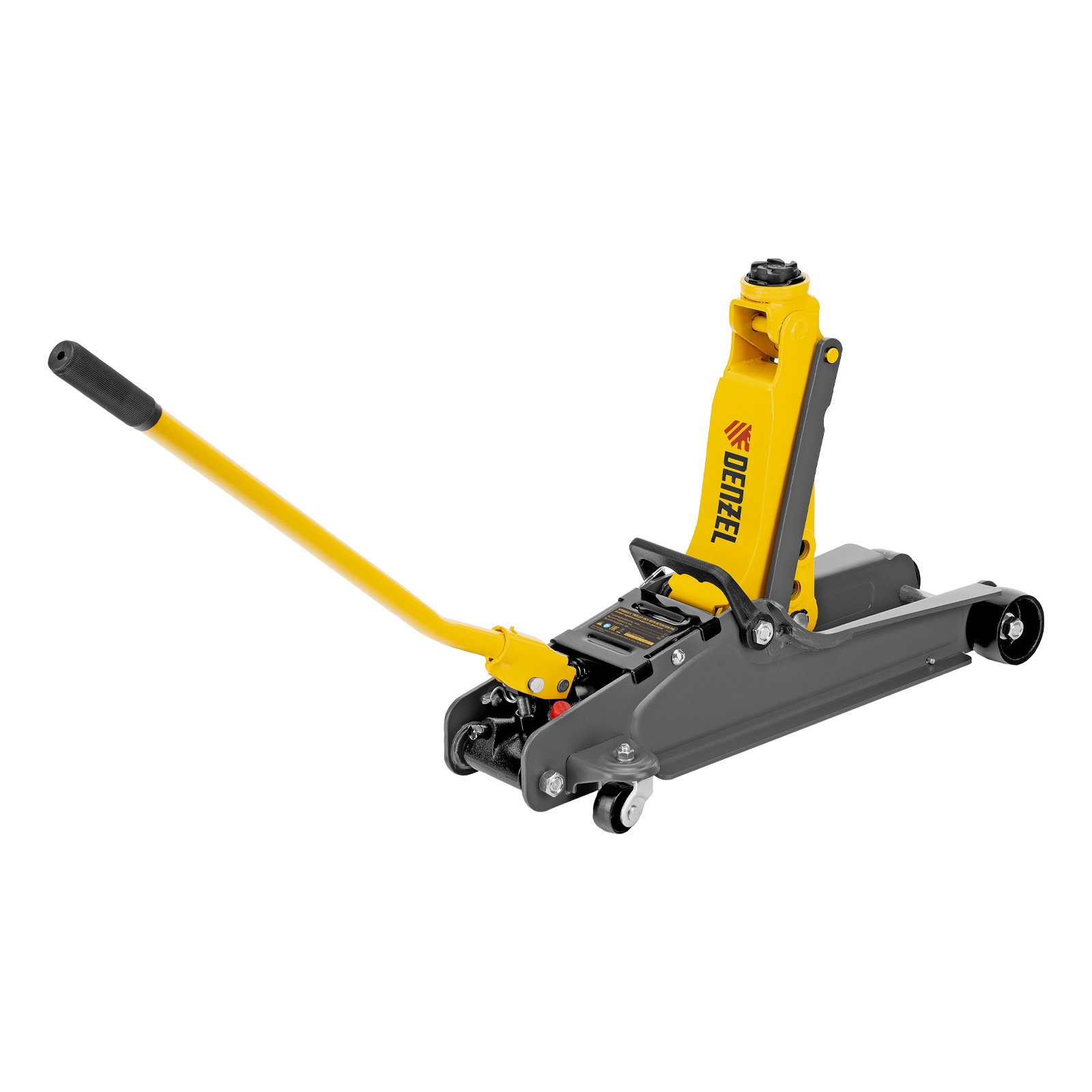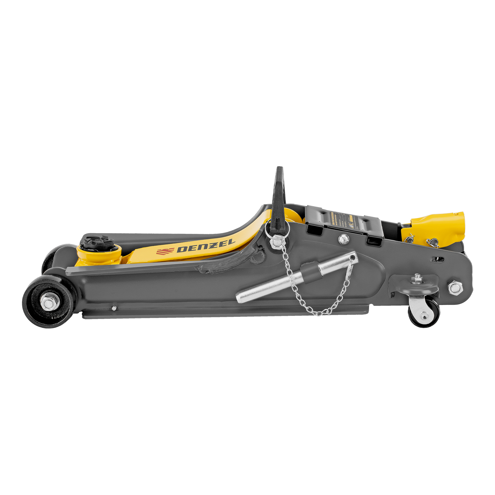 Гидравлический подкатной домкрат Denzel 51232 с фиксатором имеет высоту подхвата 85 мм и предназначен для плавного подъема грузов массой до 2,5 т на высоту до 385 мм. Страховочный штифт позволяет фиксировать подъемный рычаг на высоте 290 и 355 мм для безопасной работы. Домкрат пригодится владельцам легковых автомобилей с низким и стандартным клиренсом.