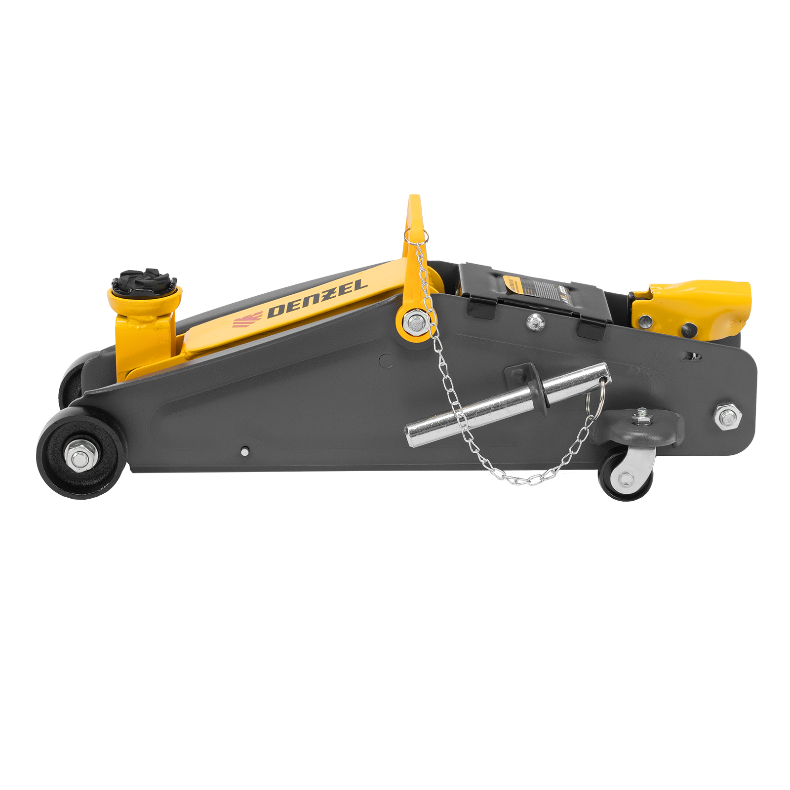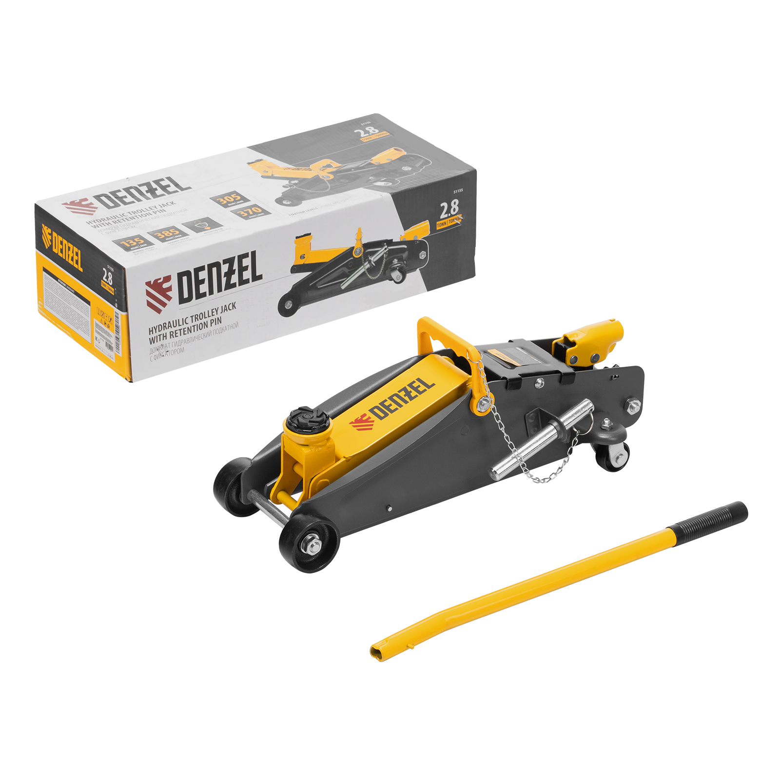 Гидравлический подкатной домкрат с фиксатором Denzel 51155 с высотой подхвата 135 мм предназначен для плавного подъема грузов массой до 2,8 т на высоту до 385 мм. Страховочный штифт позволяет фиксировать подъемный рычаг на высоте 305 и 370 мм для безопасной работы. Домкрат пригодится владельцам легковых автомобилей со стандартным клиренсом.