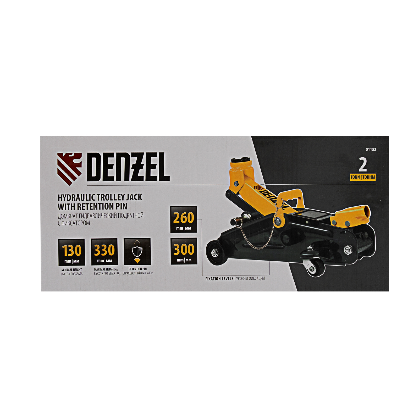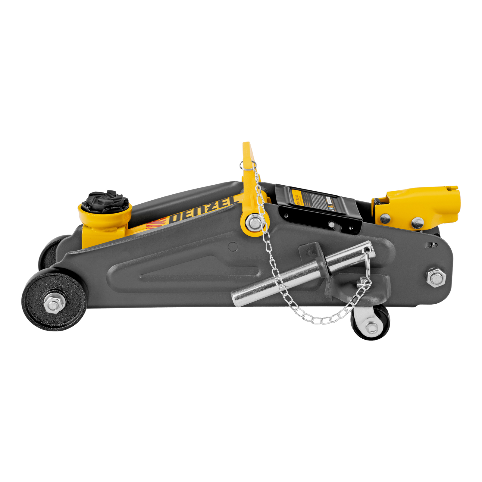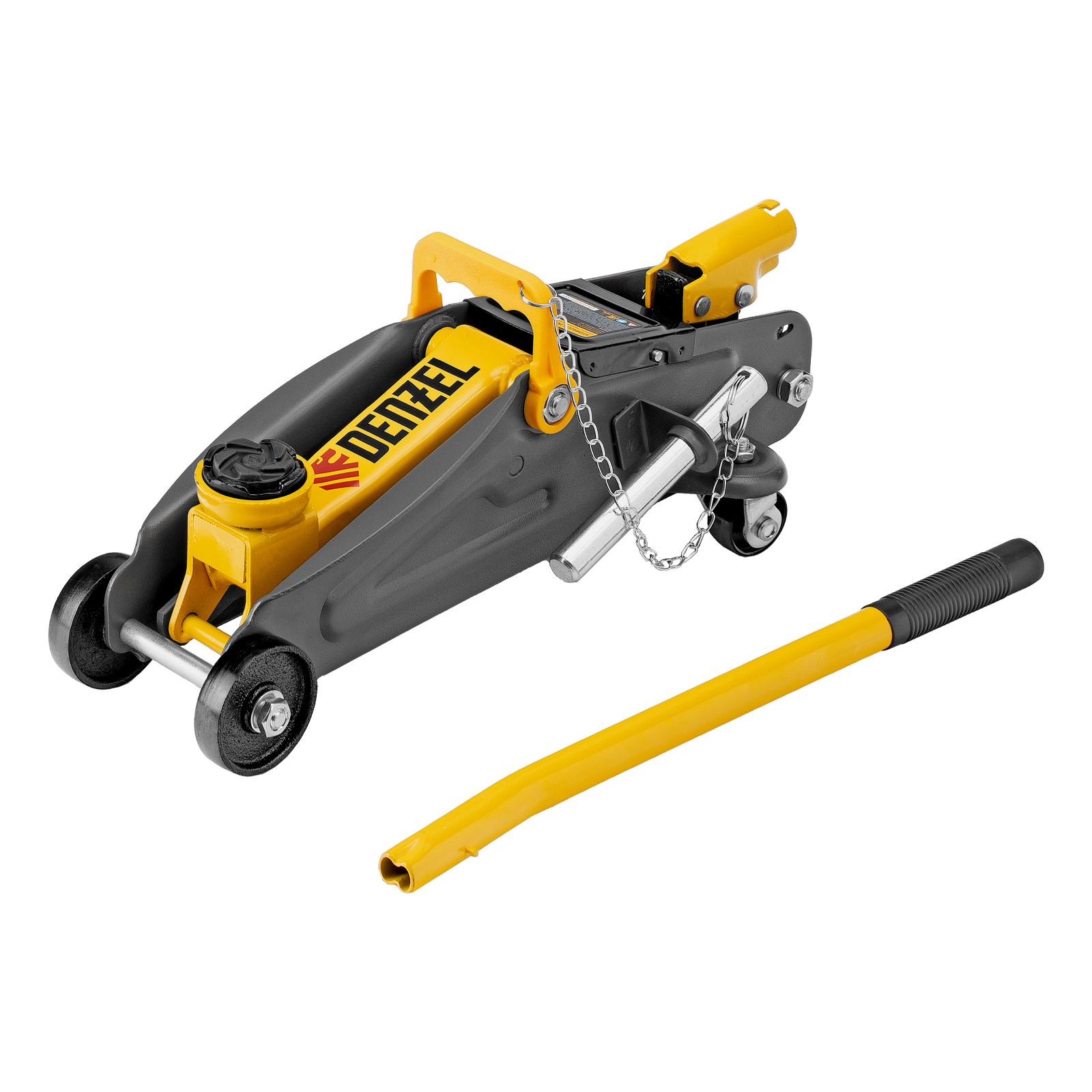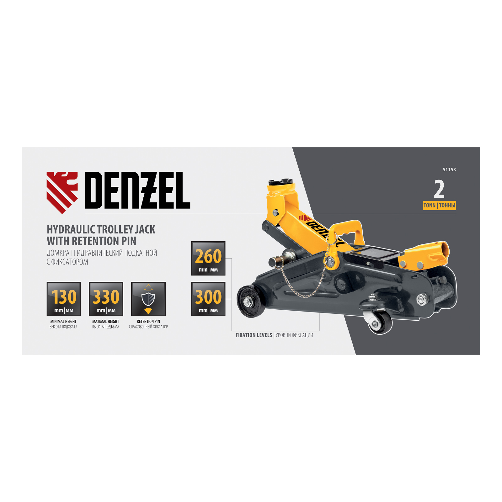 Гидравлический подкатной домкрат с фиксатором Denzel 51153, с высотой подхвата 130 мм, предназначен для плавного подъема грузов массой до 2 т на высоту до 330 мм. Страховочный штифт позволяет фиксировать подъемный рычаг на высоте 260 и 300 мм для безопасной работы. Домкрат пригодится владельцам легковых автомобилей со стандартным клиренсом.
