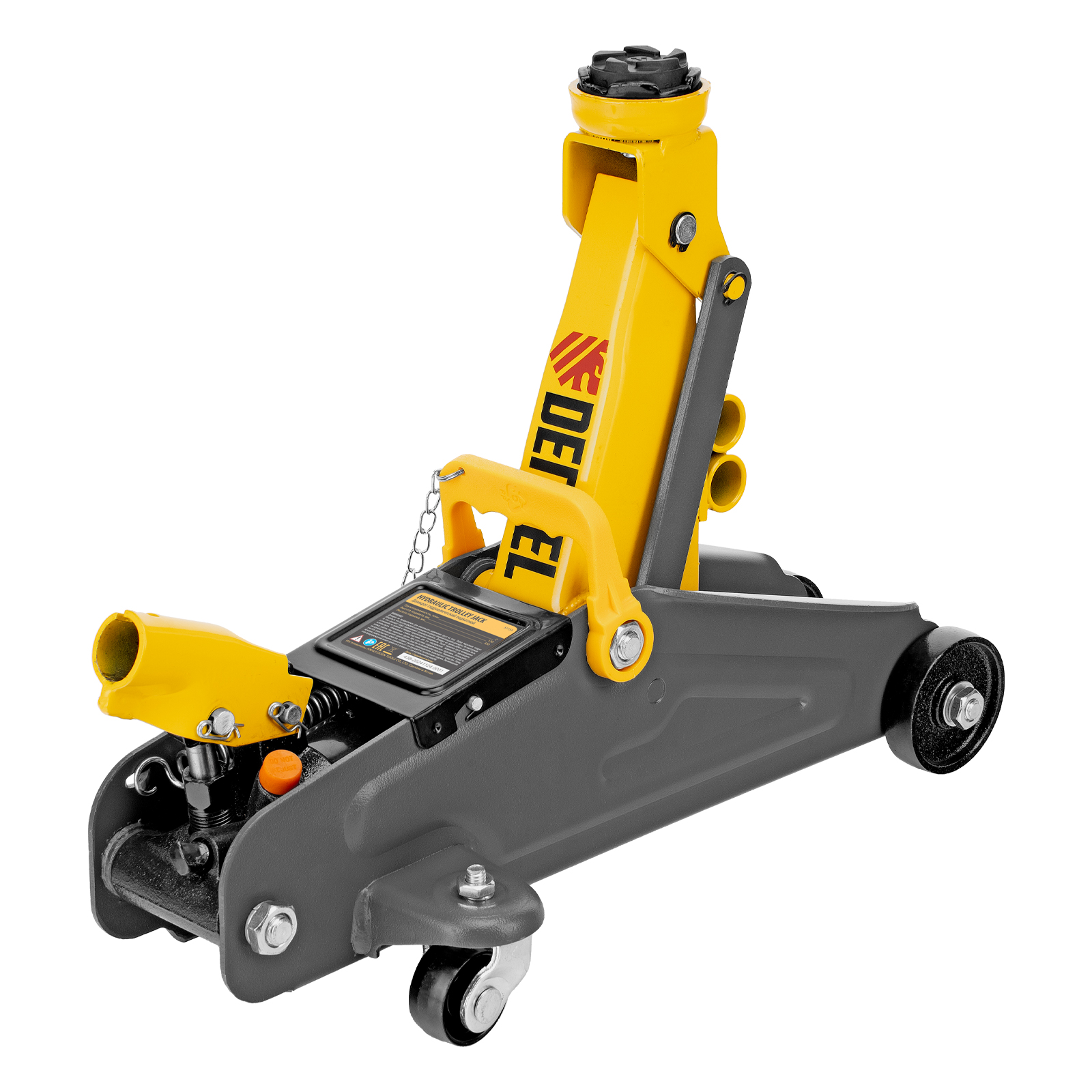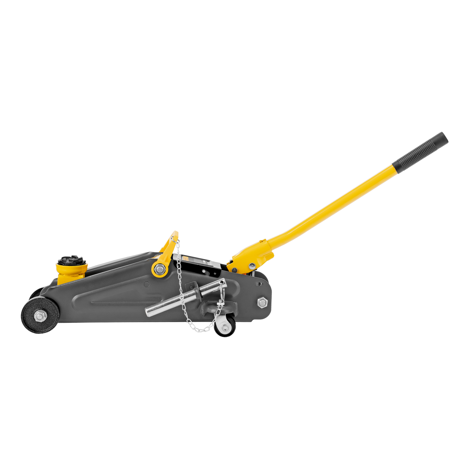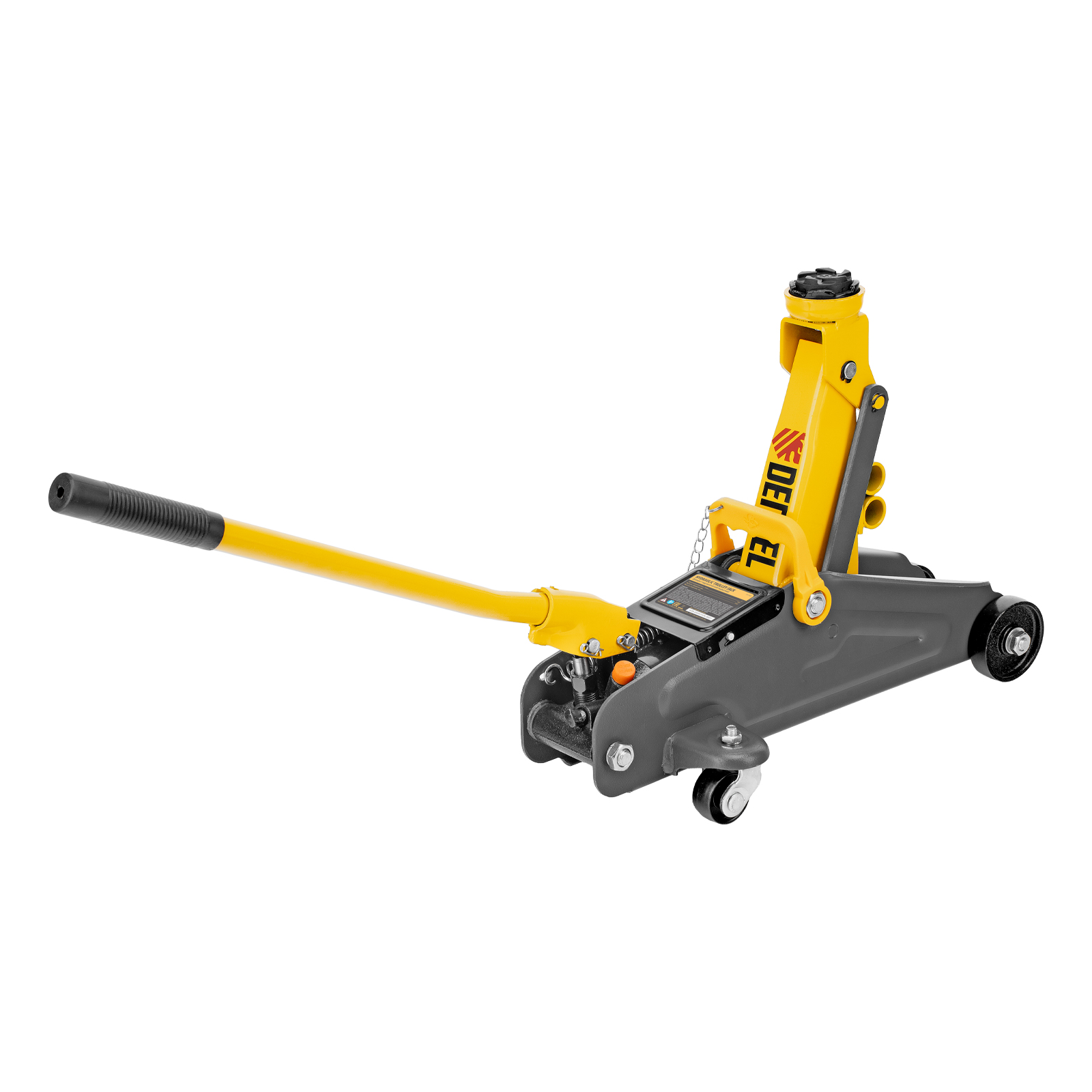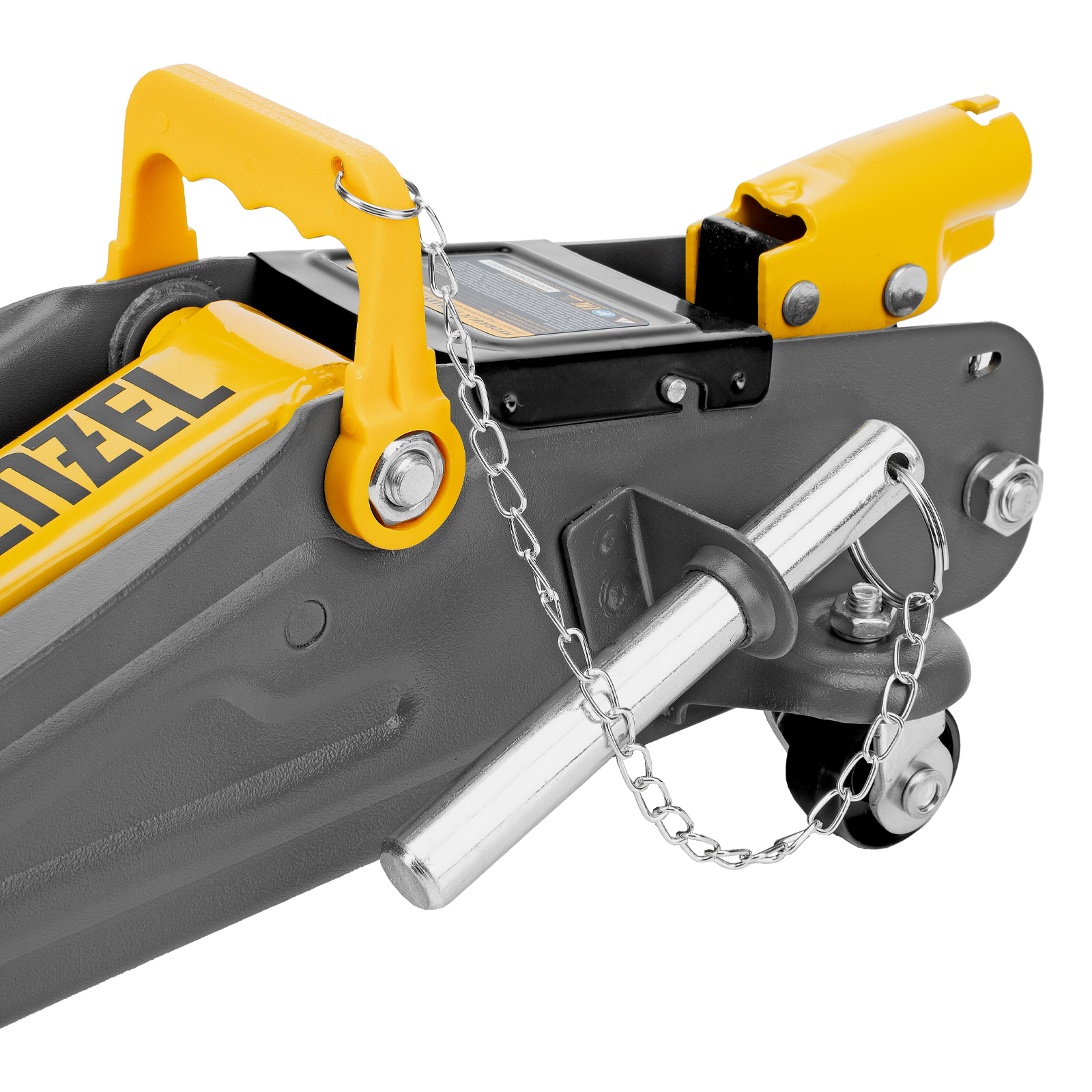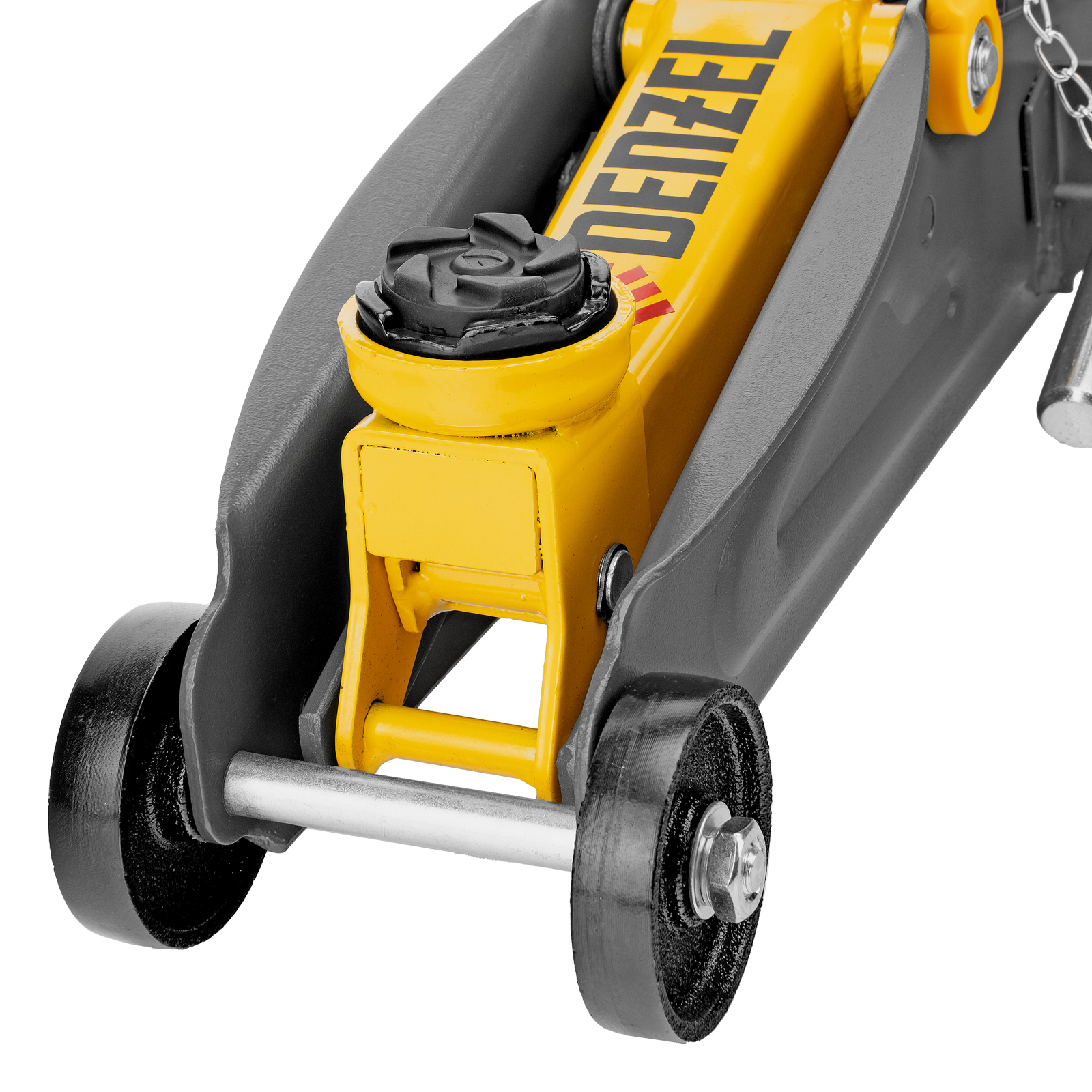 Гидравлический подкатной домкрат с фиксатором Denzel 51153, с высотой подхвата 130 мм, предназначен для плавного подъема грузов массой до 2 т на высоту до 330 мм. Страховочный штифт позволяет фиксировать подъемный рычаг на высоте 260 и 300 мм для безопасной работы. Домкрат пригодится владельцам легковых автомобилей со стандартным клиренсом.