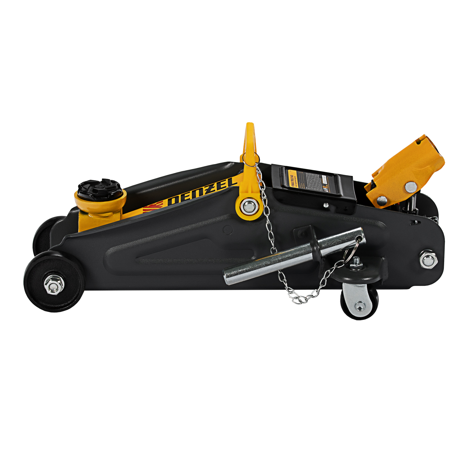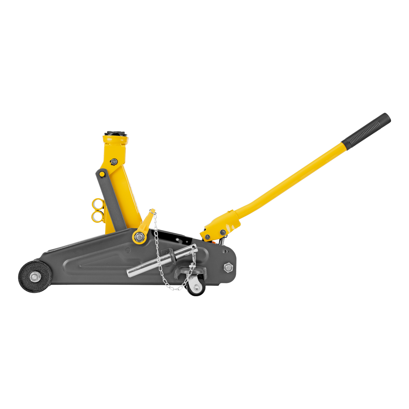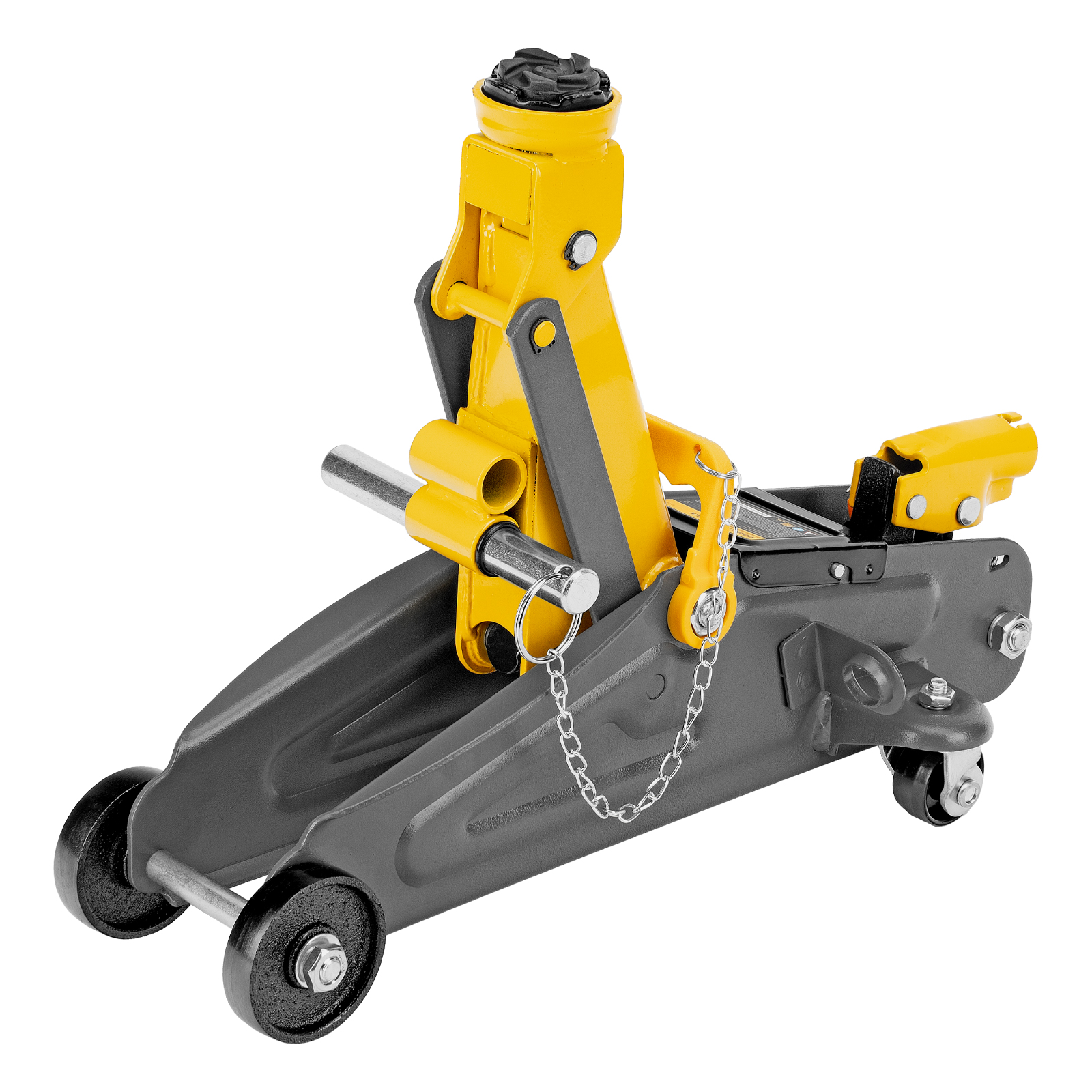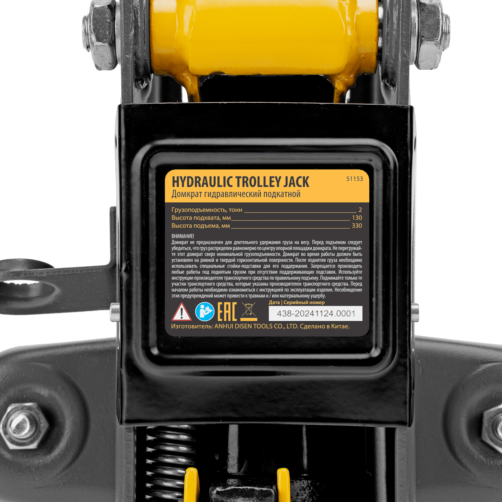 Гидравлический подкатной домкрат с фиксатором Denzel 51153, с высотой подхвата 130 мм, предназначен для плавного подъема грузов массой до 2 т на высоту до 330 мм. Страховочный штифт позволяет фиксировать подъемный рычаг на высоте 260 и 300 мм для безопасной работы. Домкрат пригодится владельцам легковых автомобилей со стандартным клиренсом.