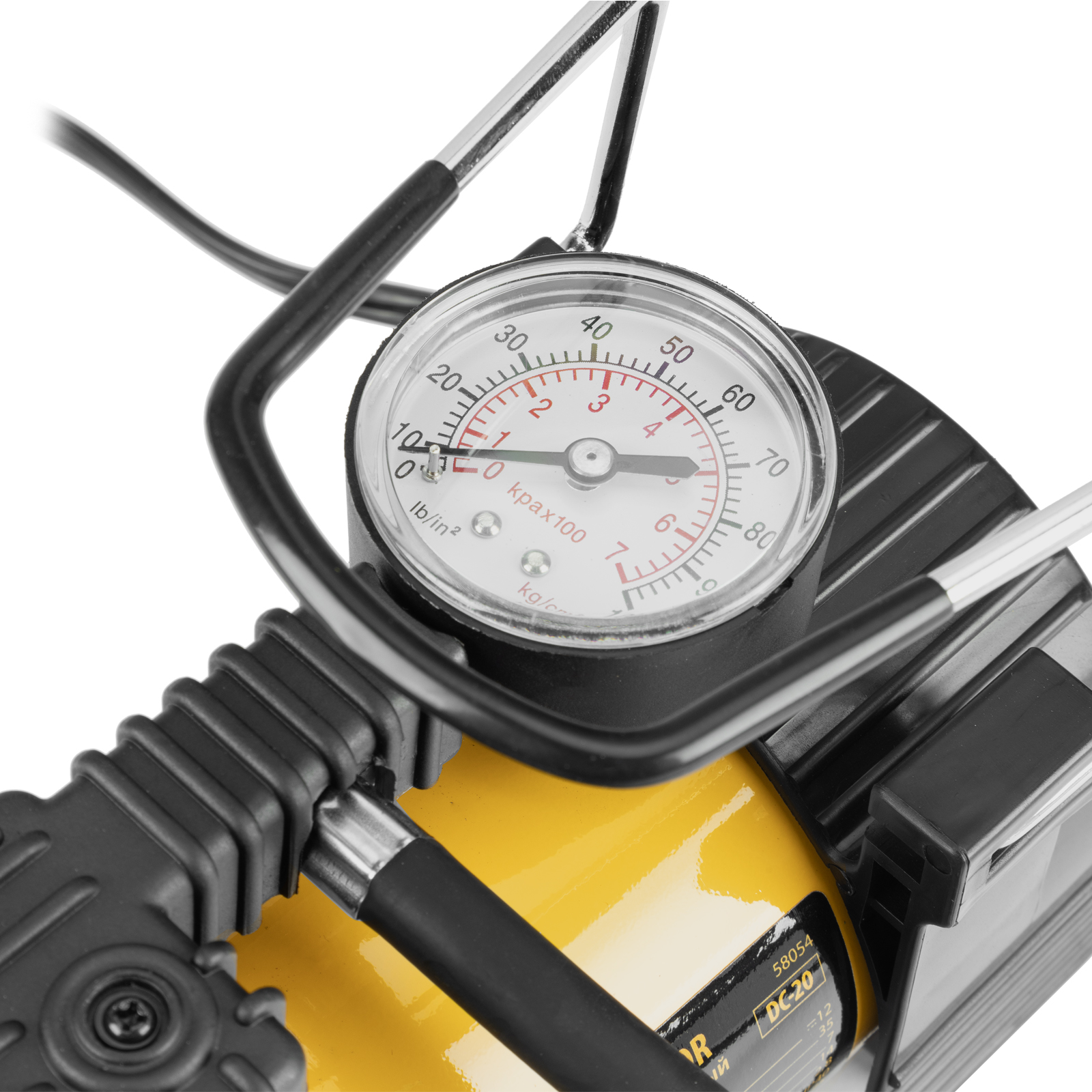 Автомобильный компрессор Denzel DC-20 58054 производительностью 35 л/мин работает от источника питания 12 В, создает давление 7 атмосфер и используется для быстрого накачивания шин автомобильных колес. Благодаря увеличенной мощности на подкачку колеса R16 потребуется не более 4-5 минут. Компрессор также подойдет для накачки мячей, надувных лодок, тюбингов и прочего снаряжения. Устройство не требует технического обслуживания и незаменимо в поездке или во время отдыха на природе.