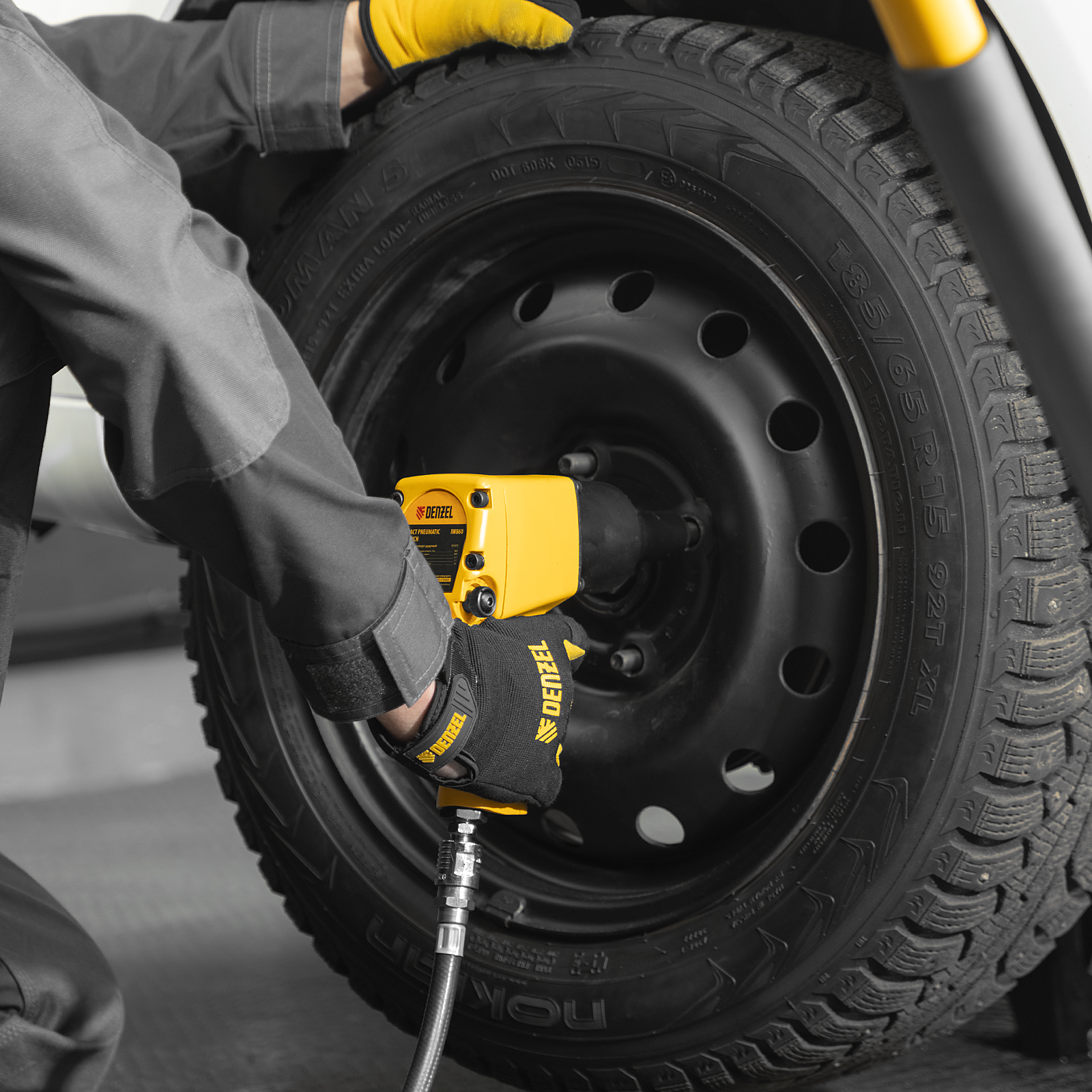 - Простая подготовка к работе — гайковерт подключается к компрессору при помощи быстроразъемного соединения.