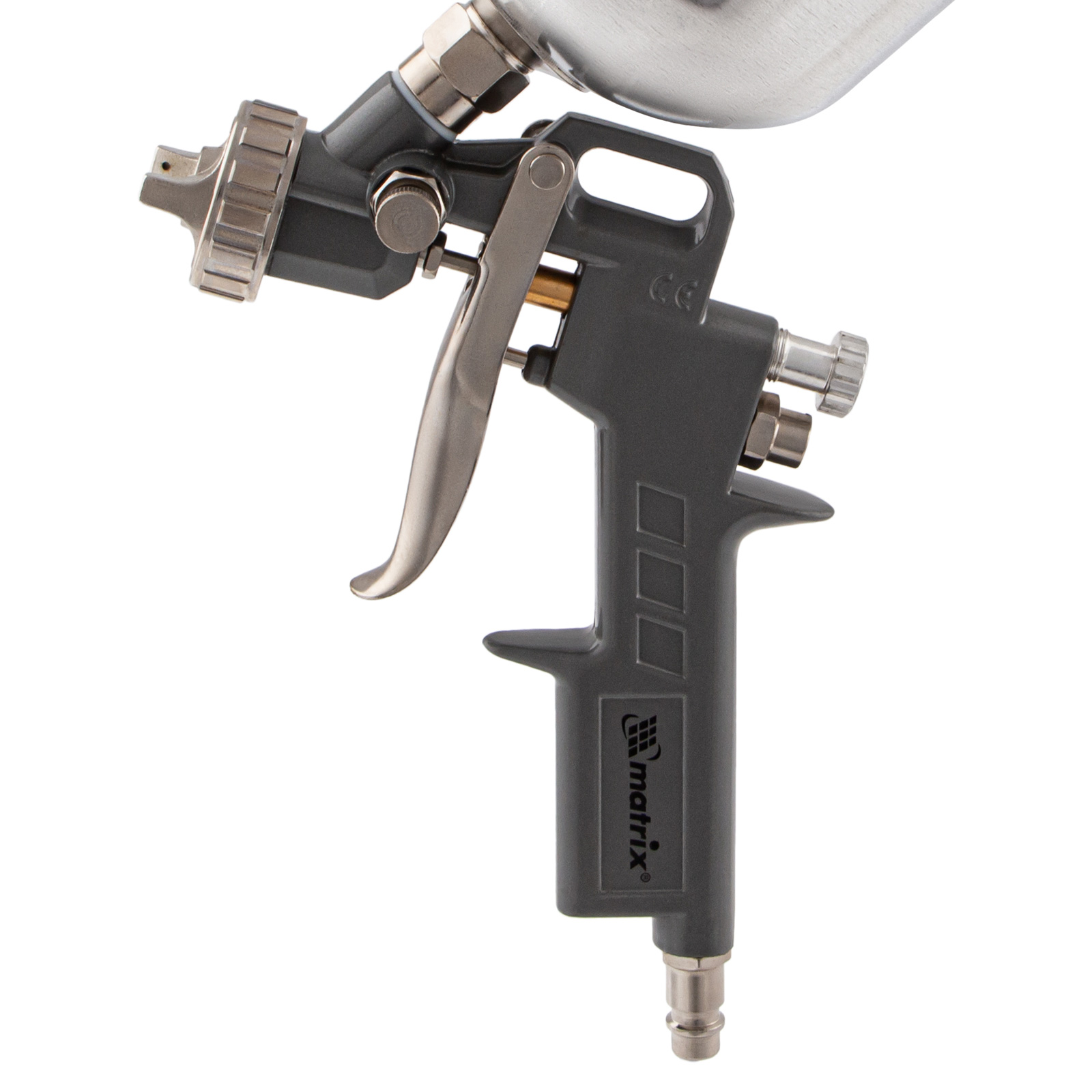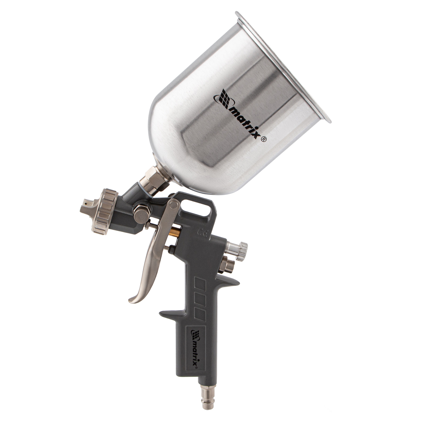 Пневматический краскораспылитель Matrix 57315 с верхним бачком объемом 1,0 л и соплами диаметром 1,2, 1,5 и 1,8 мм используется для окрашивания поверхностей и нанесения защитных составов. Он может работать с различными составами, такими как шпаклевка, лак и краска, т. к. в комплекте идет набор сменных сопел различного диаметра. Краскораспылитель пригодится в автосервисе или на стройке, а также на мебельном производстве для обработки дерева лаком.