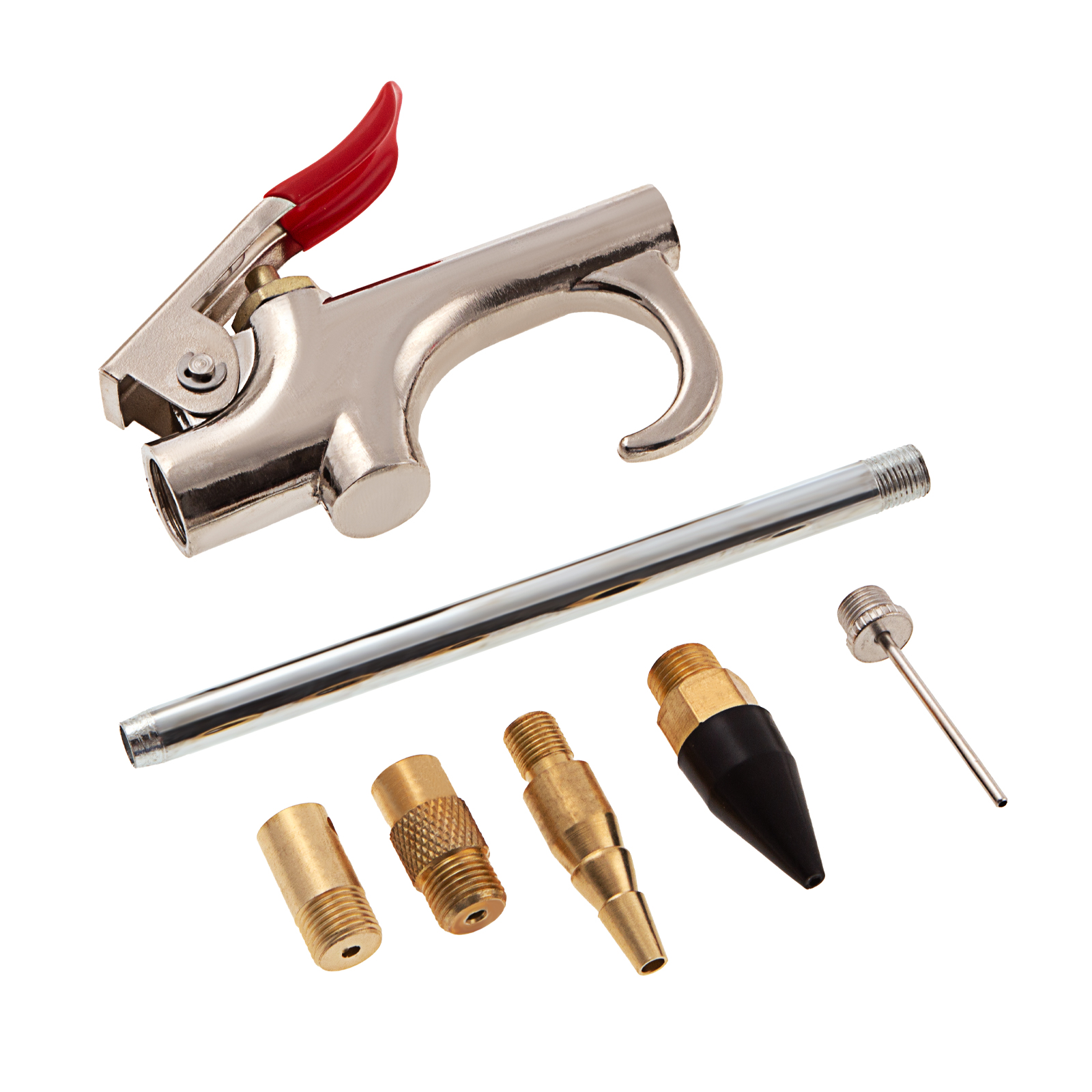 Пневматический продувочный пистолет MTX 57336 с комплектом из 6 насадок предназначен для продувки сжатым воздухом отверстий, пазов, шлангов и поверхностей. Пригодится в быту, на строительной площадке, в автосервисе и частной мастерской. Стандартный переходник обеспечивает работу с производительностью до 400 л/мин на максимальном давлении 6 бар. Инструмент отличается высокой пожарной безопасностью, поэтому его можно использовать в помещениях с высокой влажностью.