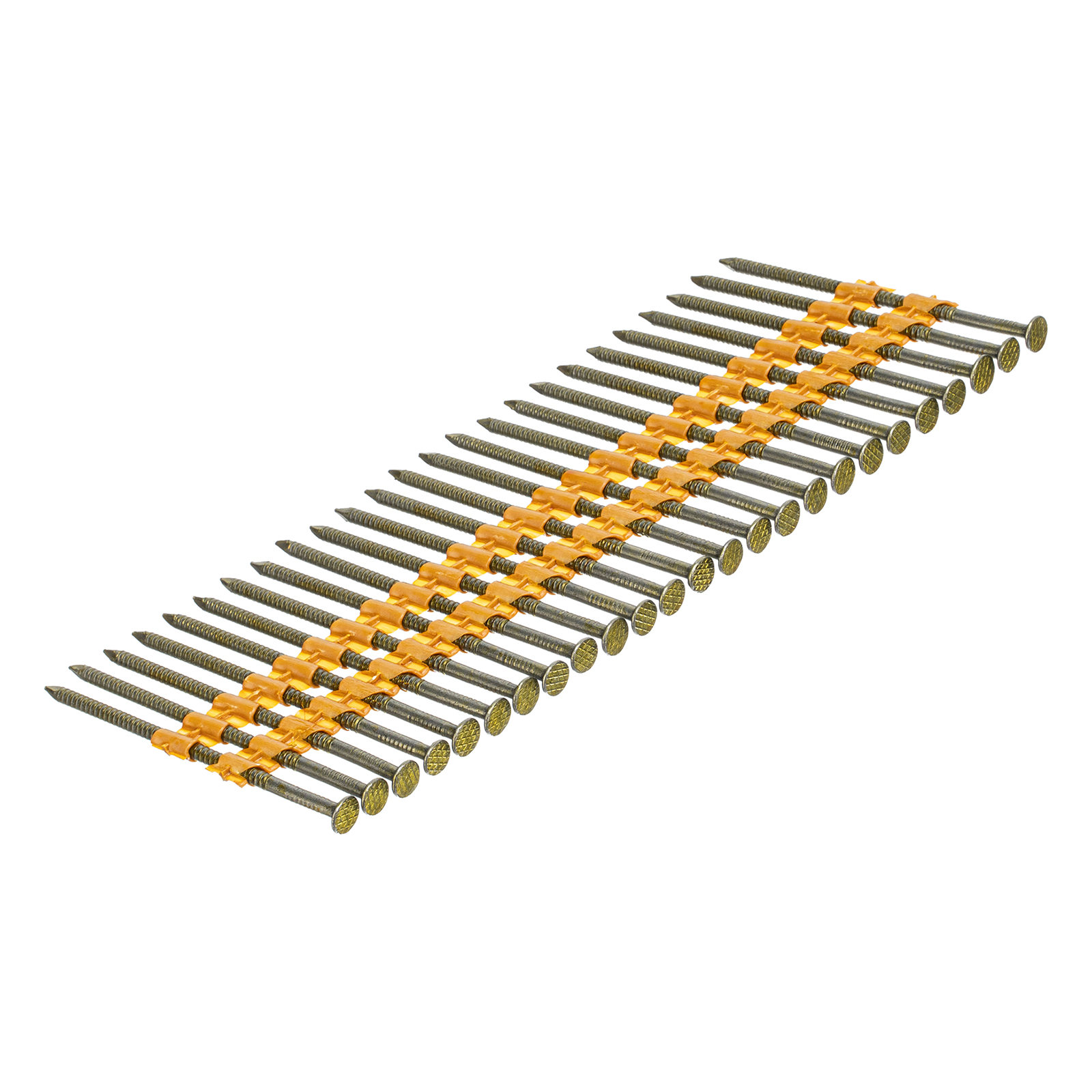 Гвозди Denzel 57697 типа SN21, длиной 75 мм и диаметром 3,05 мм, с крашеной поверхностью, 2000 шт. в упаковке, — расходники для пневматического нейлера. Используются для скрепления различных материалов, будут полезны во время сборочных и отделочных работ.