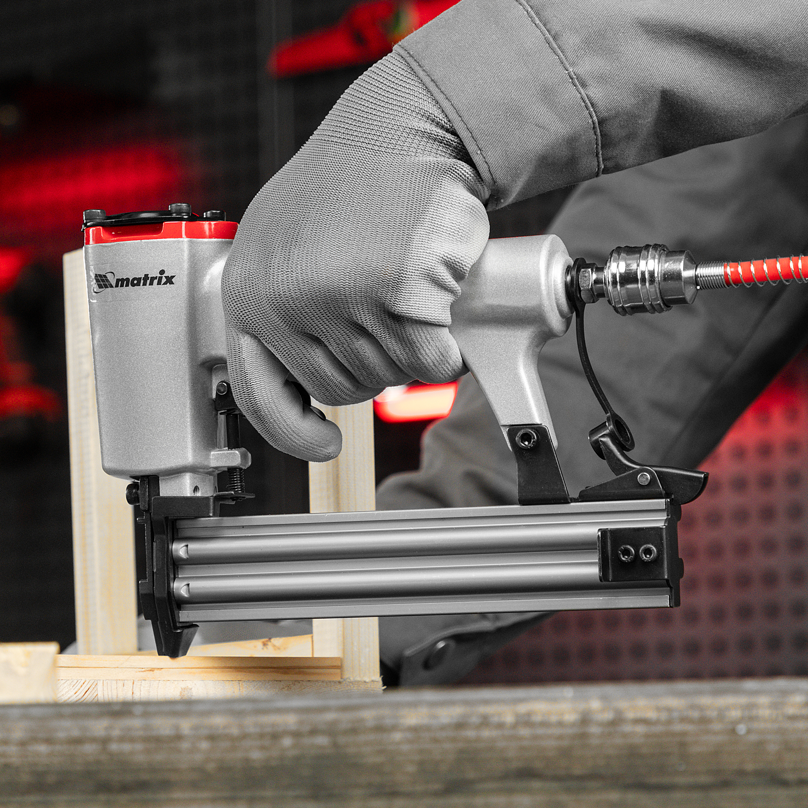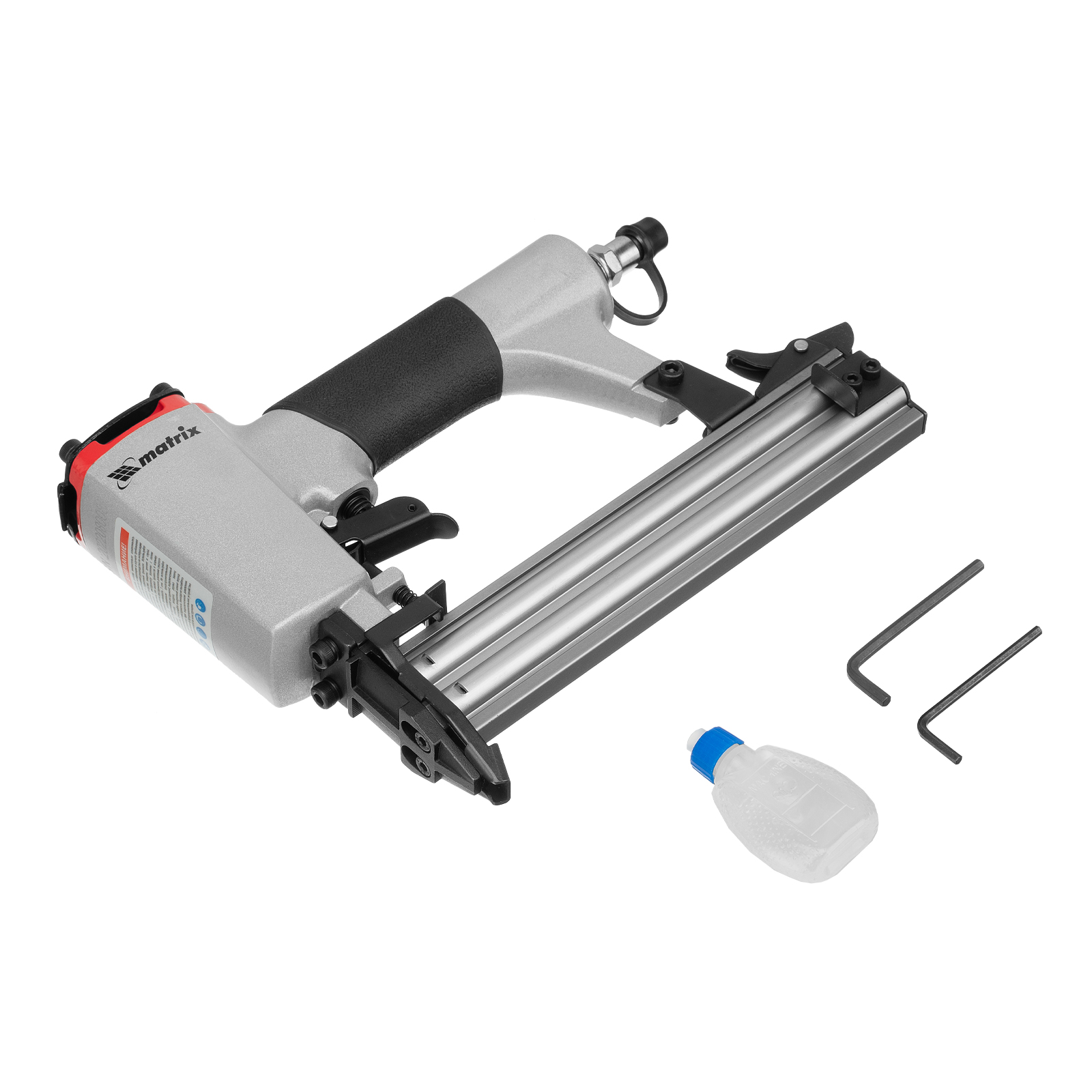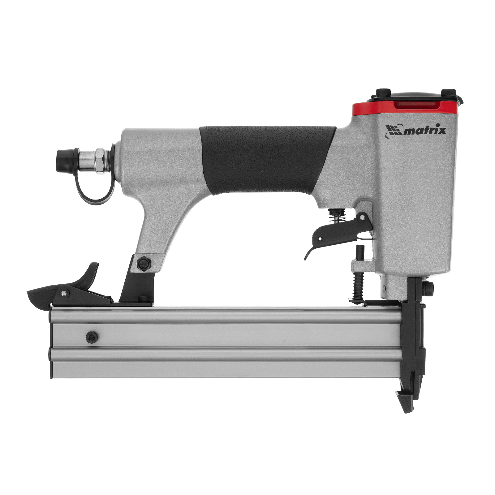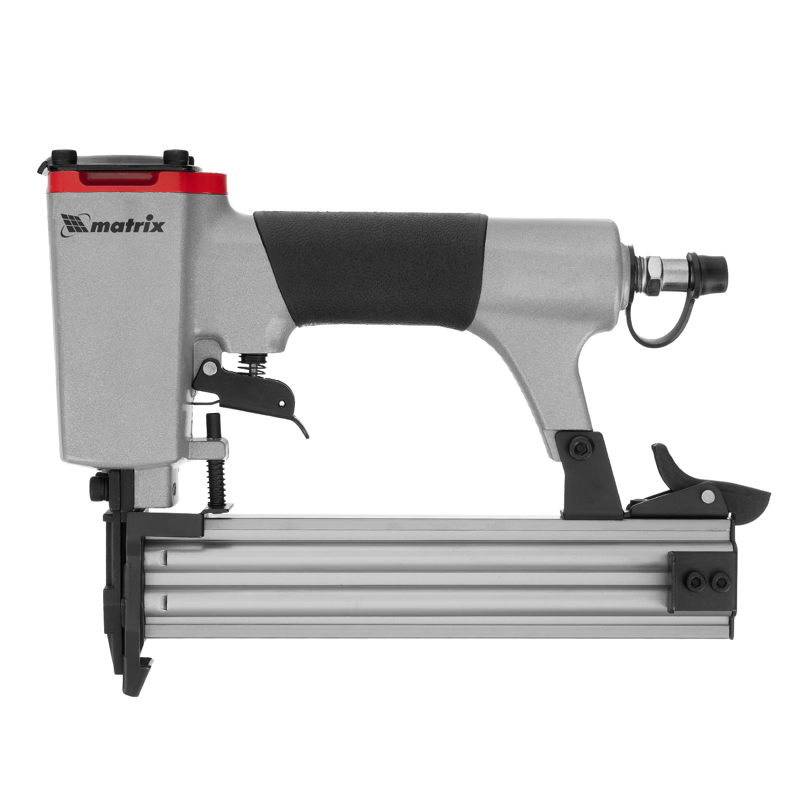 Пневматический нейлер Matrix 57405 предназначен для гвоздей 18GA длиной от 10 до 32 мм. Применяется во время строительства и ремонта, кровельных работ и производства мебели. С помощью нейлера можно закрепить паркетную доску, фанеру, ДВП, шифер, гипсокартон, ткань и бумагу.