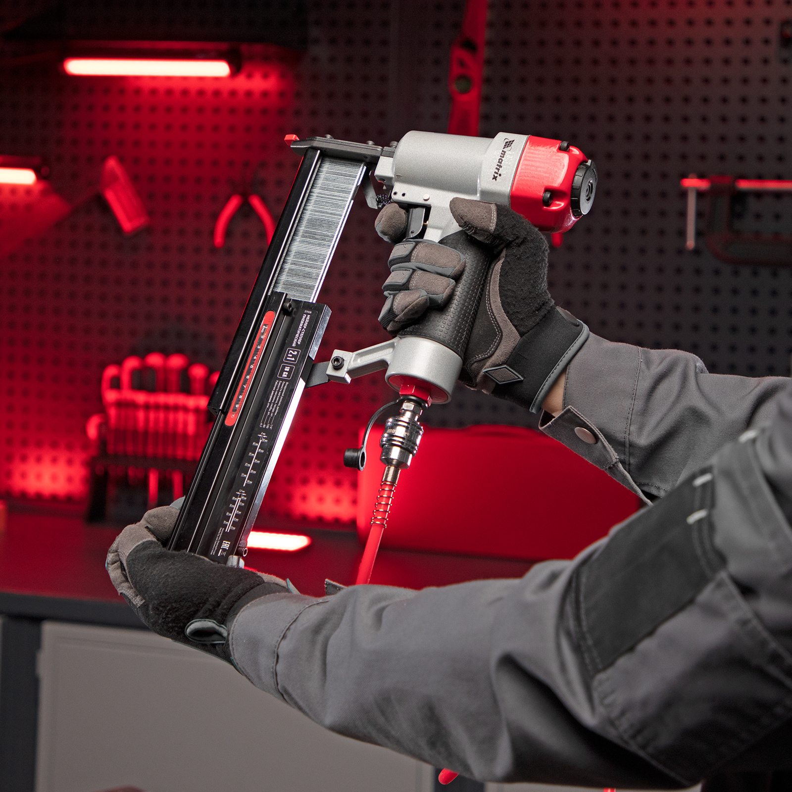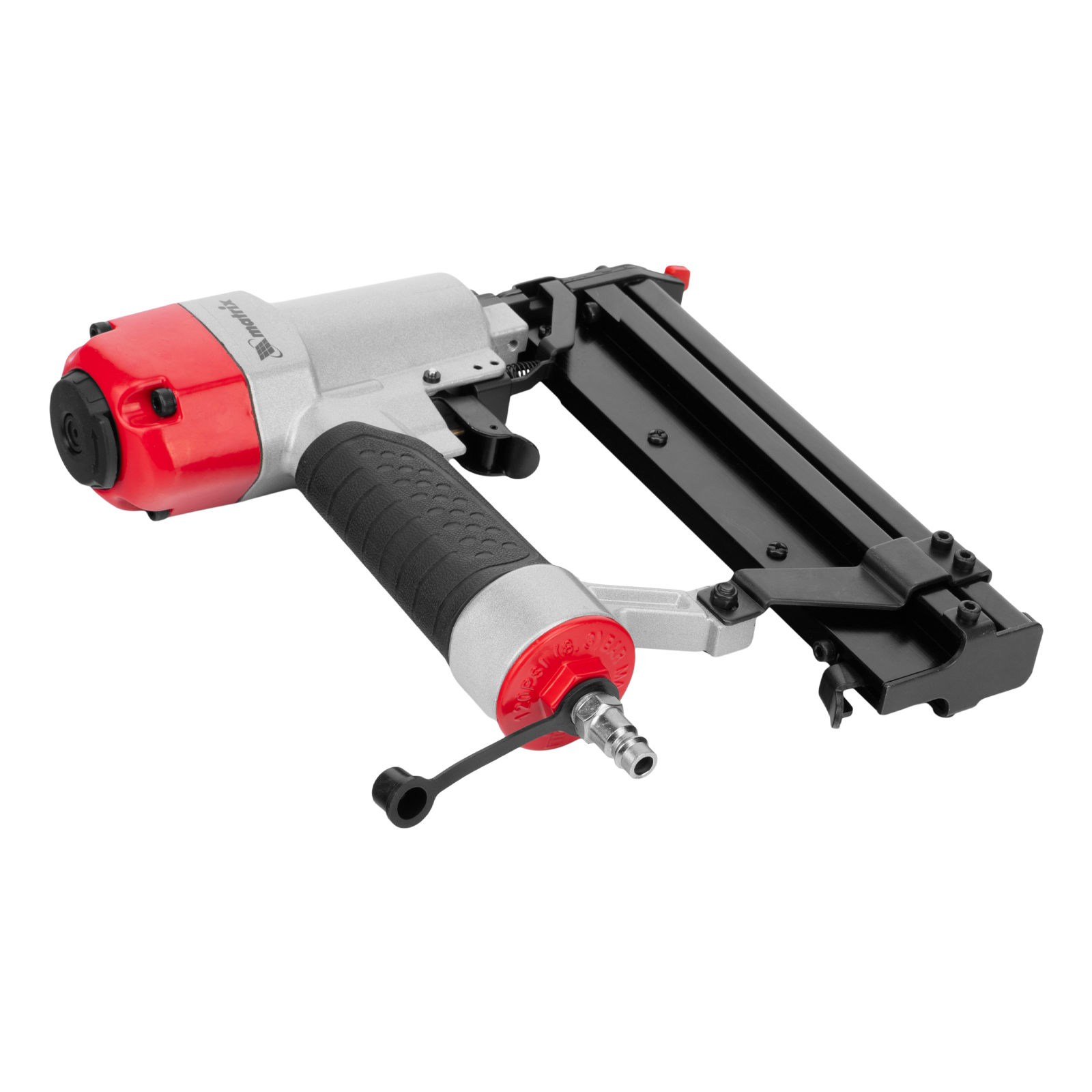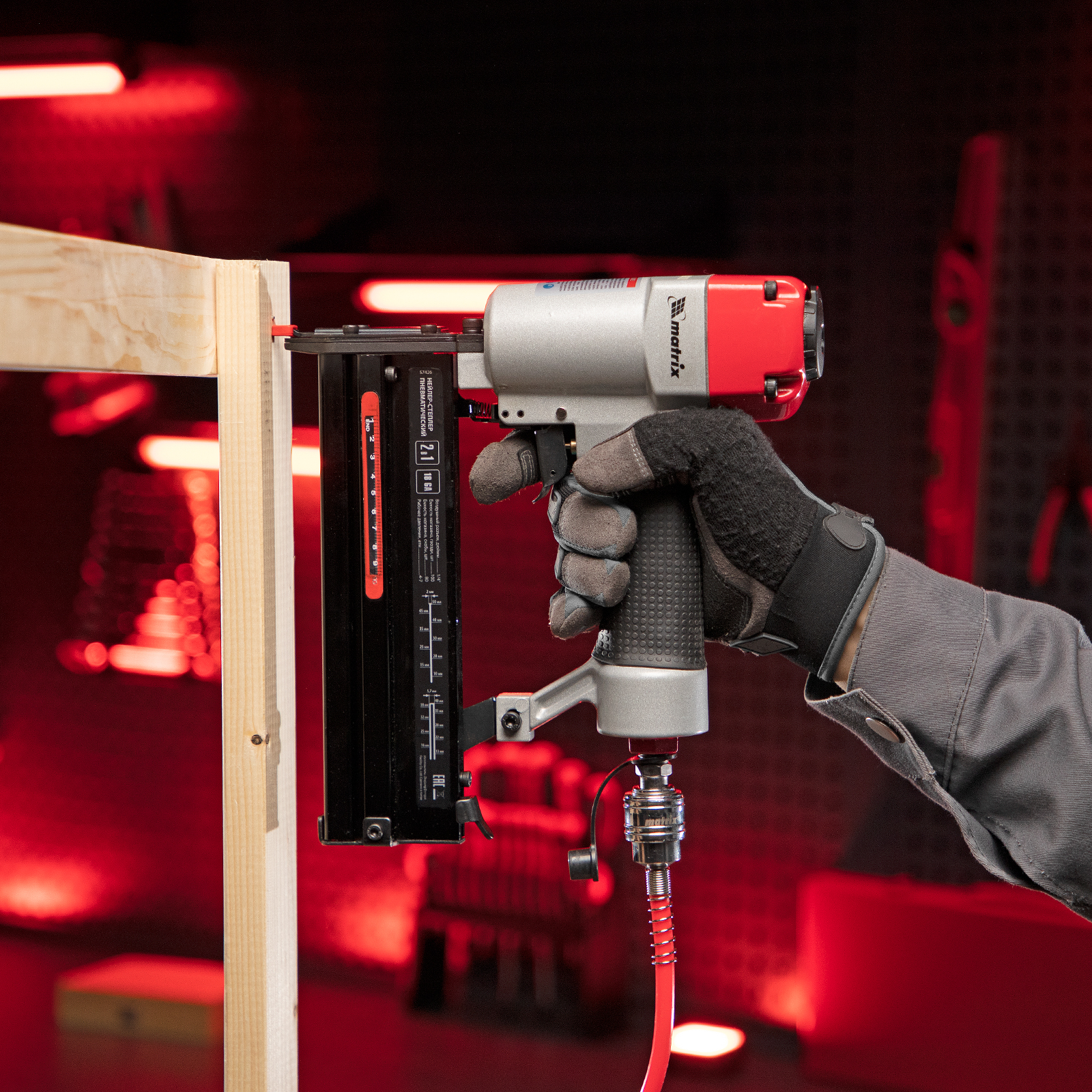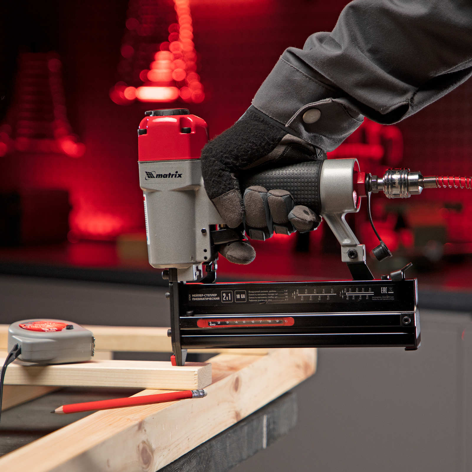 Пневматический нейлер-степлер 2 в 1 Matrix 57426 работает с двумя типами крепежей 18GA: гвоздями длиной 10-50 мм и скобами длиной 25-40 мм. Пригодится при сборке мебели и деревянных каркасов, для обшивки и утепления дома, при установке окон, дверей, плинтусов, напольных покрытий и для производства упаковки. Низкий расход воздуха 0,7 л/мин позволяет использовать инструмент с любыми типами компрессоров.