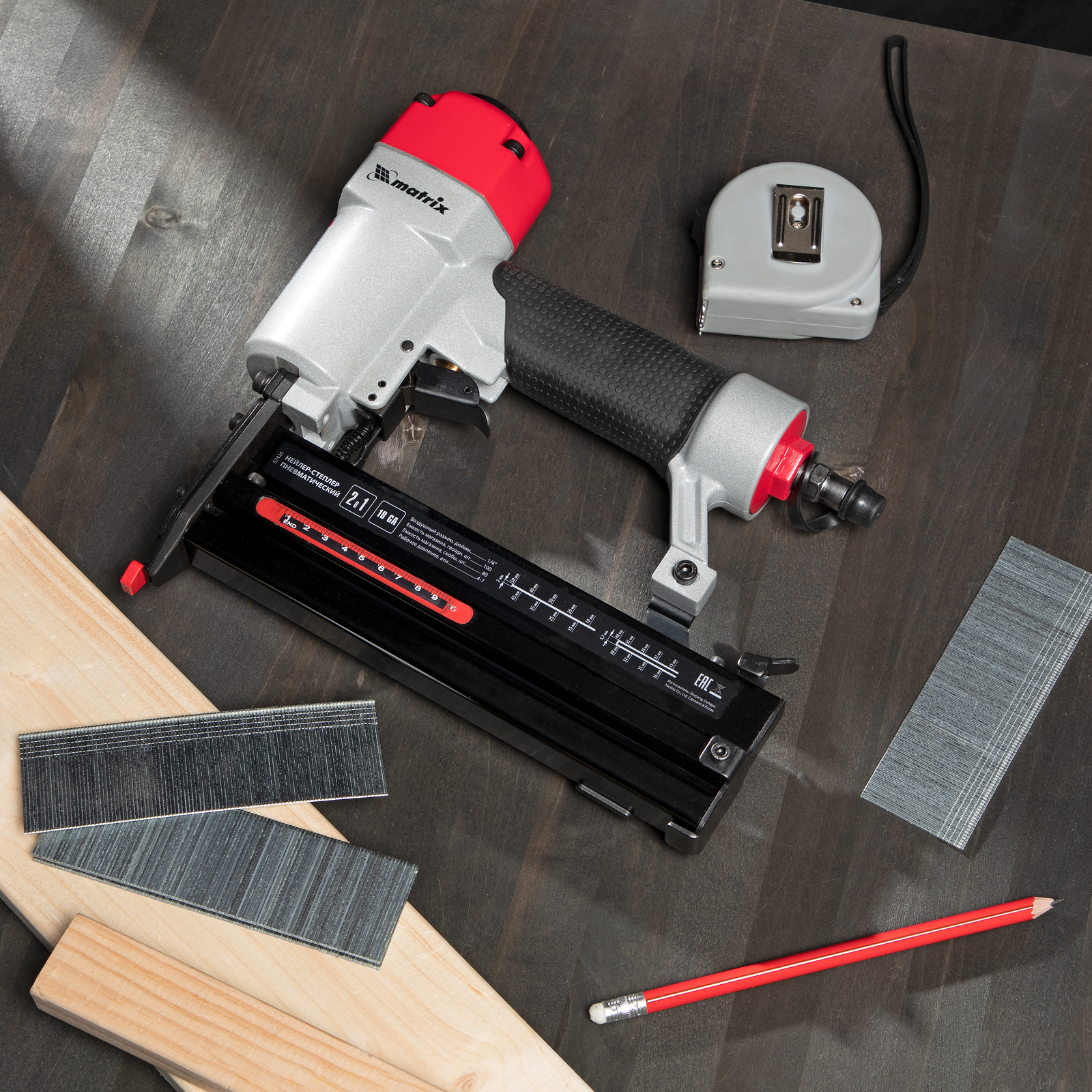 - Безопасность — специальный предохранитель не допускает случайного срабатывания нейлера-степлера.