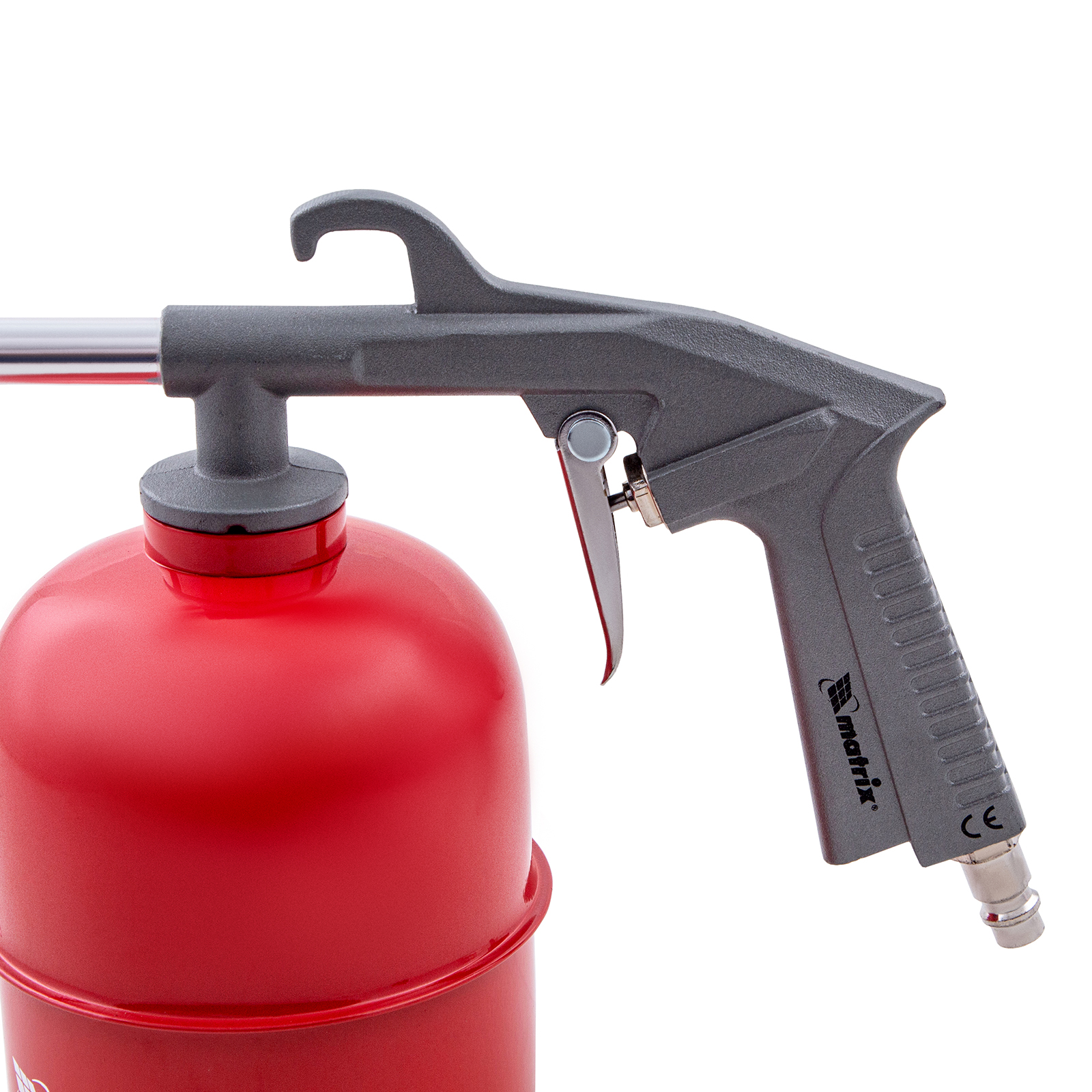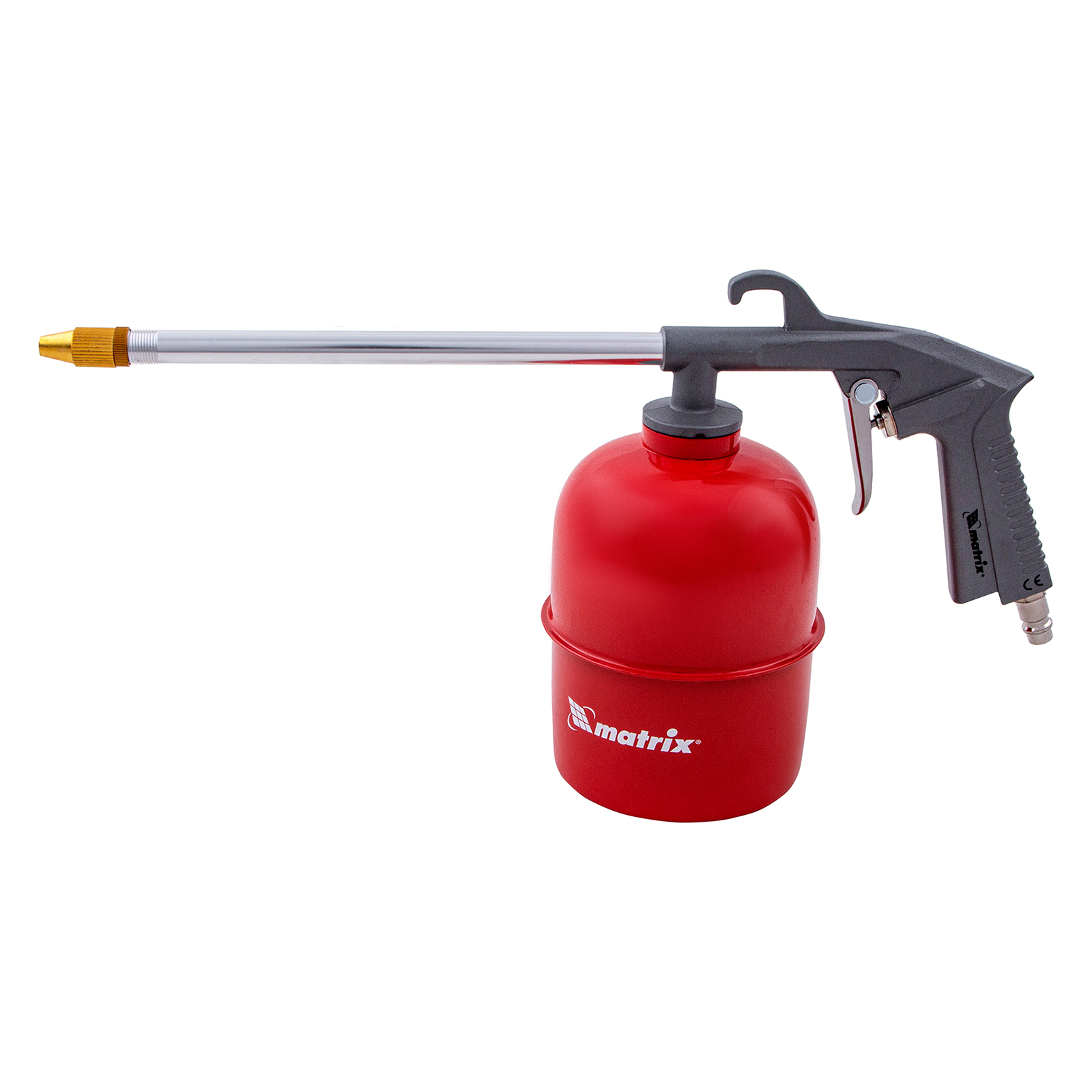 Пневматический моечный пистолет Matrix 57340 предназначен для очищения и обезжиривания различных поверхностей (ковров, мебели, полов, плитки и т.д.) потоком воды под воздействием сжатого воздуха. Также он подходит для обработки рабочей зоны различными жидкостями, например, для смазывания металлических изделий карбоном и покрытия кузова автомобиля мовилем. Длинный носик облегчает работу в самых труднодоступных местах.