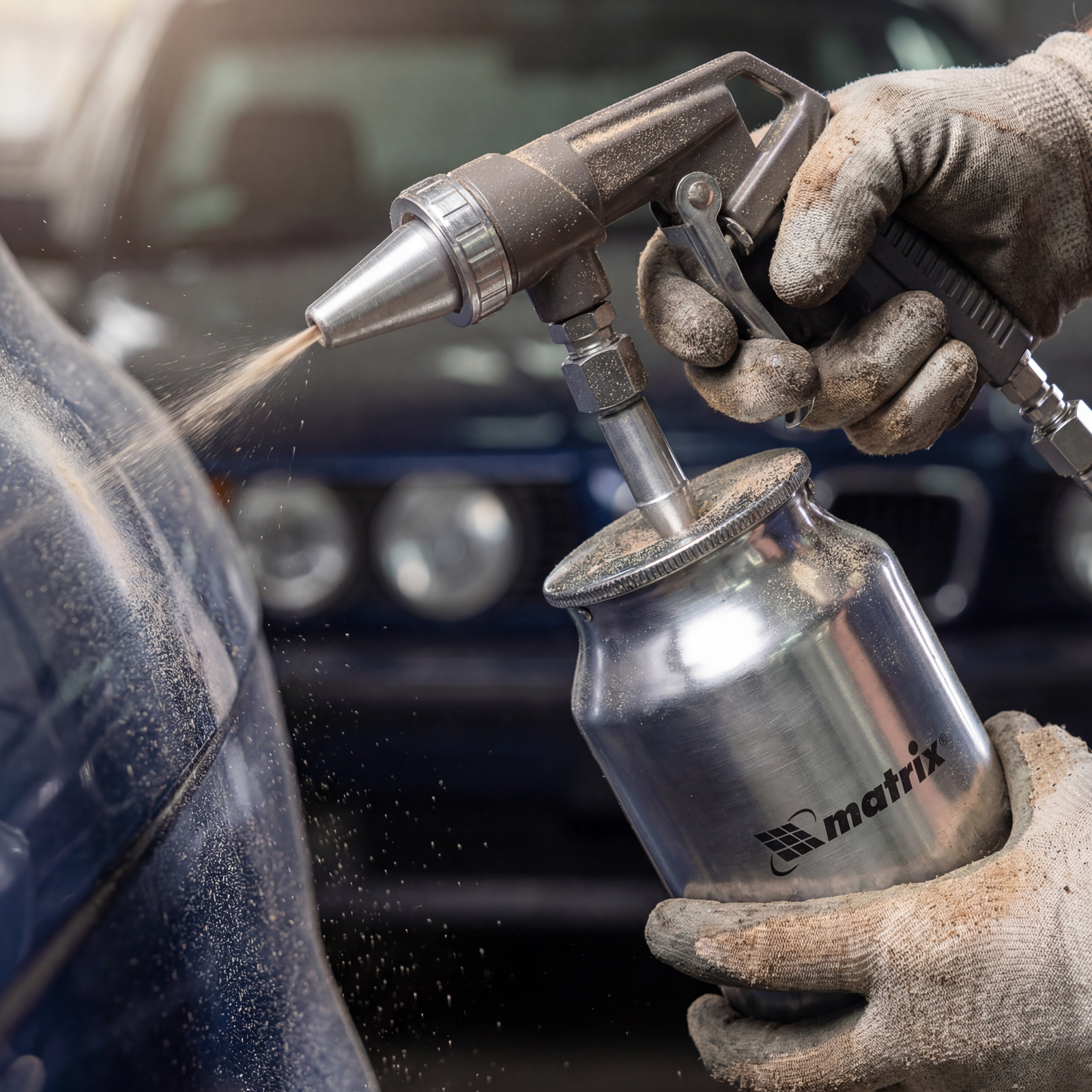Пескоструйный пистолет Matrix 57326 используется для очищения загрязненных поверхностей, удаления краски, очагов коррозии и ржавчины с помощью кварцевого песка или специального абразива размером до 1,6 мм. Встроенный бачок для песка объемом 1000 мл делает пистолет мобильным и избавляет мастера от необходимости присоединять дополнительный шланг.