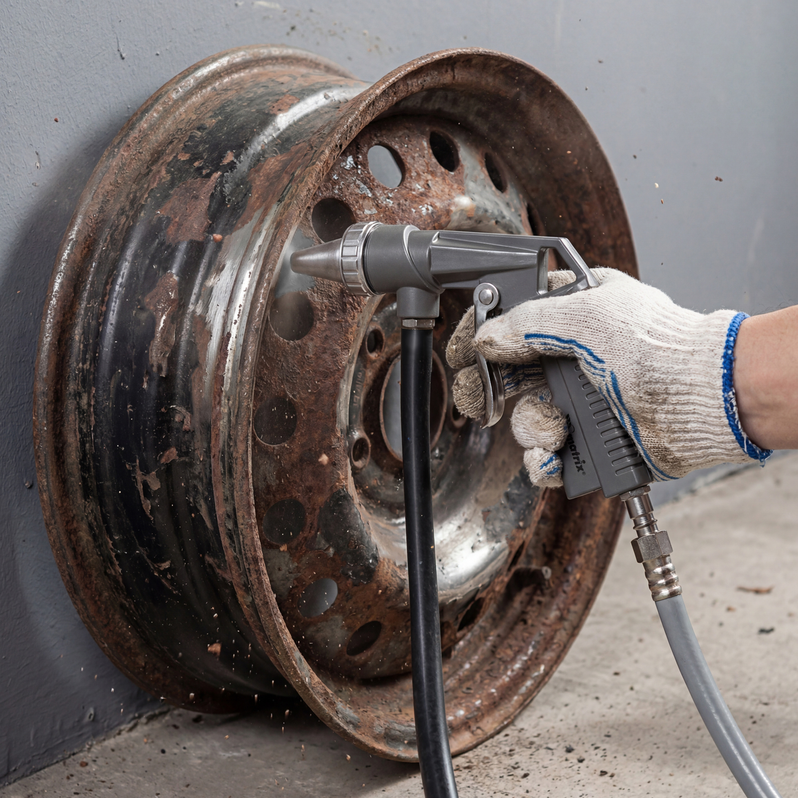 - Длина шланга 1 м — можно работать на расстоянии от емкости с абразивом.