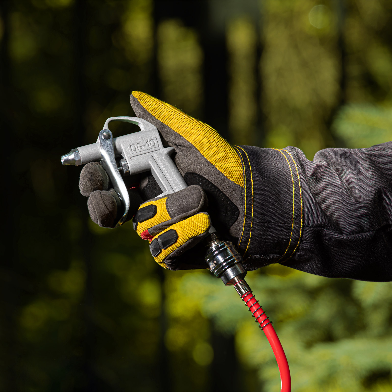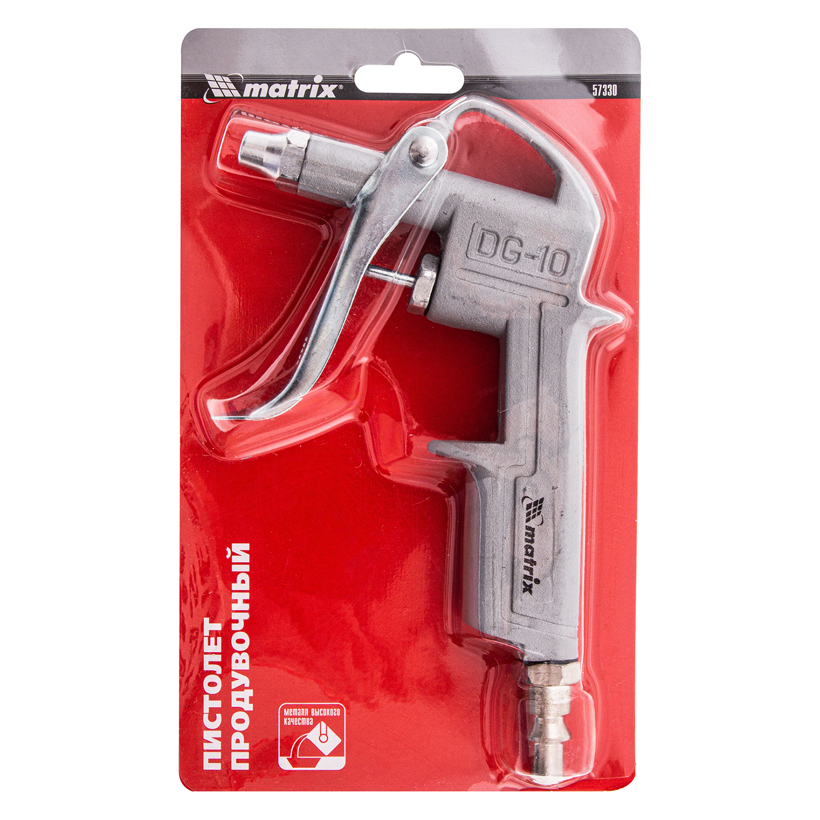 Пистолет продувочный Matrix 57330 предназначен для очищения шлангов, труб, пазов, отверстий, полостей изделий и различных поверхностей под давлением до 8 бар. Мощная воздушная струя быстро удаляет пыль, стружку, грязь и мелкий мусор, помогает подготовить поверхности под покраску. Пистолет работает со сжатым воздухом, поэтому им можно пользоваться во влажных помещениях без риска пожара и взрыва. Максимальный расход воздуха составляет 300 л/мин.