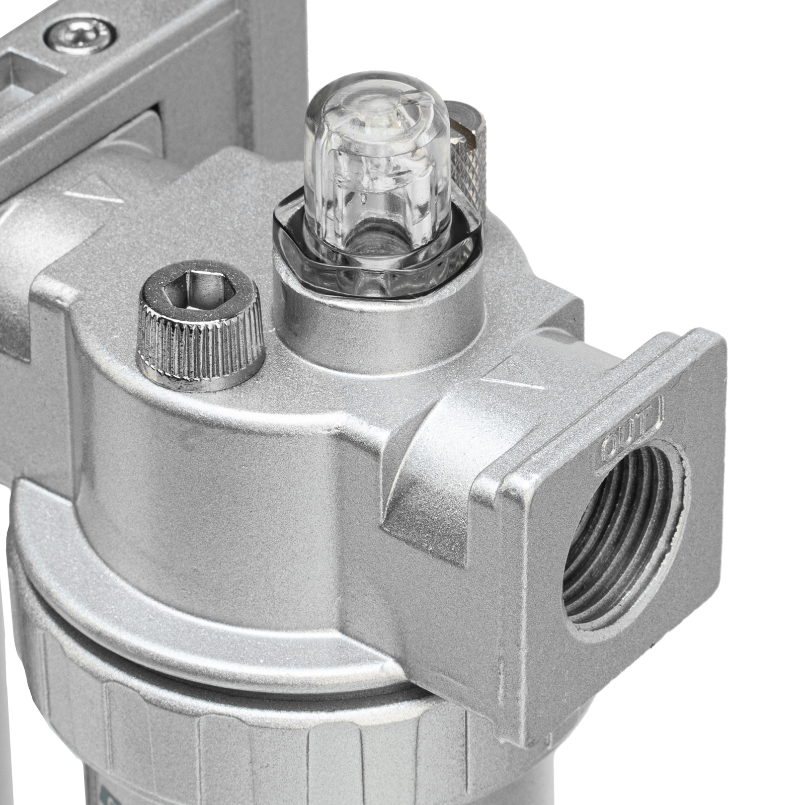 Блок подготовки воздуха Gross G804 57451 с присоединительной резьбой 1/2 дюйма одновременно выполняет функции регулятора уровня давления, фильтра и лубрикатора. Устройство используется с компрессорами, работающими под давлением до 10 бар, и будет полезно на производстве, строительной площадке и в автомастерской.