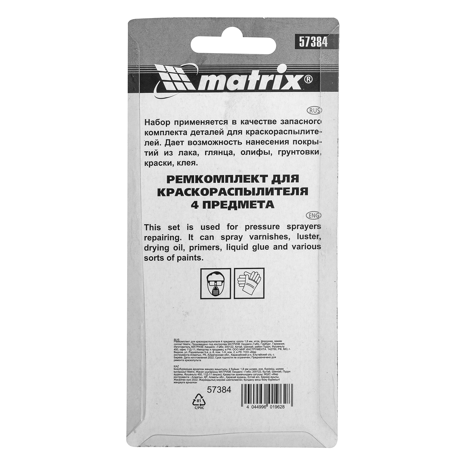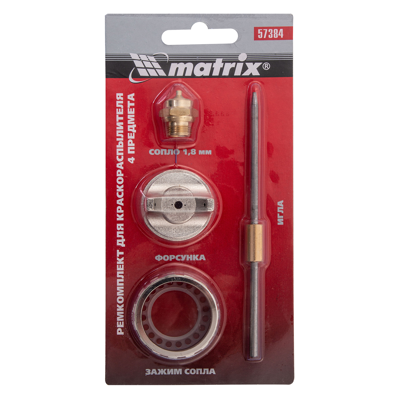 Ремкомплект Matrix 57384 предназначен для замены деталей на краскораспылителях Matrix 57314, 57315, 57316, 57317 и состоит из 4 предметов: сопла диаметром 1,8 мм, иглы, форсунки, зажима. Сопло, надежно фиксируемое зажимом, позволяет работать с эпоксидными и полиуретановыми красками, а также шпаклевками.