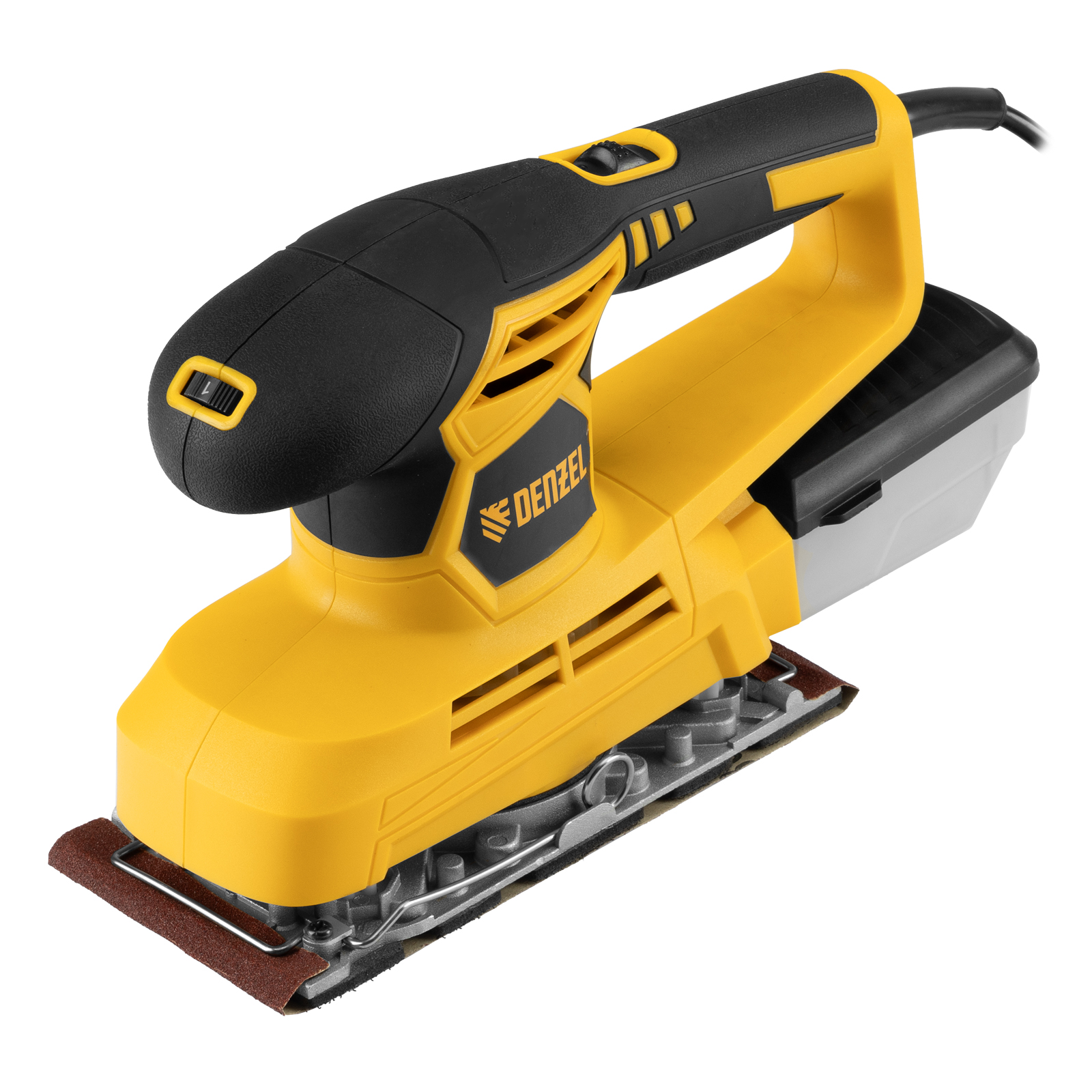Вибрационная плоскошлифовальная машина Denzel VS-90-187 мощностью 240 Вт, с частотой колебаний подошвы 6000-11000 об/мин, подходит для сухого шлифования, зачистки и полировки поверхностей. Регулировка частоты колебаний подошвы 6000-11000 об/мин позволяет выбрать оптимальный режим работы. Размер рабочей поверхности составляет 90 х 187 мм, ход платформы — 1,6 мм, благодаря чему машина эффективно справляется с обработкой больших поверхностей.